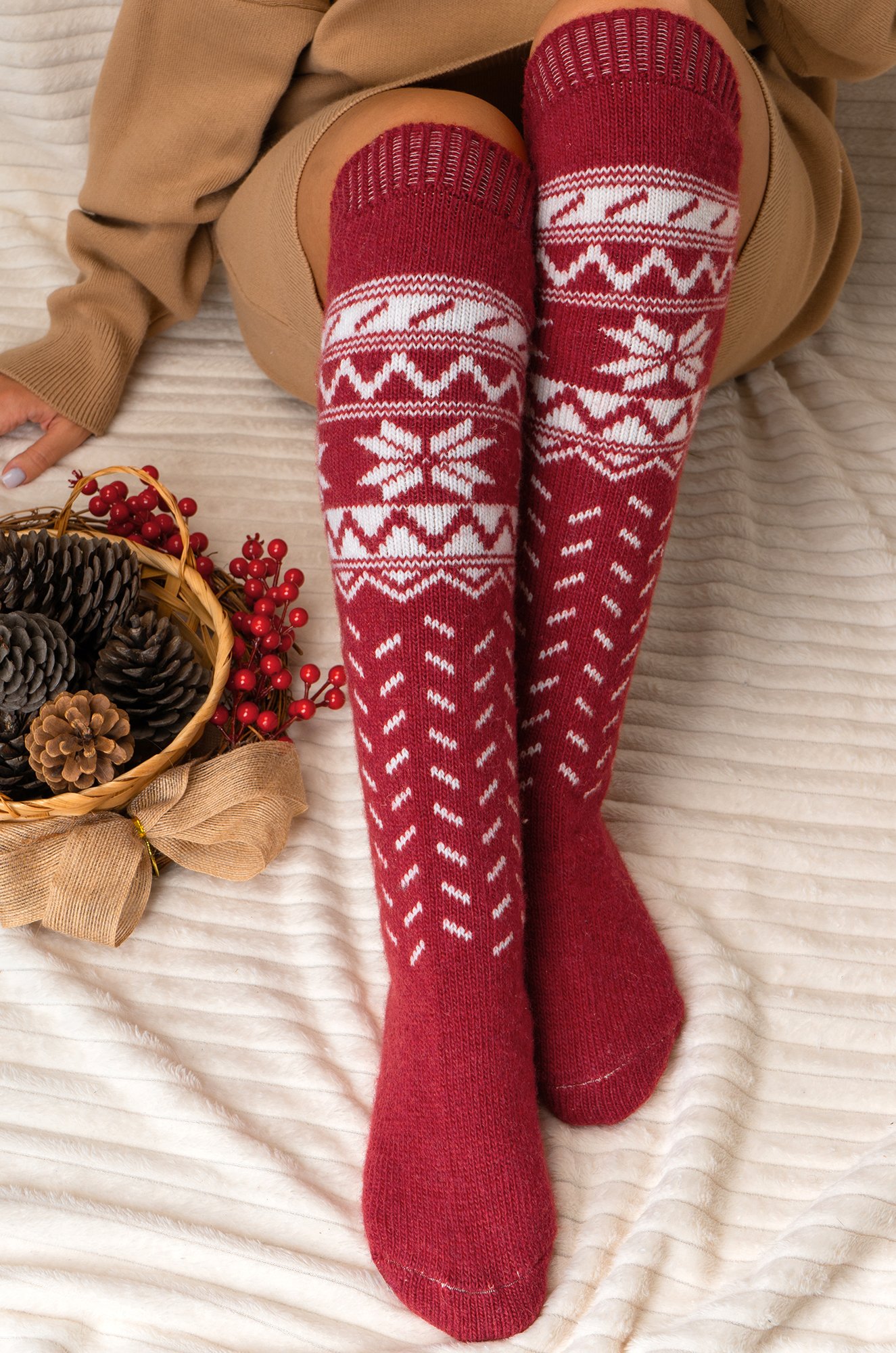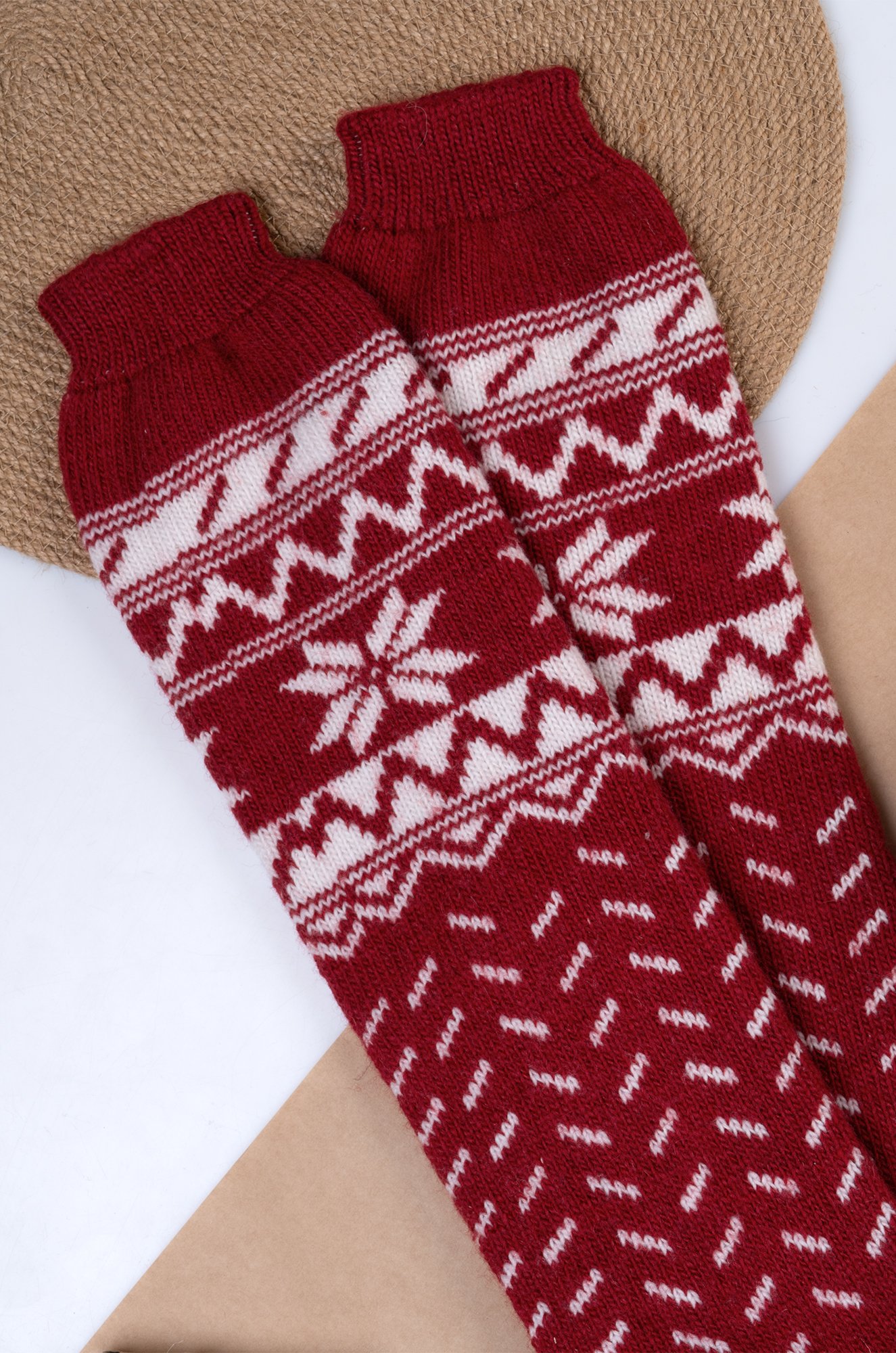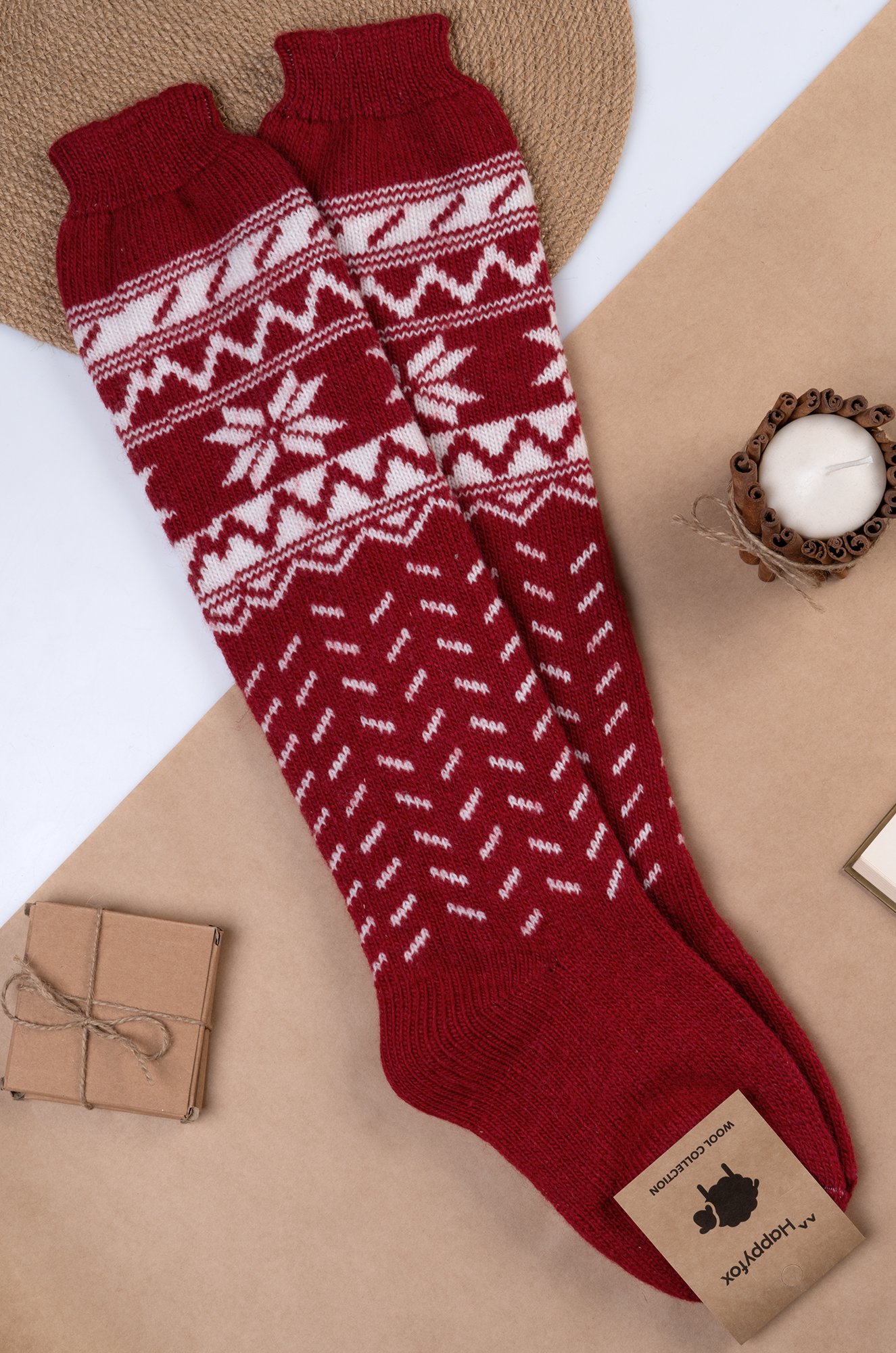 Теплые новогодние гольфы для женщин выполнены с высоким содержанием натуральной овечьей шерсти. Высокие шерстяные носки с рисунком Снежинки идеальны для уютных вечеров в компании пледа и увлекательной книги. Яркий узор добавит приятных эмоций, а теплая пряжа согреет в прохладное время года.