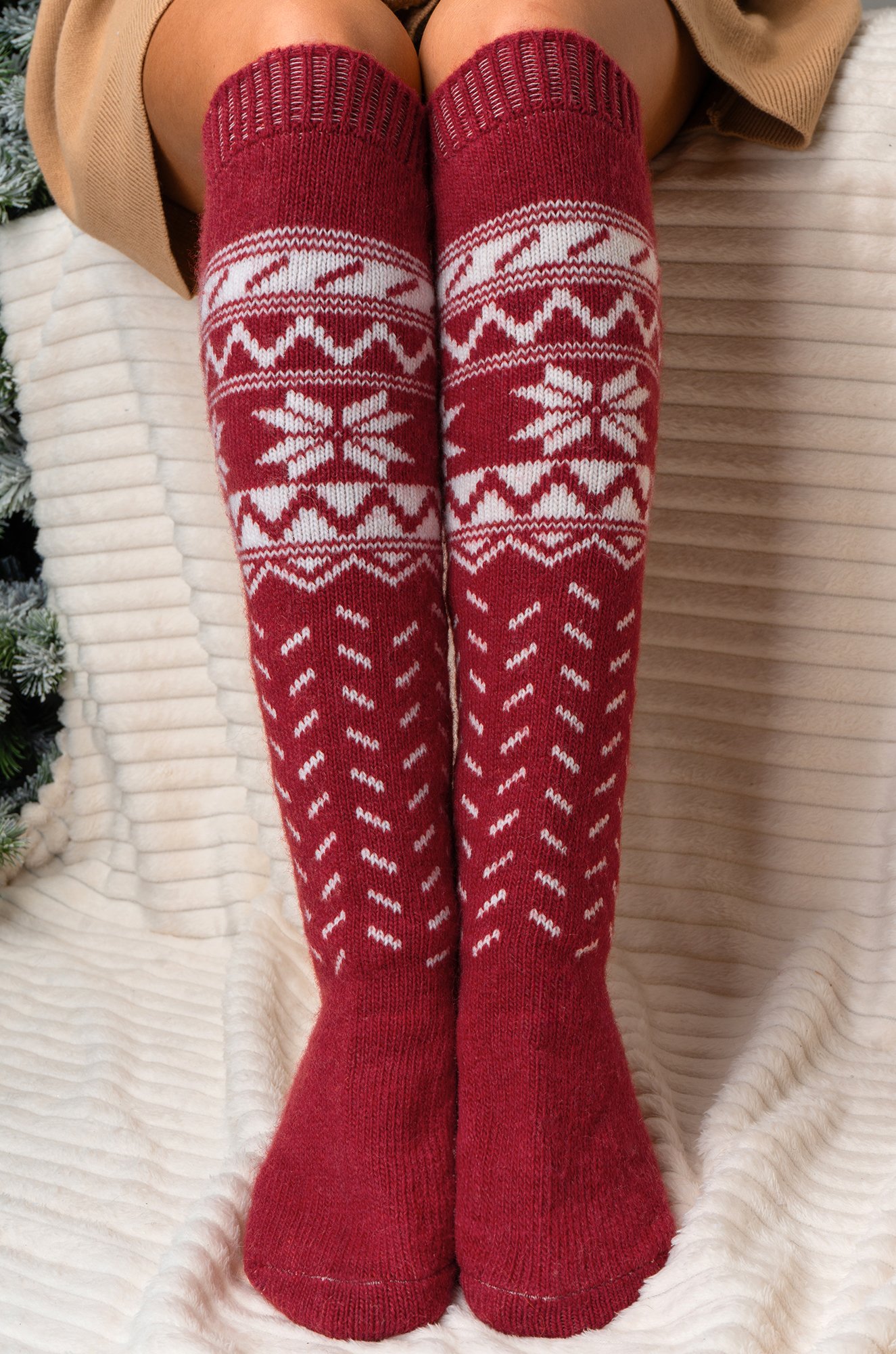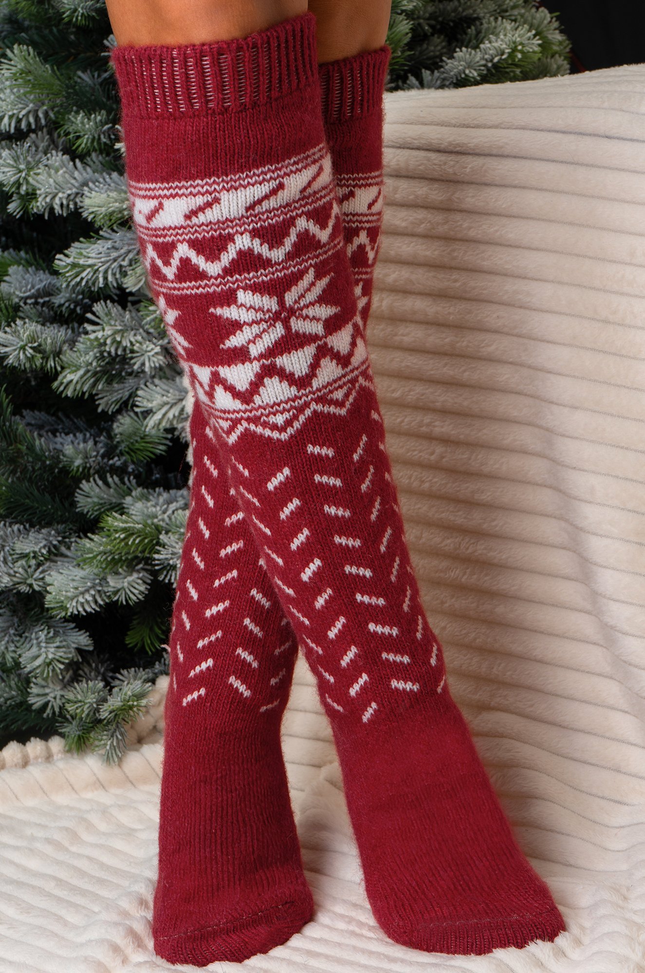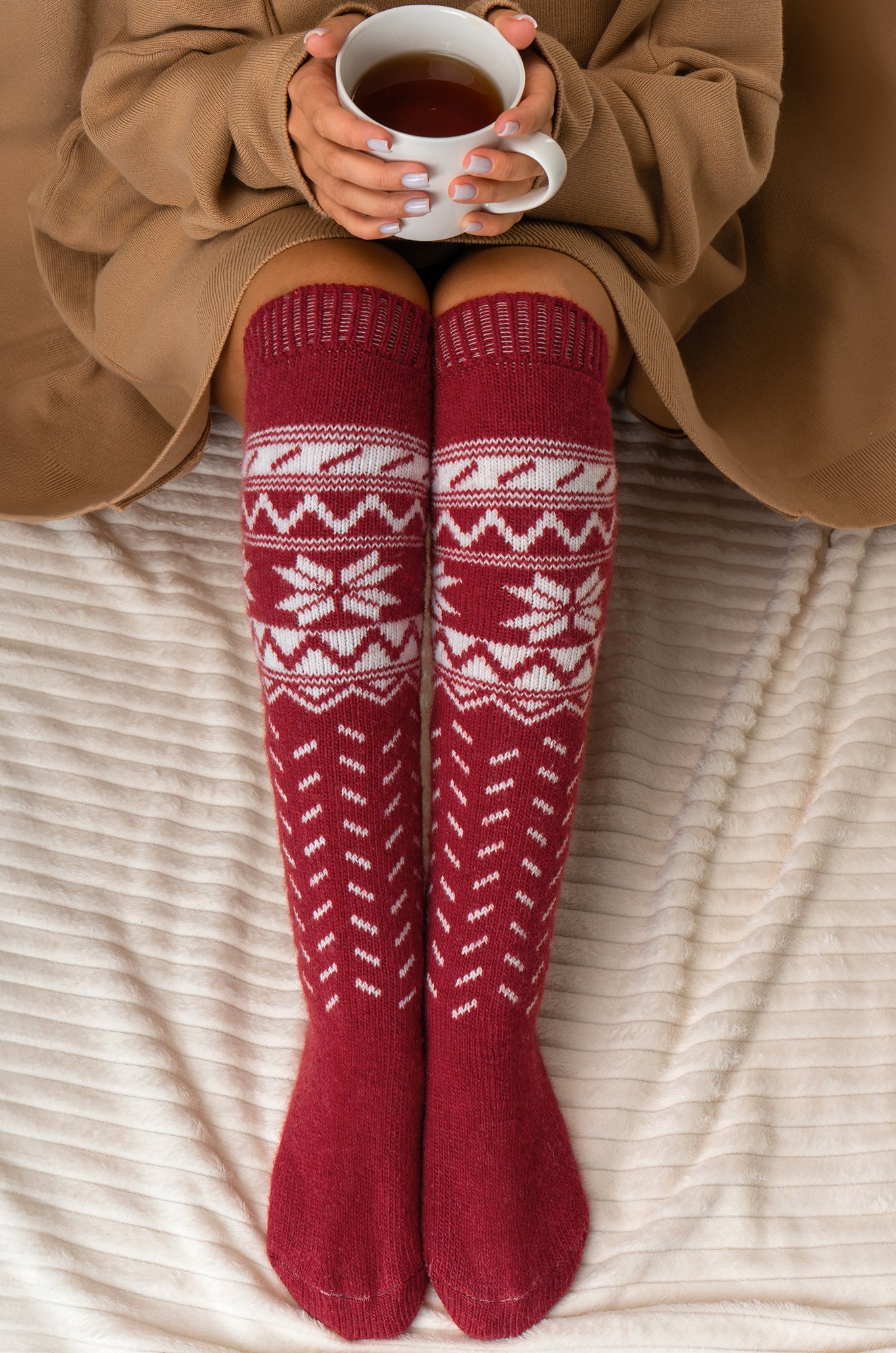 Теплые новогодние гольфы для женщин выполнены с высоким содержанием натуральной овечьей шерсти. Высокие шерстяные носки с рисунком Снежинки идеальны для уютных вечеров в компании пледа и увлекательной книги. Яркий узор добавит приятных эмоций, а теплая пряжа согреет в прохладное время года.
