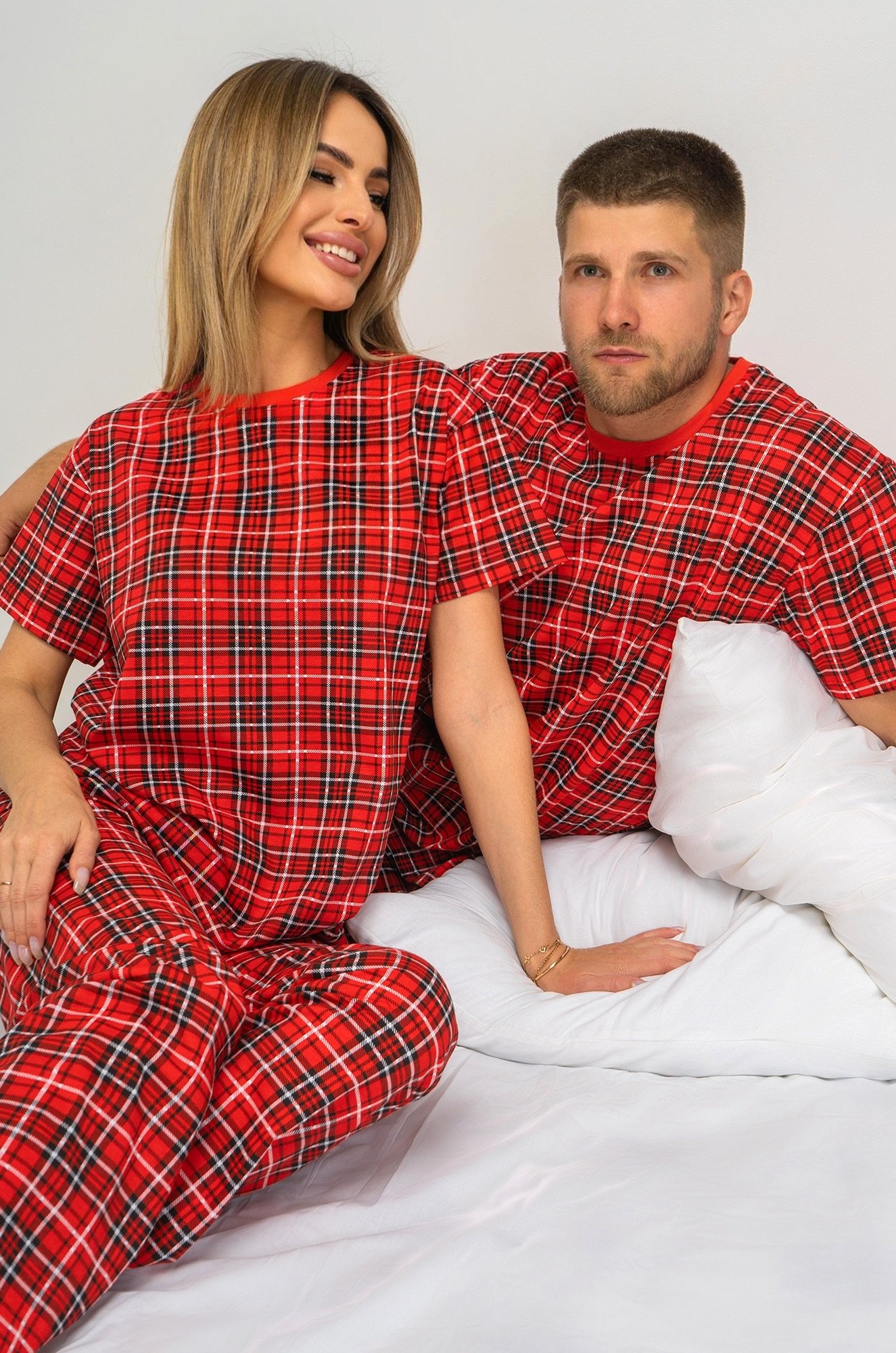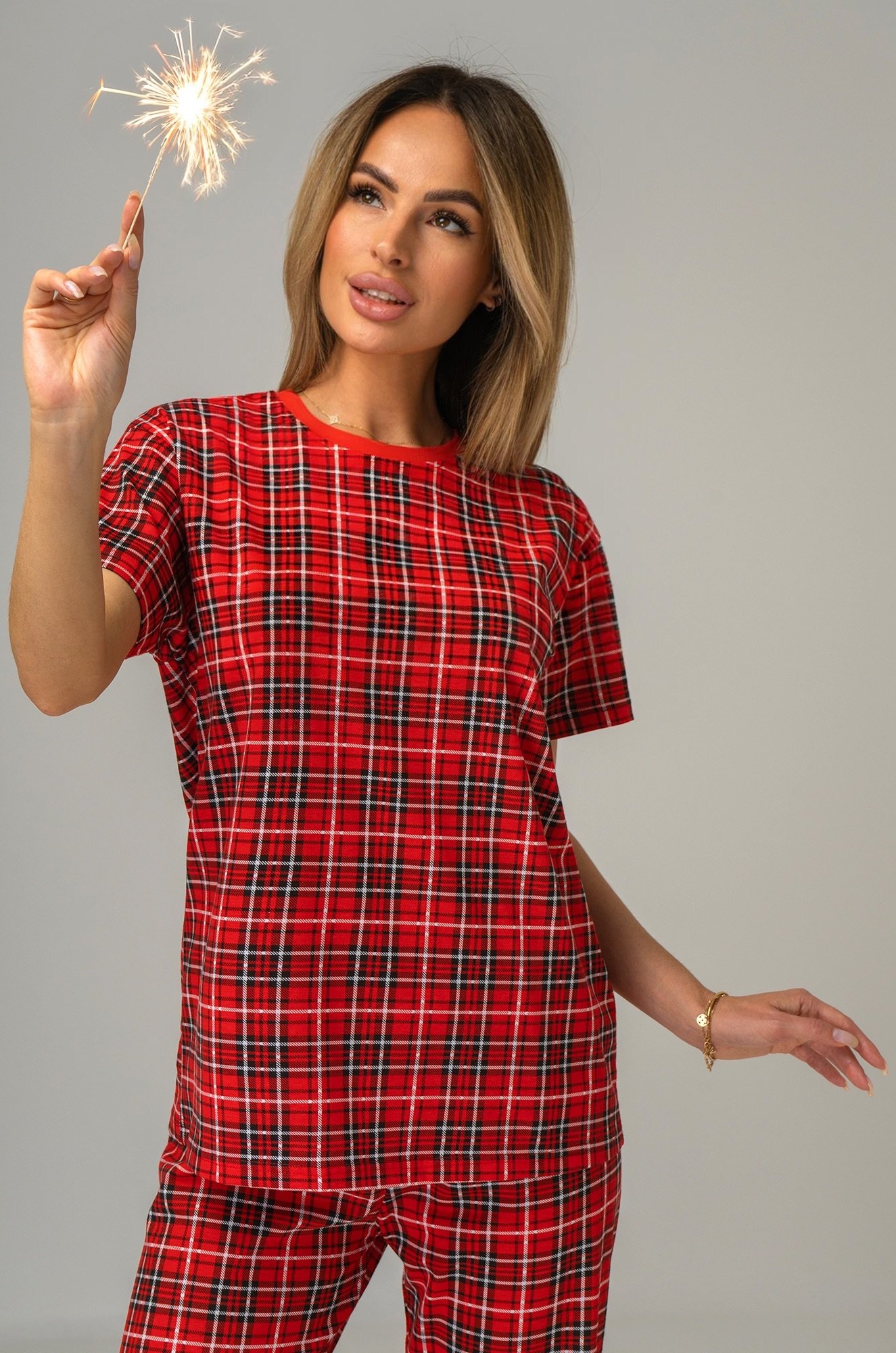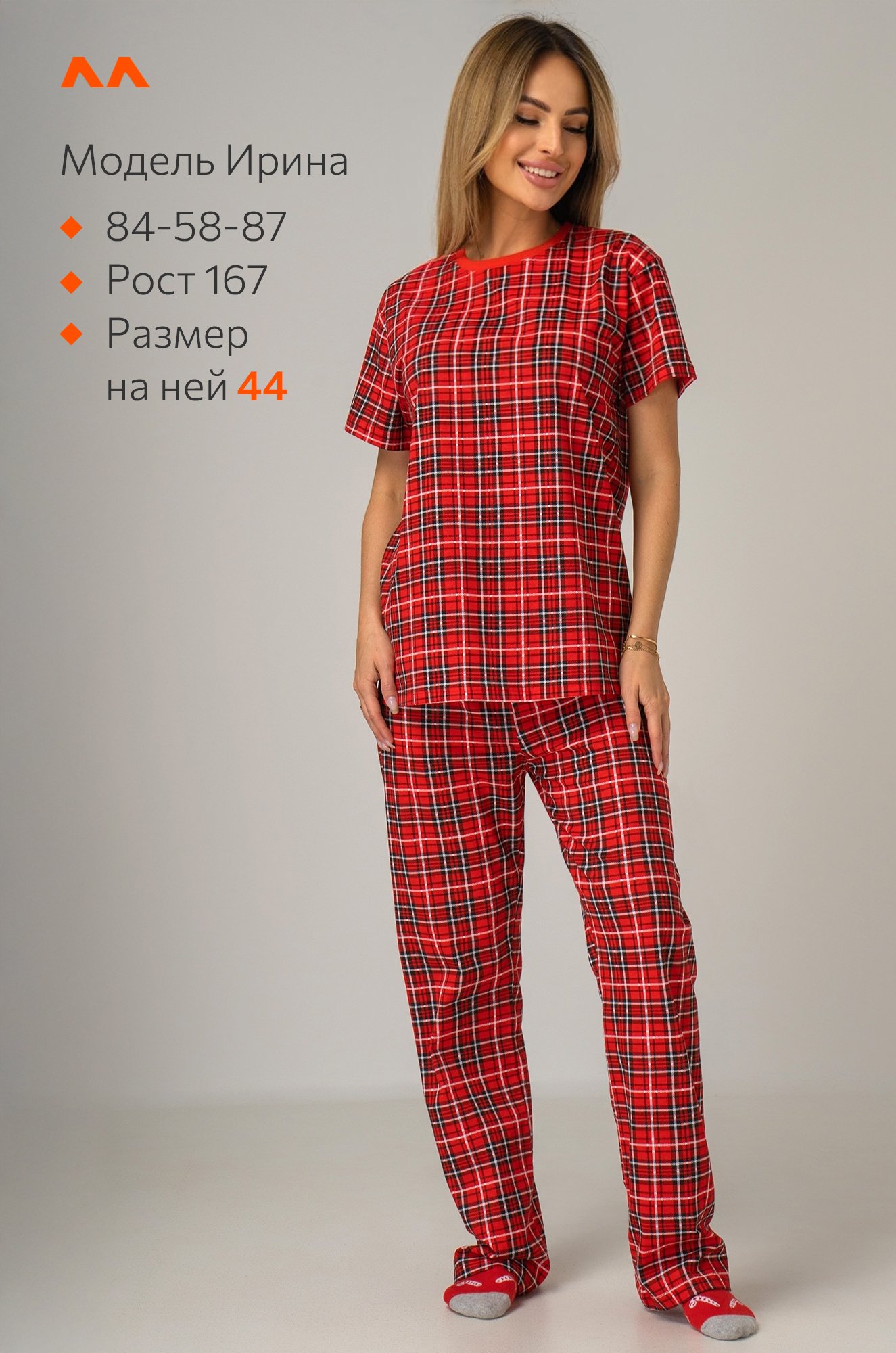 Погрузись в атмосферу уюта и сладких снов! Мягкая женская пижама с брюками из 100% хлопкового трикотажа подарит комфорт и лёгкость, позволяя наслаждаться отдыхом в любое время года. Уютный комплект в клетку создаст праздничное настроение и станет чудесным подарком на Новый год или Рождество.