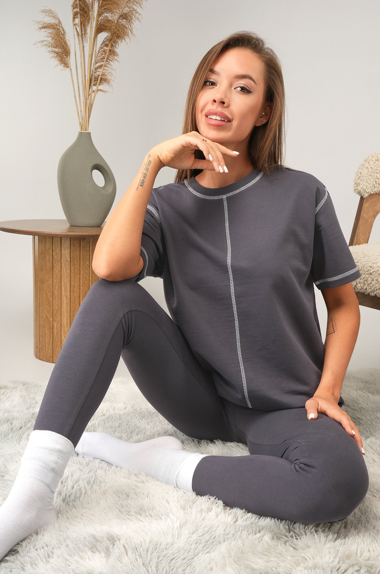 Удобный, стильный и продуманный до мелочей женский костюм с лосинами от Happyfox сочетает в себе комфорт и изящность. Темно-серый спортивный костюм станет любимым вариантом как для дома, так и для спорта.
