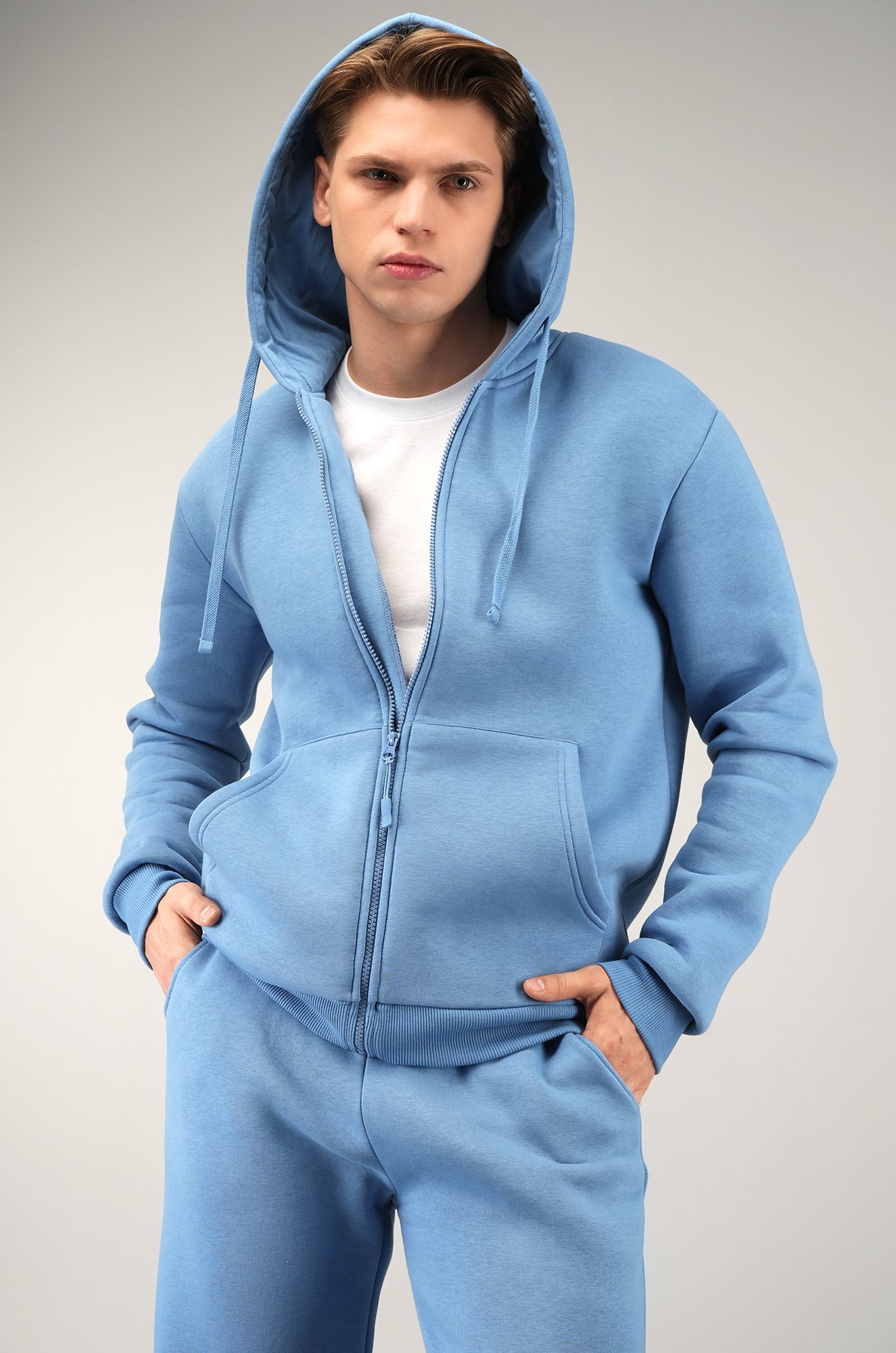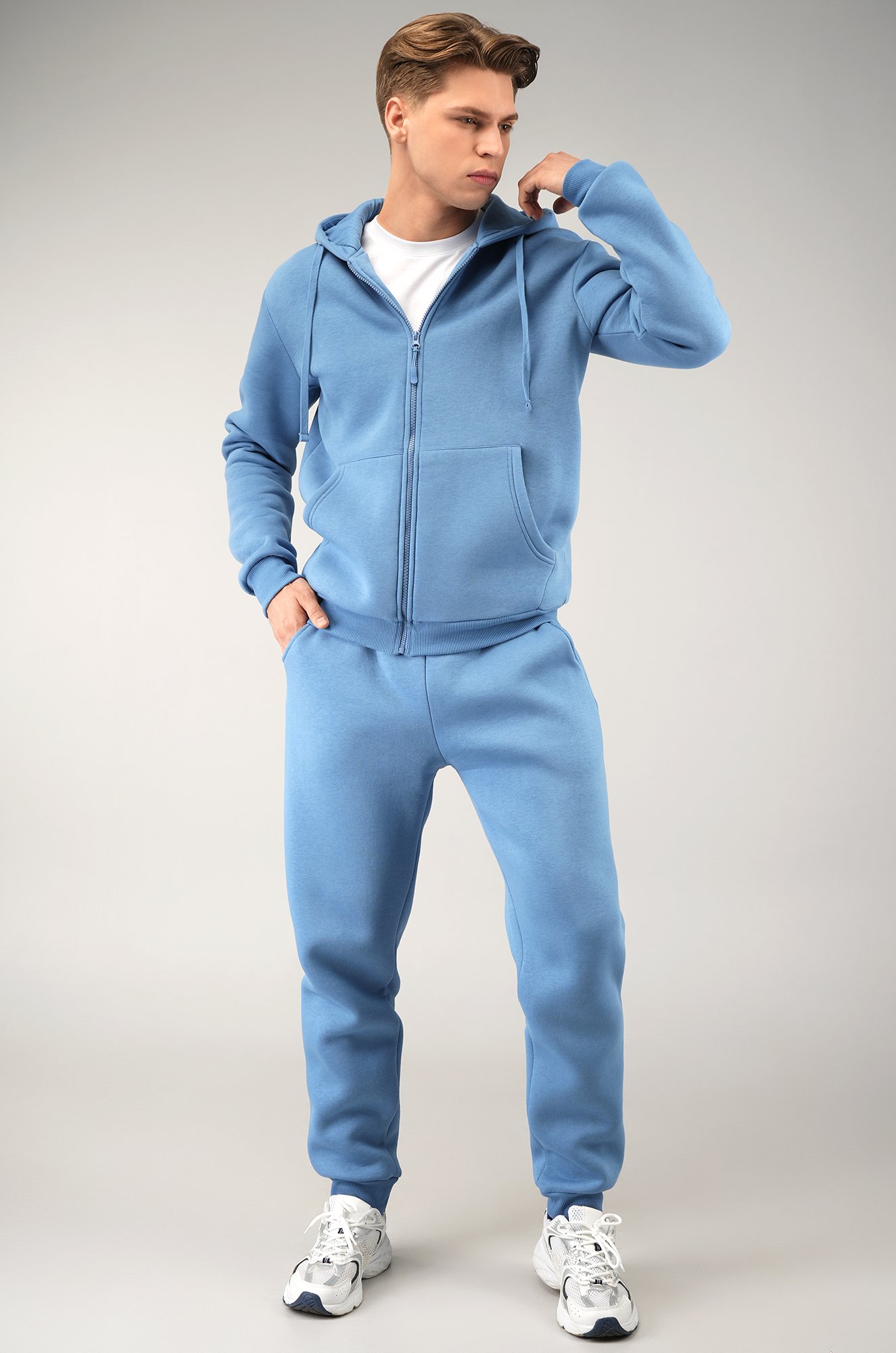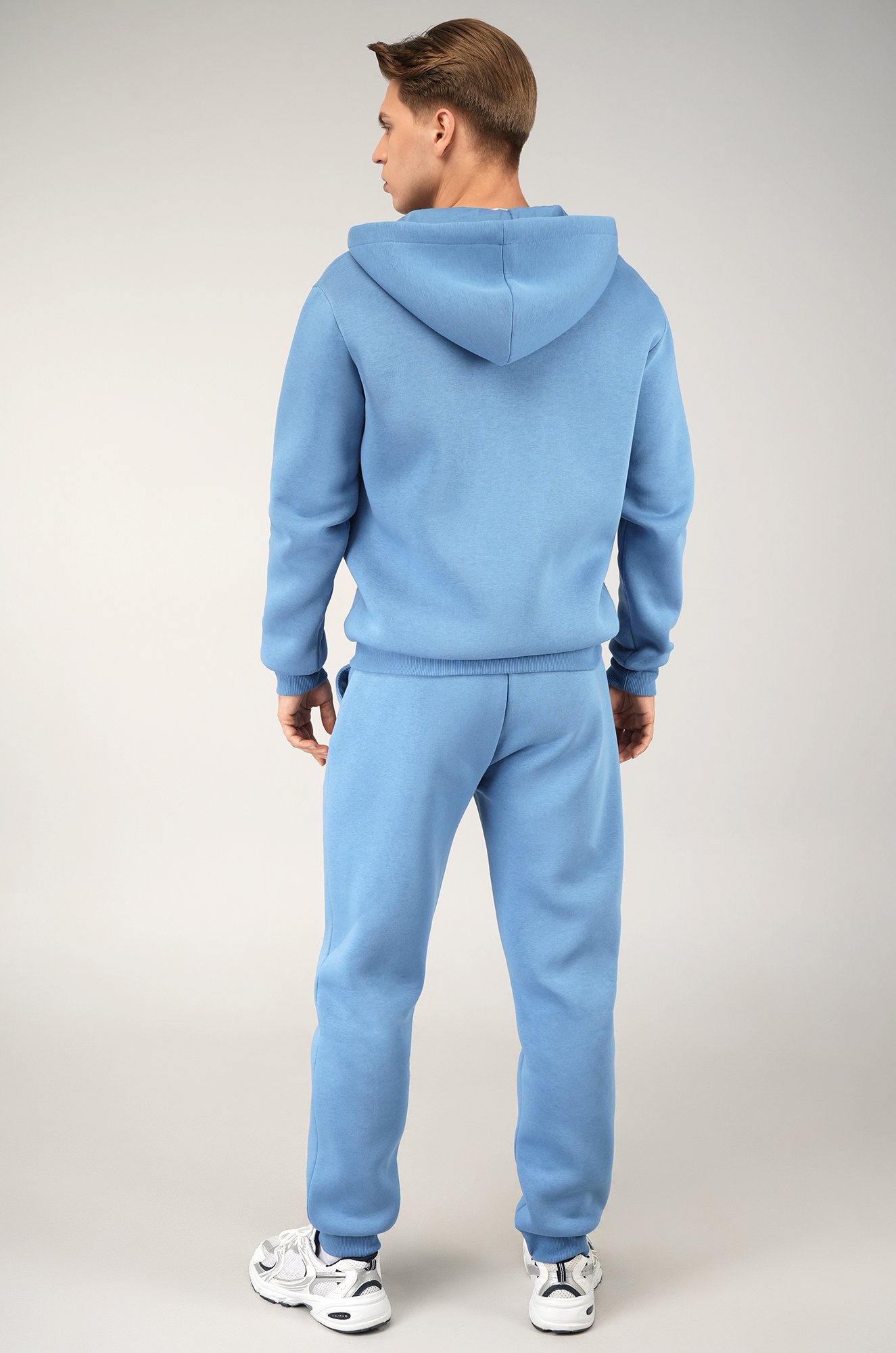 Теплый мужской костюм голубого цвета от бренда Happyfox выполнен из трикотажа футер с начесом. В комплект входят толстовка с капюшоном и брюки-джоггеры, созданные для максимального комфорта и свободы движений.
