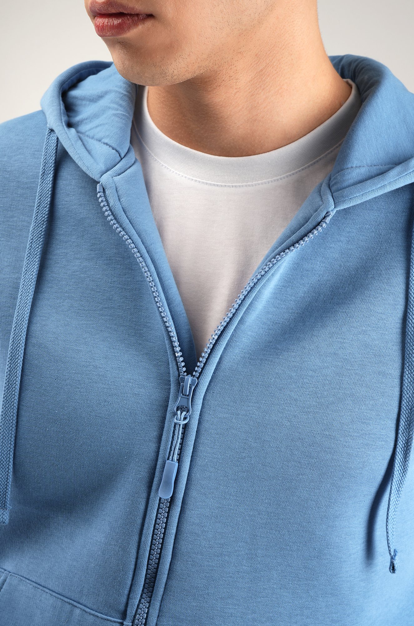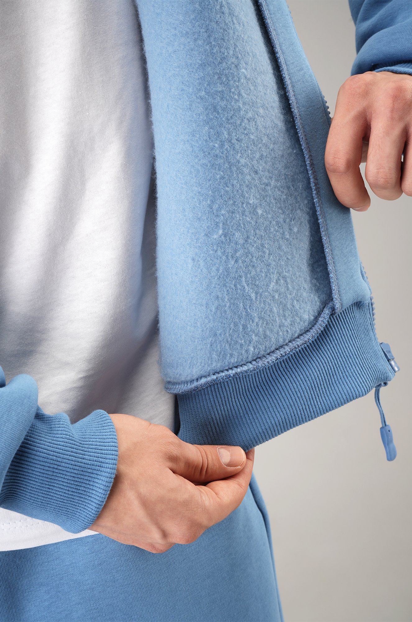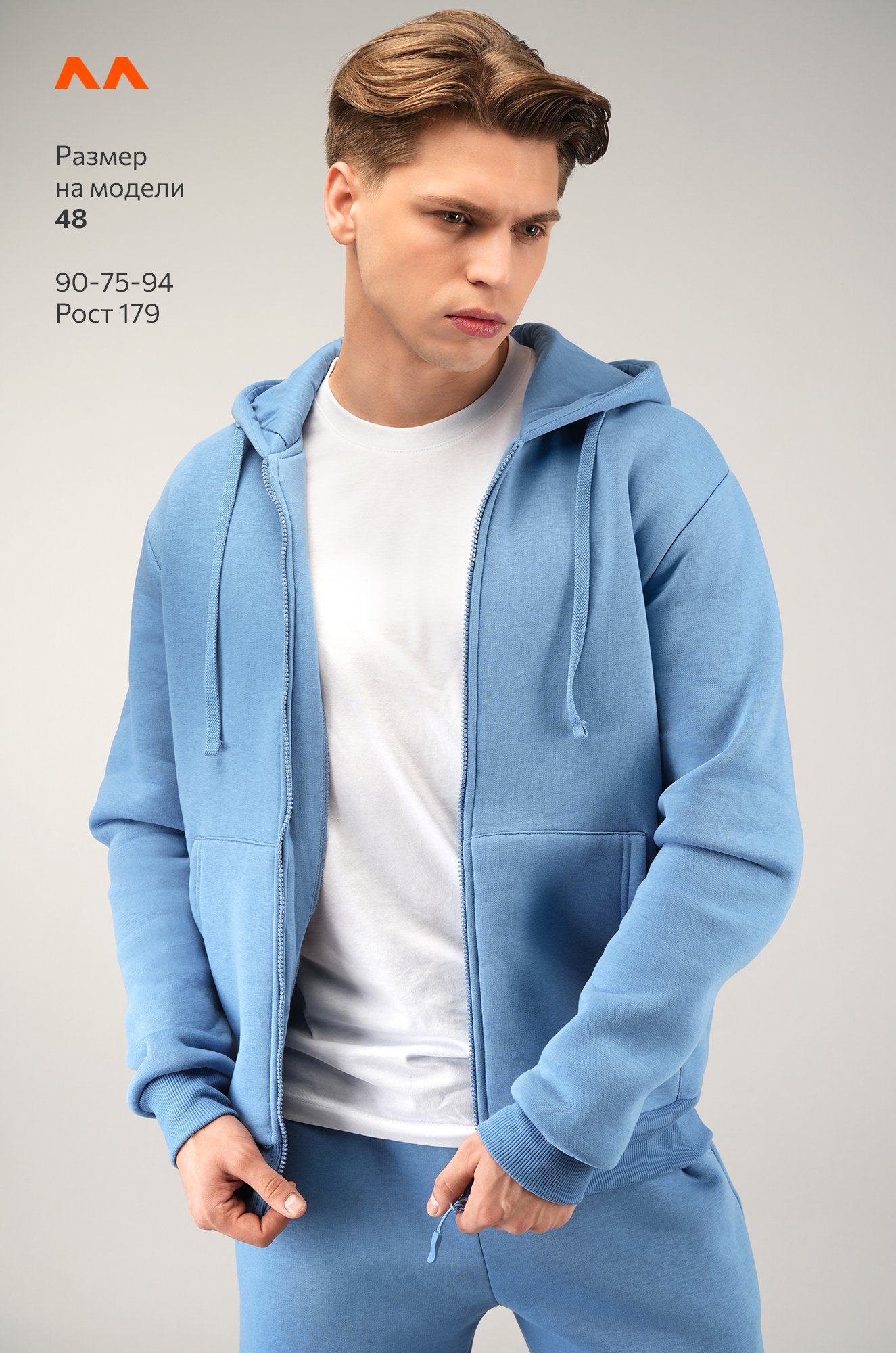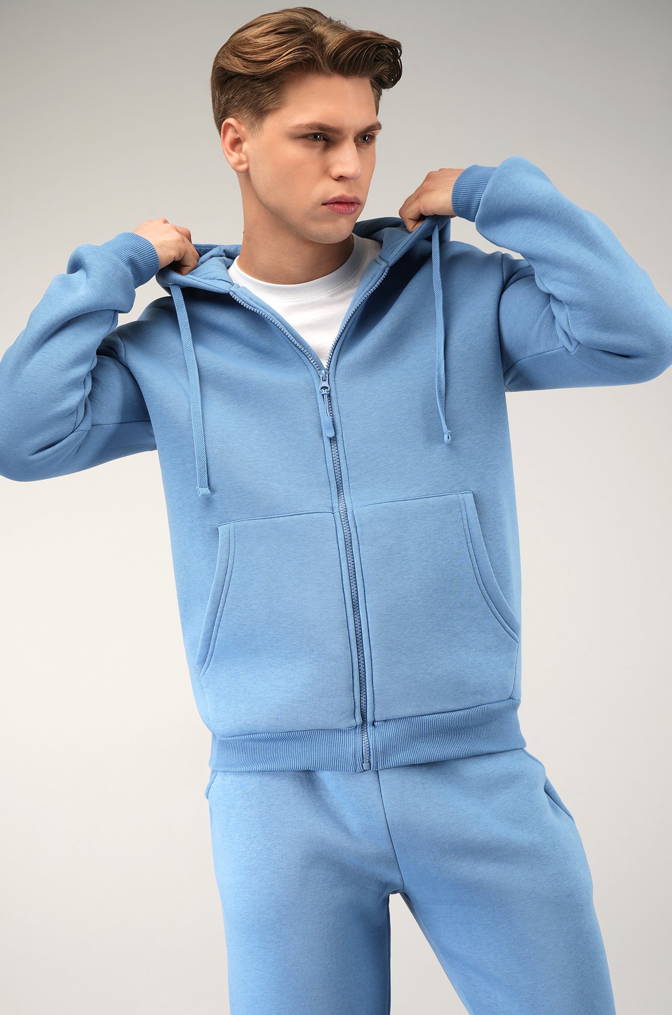 Теплый мужской костюм голубого цвета от бренда Happyfox выполнен из трикотажа футер с начесом. В комплект входят толстовка с капюшоном и брюки-джоггеры, созданные для максимального комфорта и свободы движений.