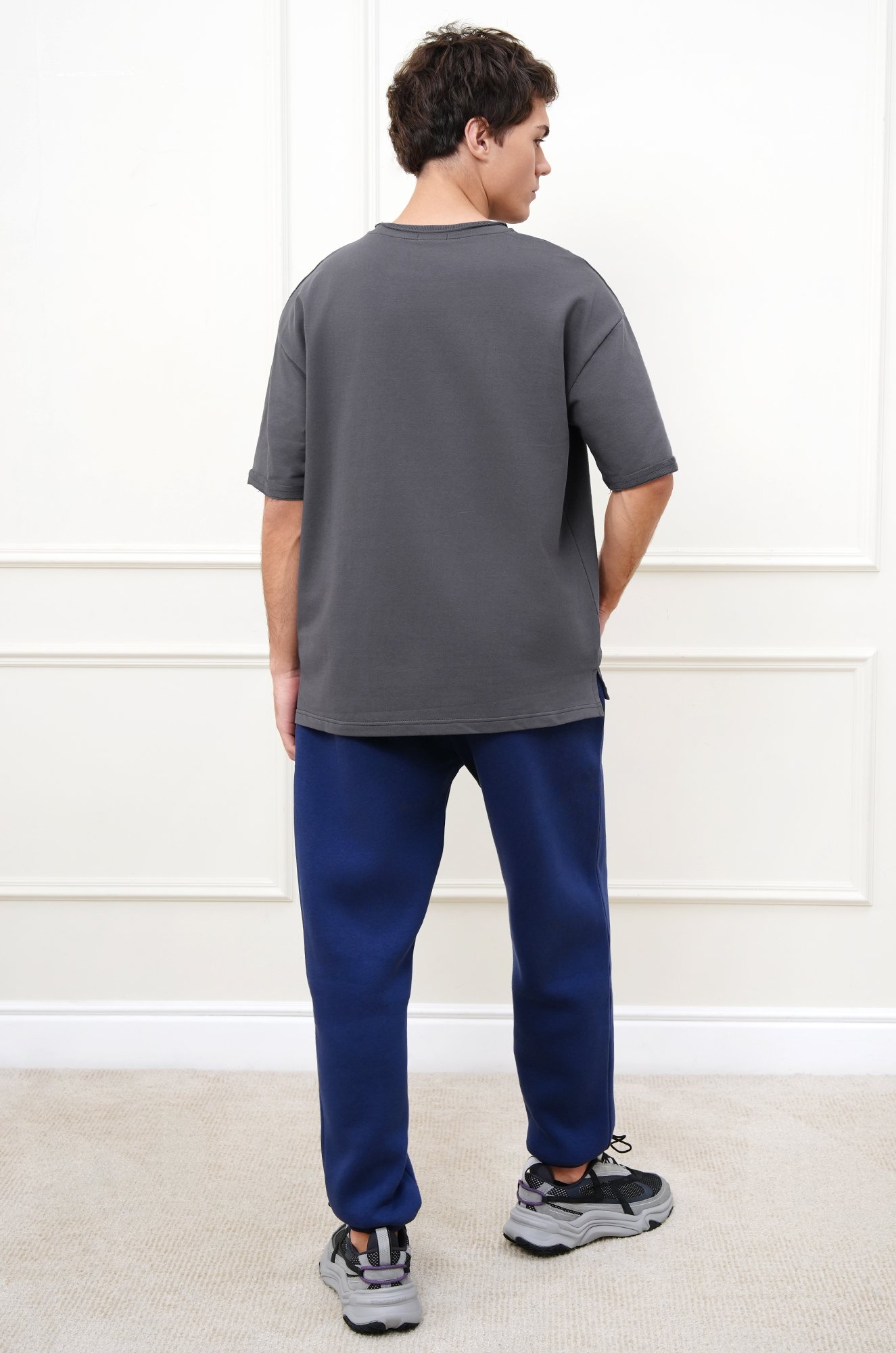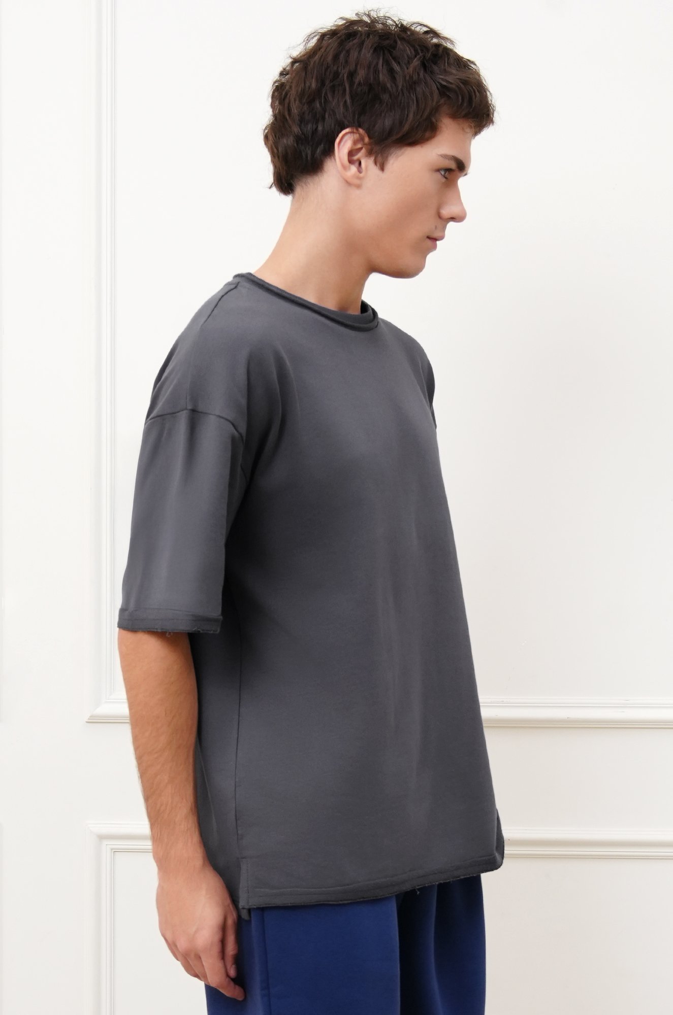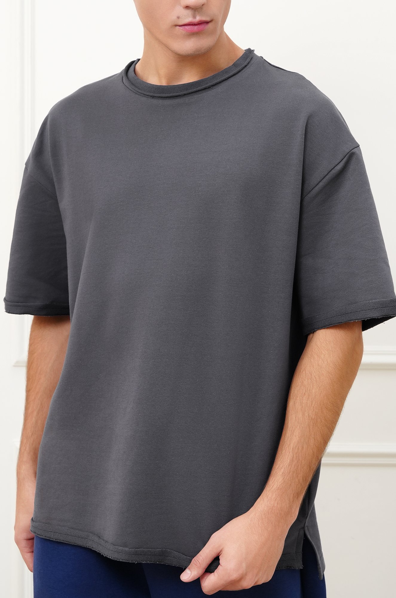 Однотонная темно-серая футболка для мужчин подойдёт для дома, работы и спортзала.