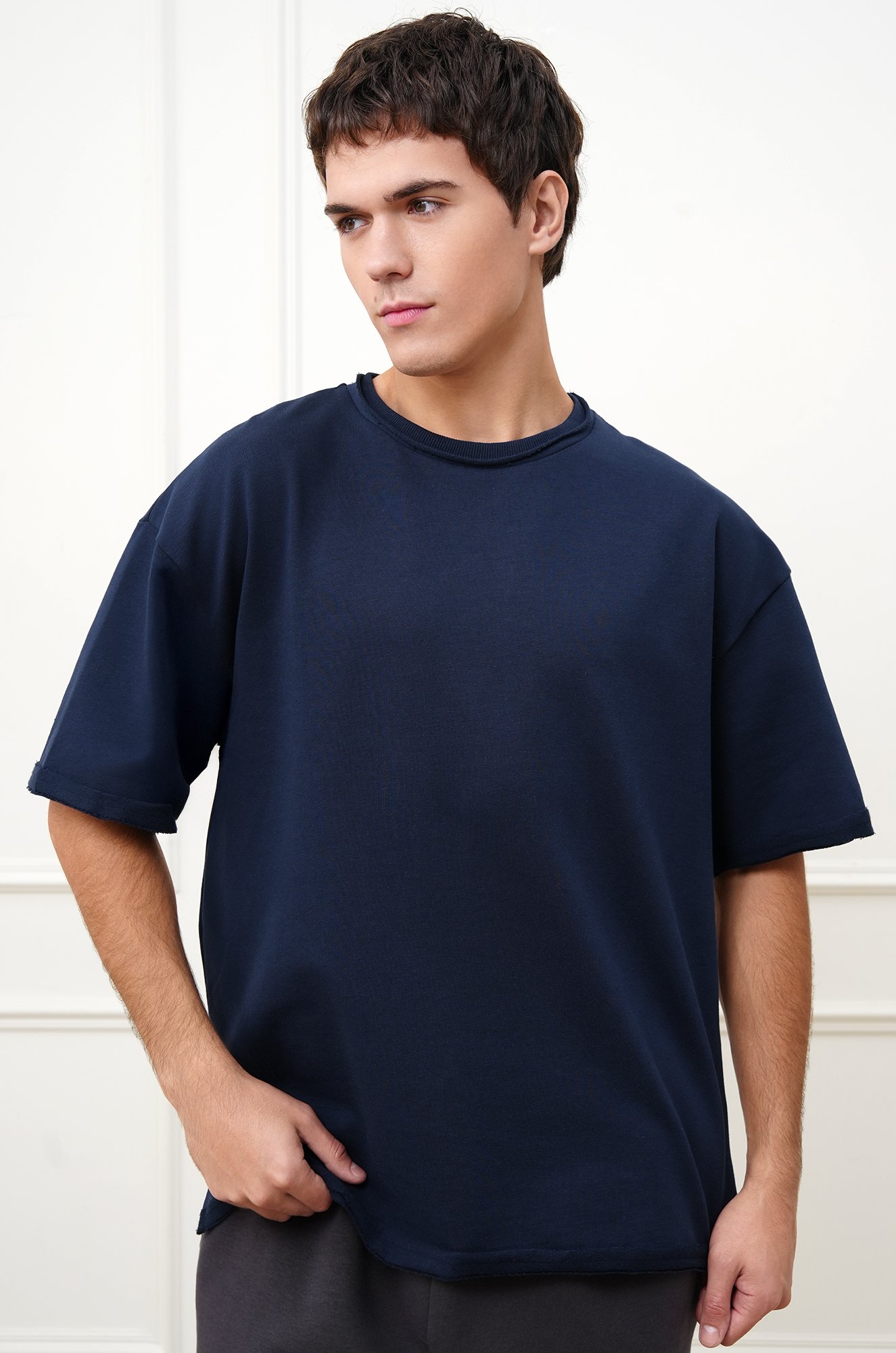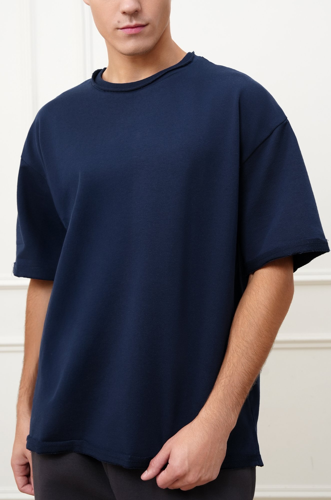 Однотонная темно-синяя футболка для мужчин подойдёт для дома, работы и спортзала.