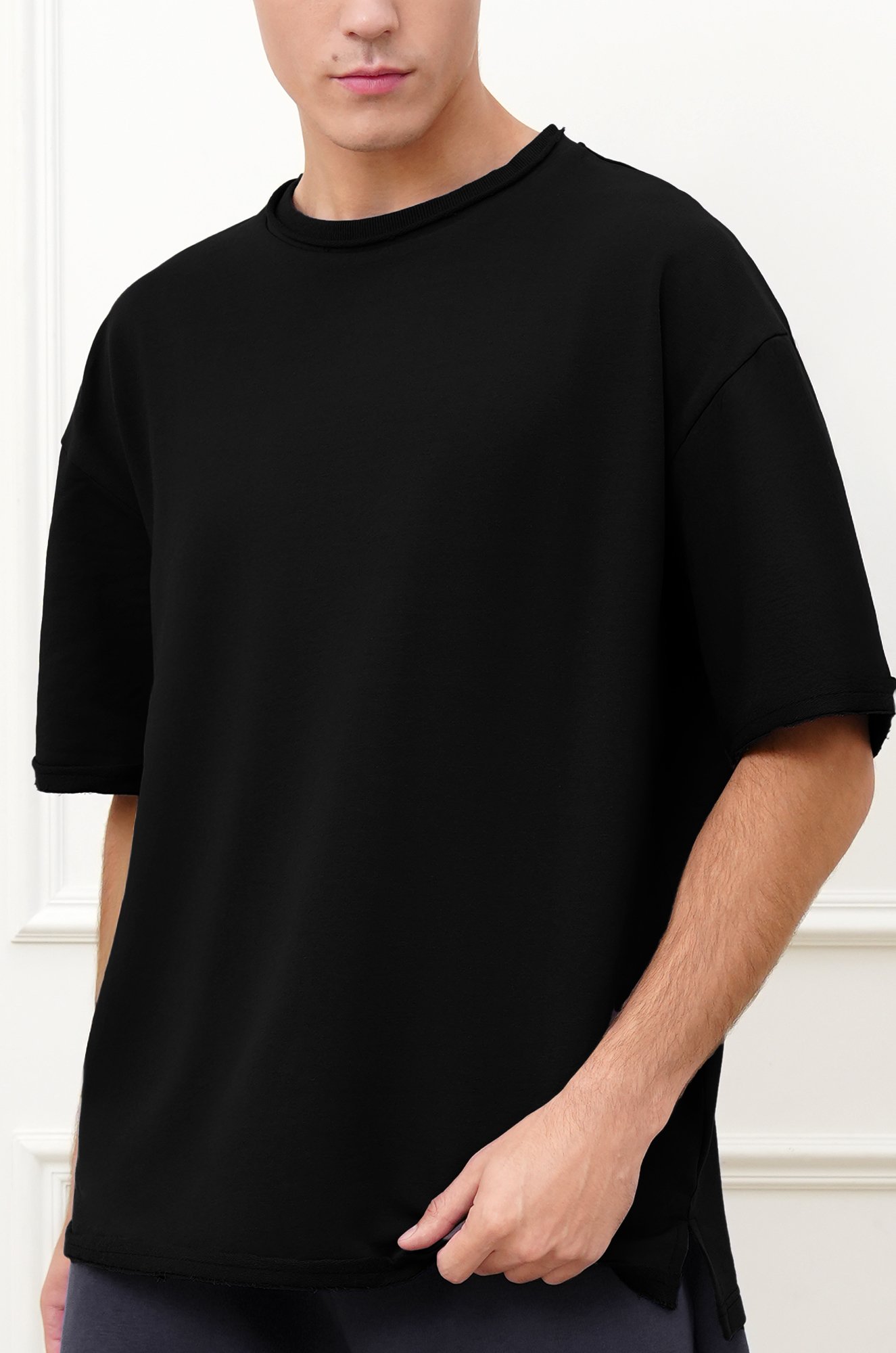 Однотонная черная футболка для мужчин подойдёт для дома, работы и спортзала.
