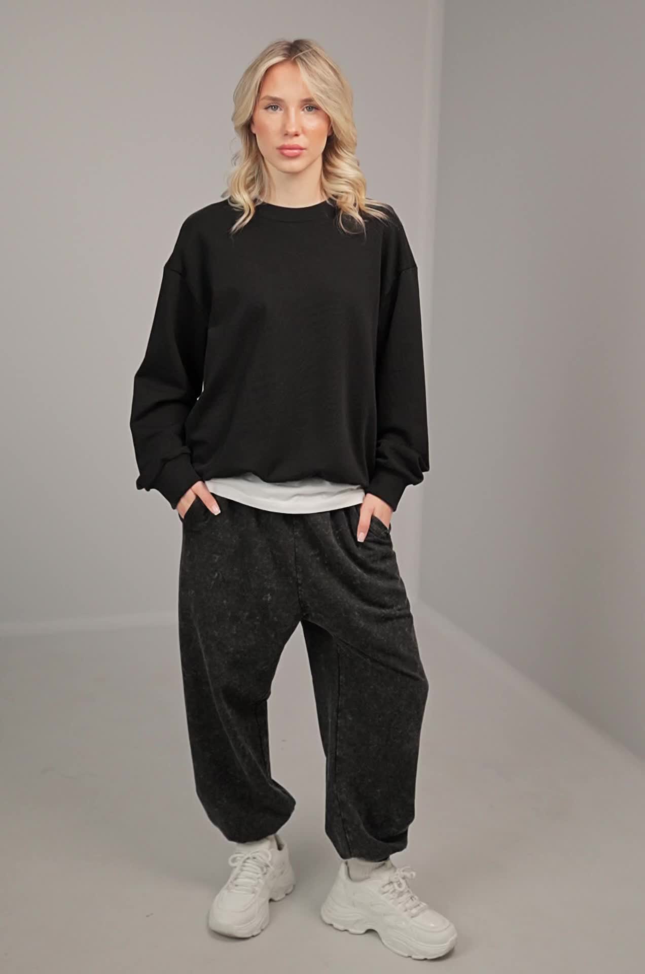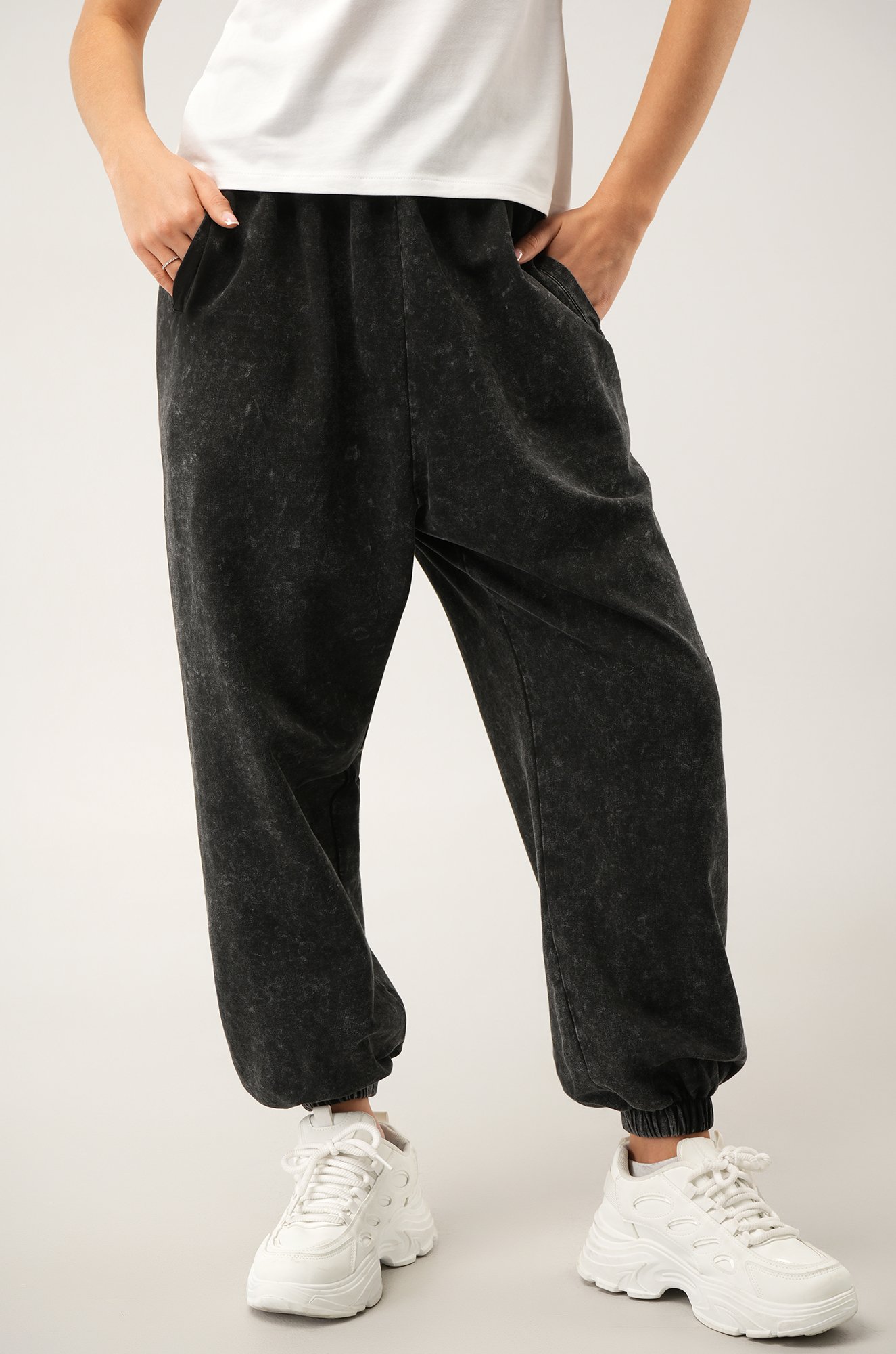 Широкие женские брюки созданы для тех, кто выбирает свободу движений и комфорт каждый день. Мягкий трикотаж, свободный крой и лёгкий винтажный эффект превращают черные спортивные штаны в стильные джоггеры.