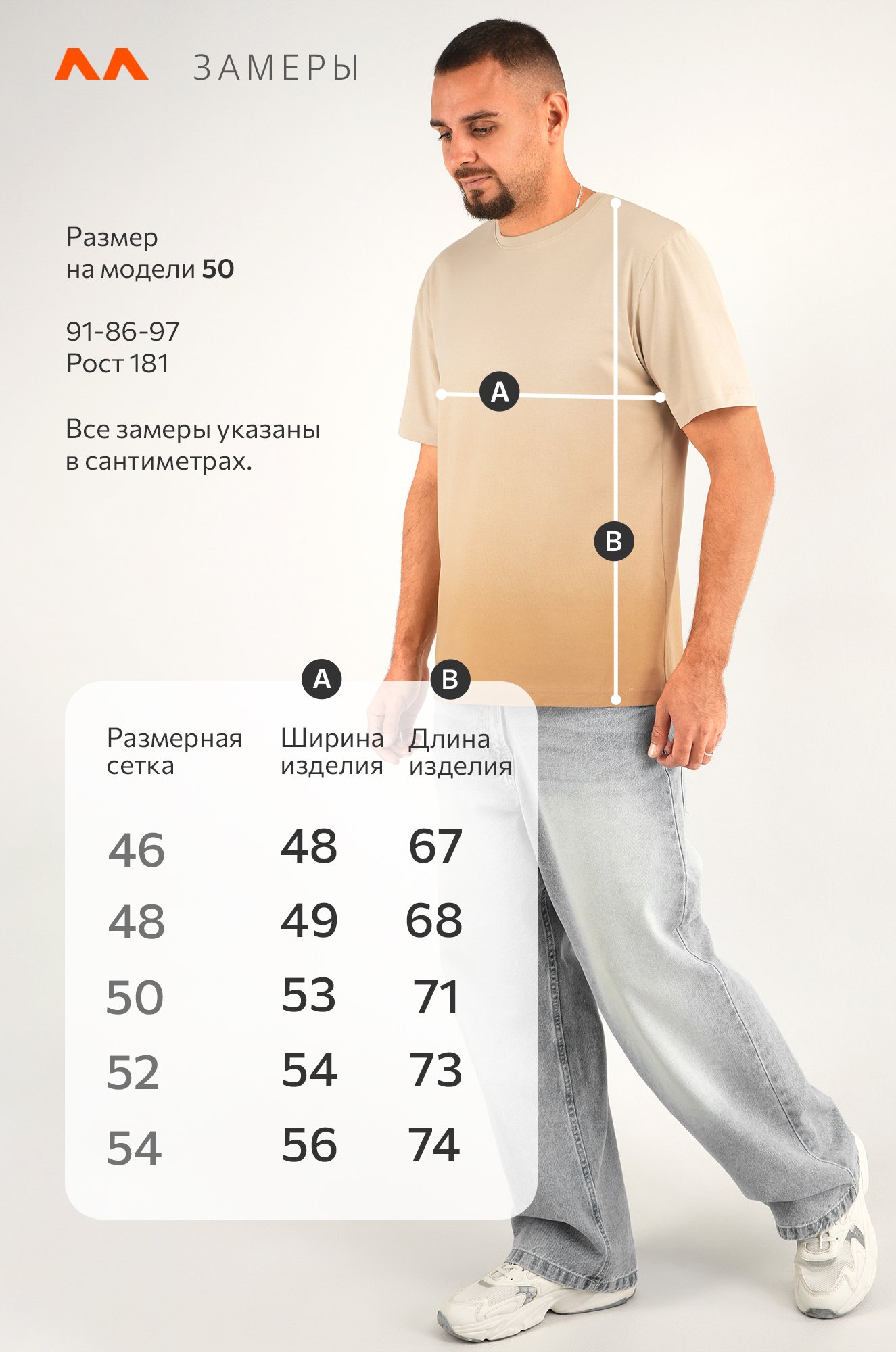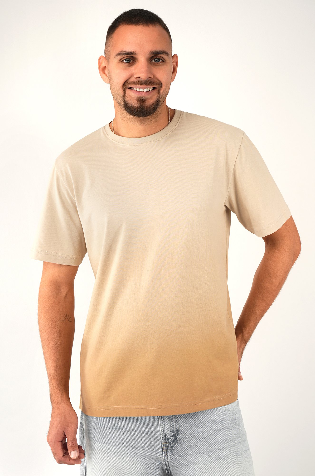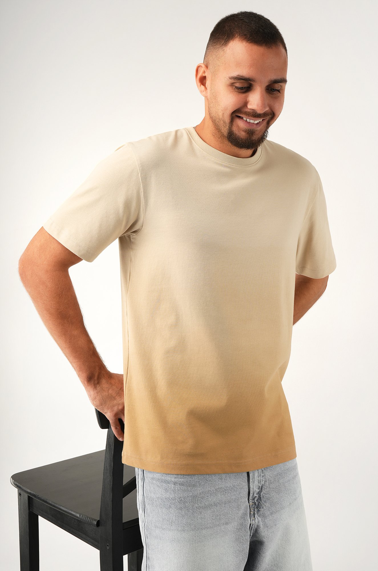 Мужская футболка с градиентным принтом выполнена из хлопка с добавлением лайкры. Футболка с эффектом омбре идеальна для создания стильных и расслабленных образов. Плавный переход от светлого песочного к тёмному добавляет динамики.