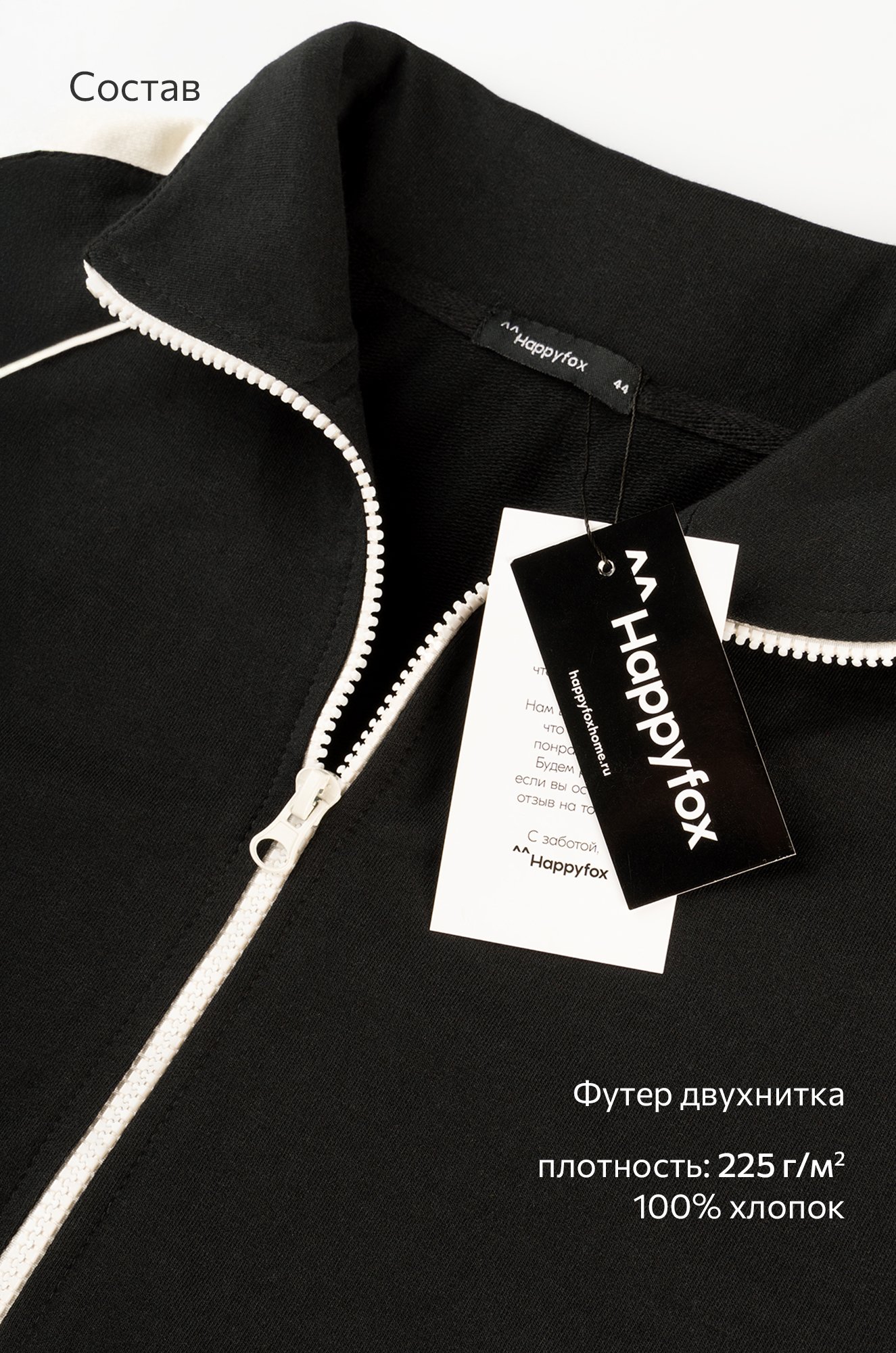— плотный трикотажный футер из 100% хлопка приятен к телу, (225 г/м2);