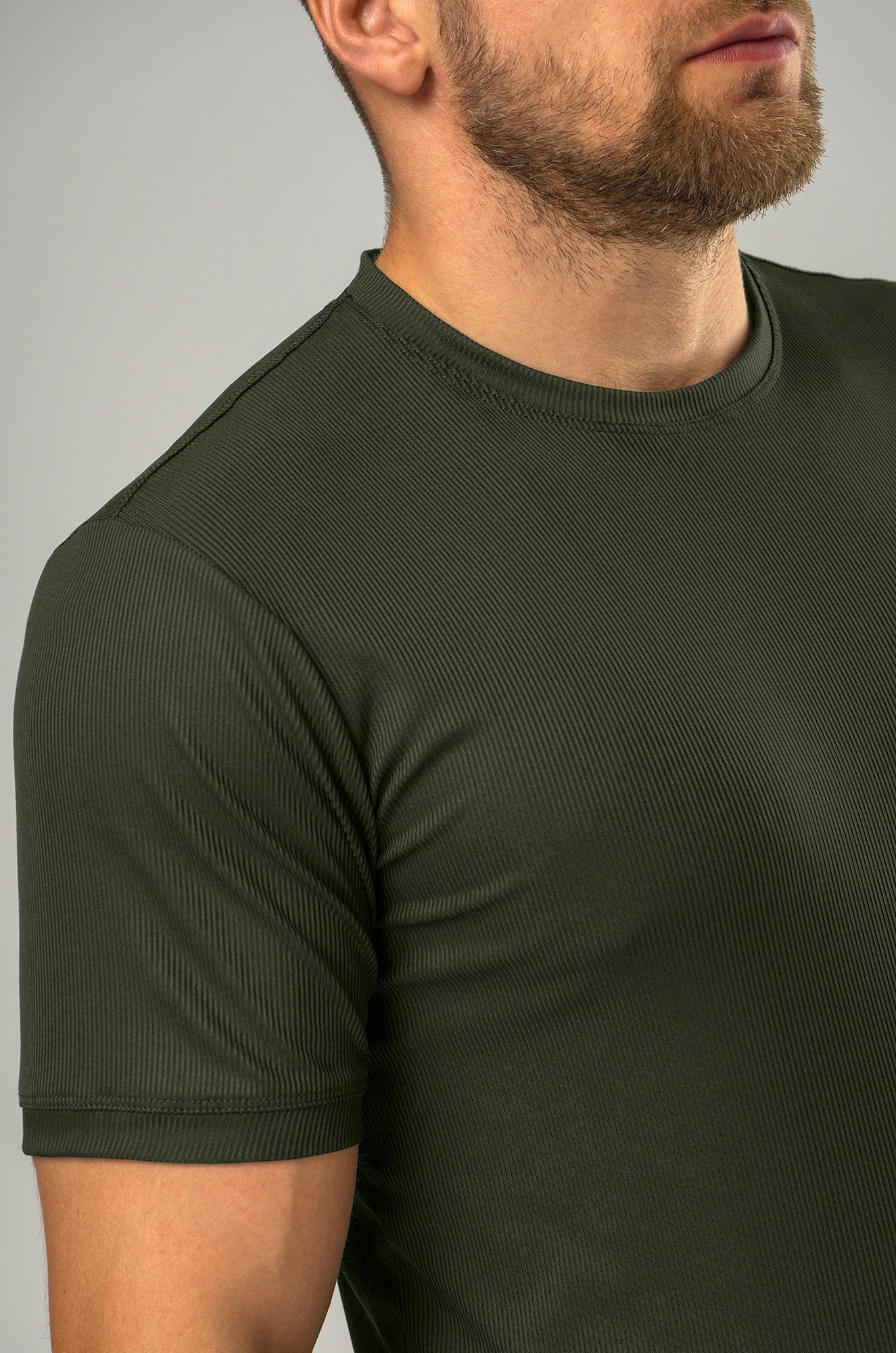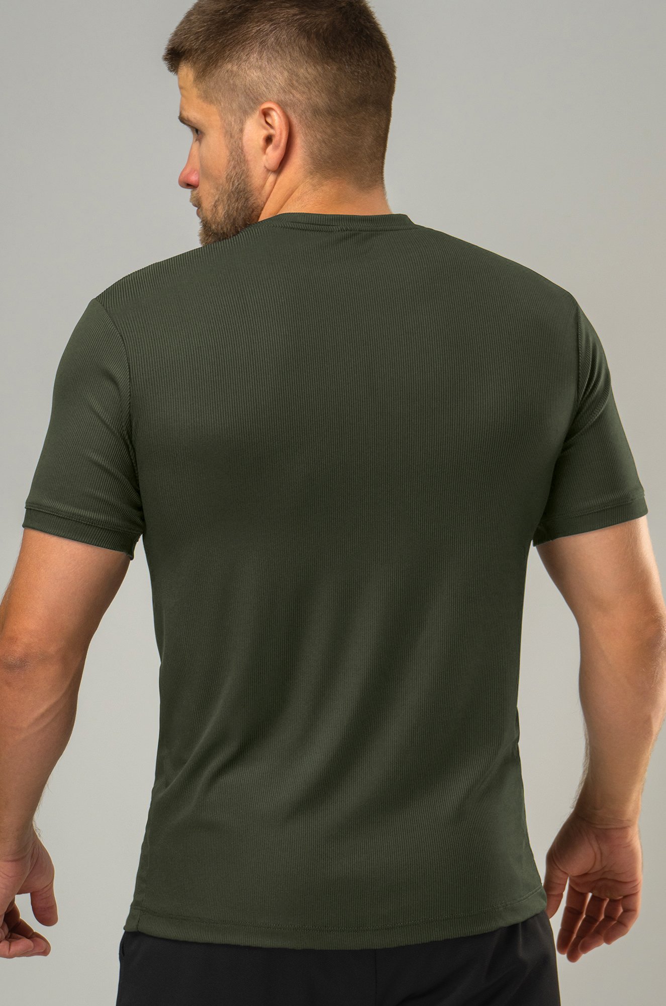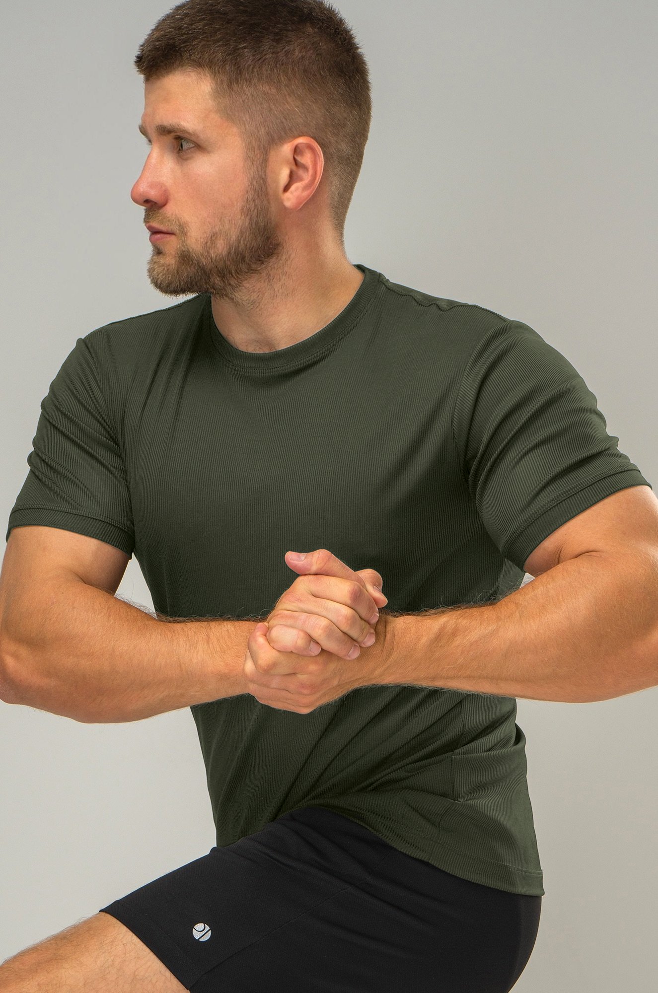 Однотонная мужская футболка в рубчик — идеальный спортивный вариант. Удобный прямой крой не стесняет движений. Мягкая горловина и ровные швы дарят комфорт в течение всего дня.
