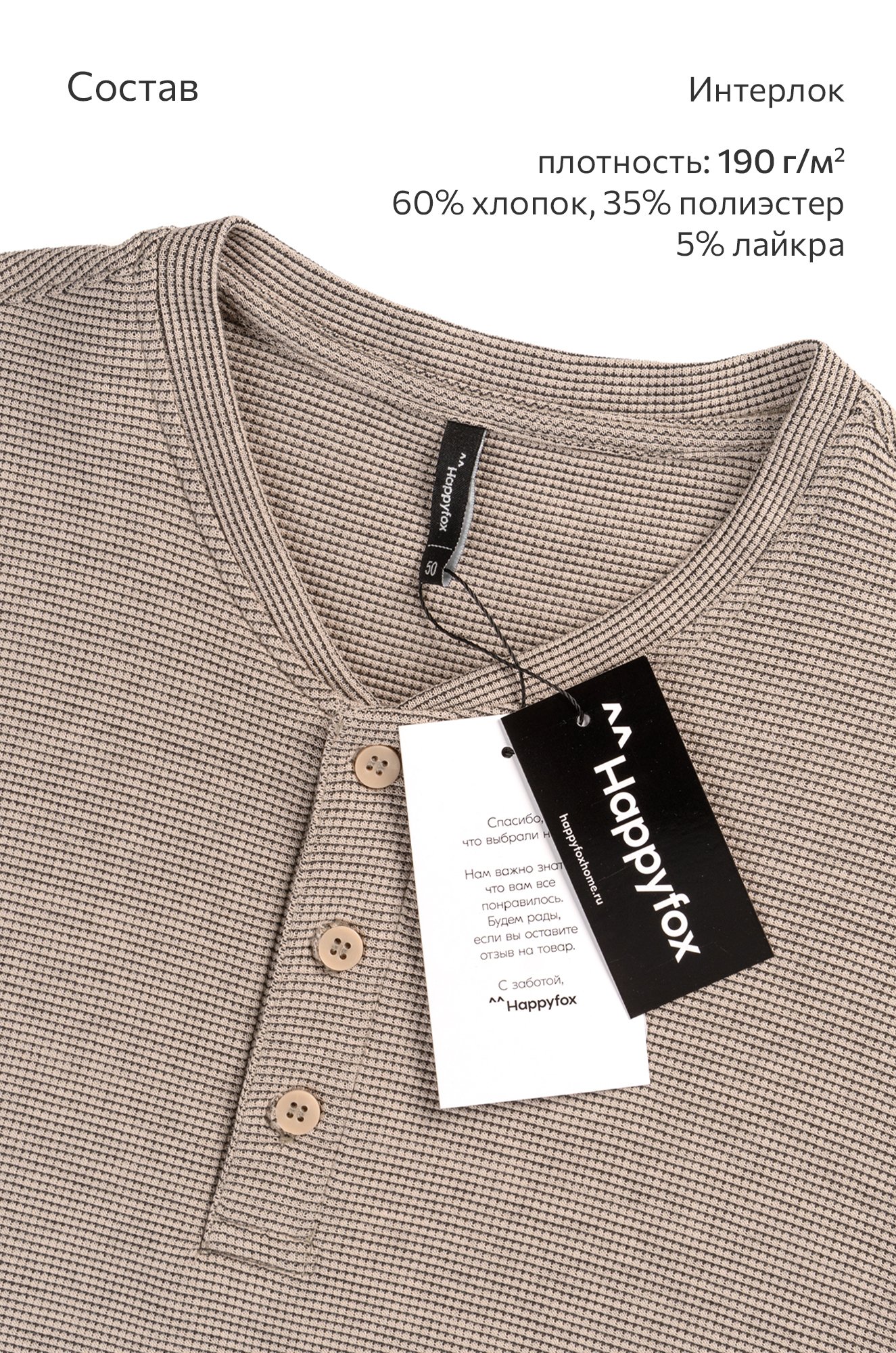 - Состав: 60% хлопок, 35% полиэстер, 5% лайкра
