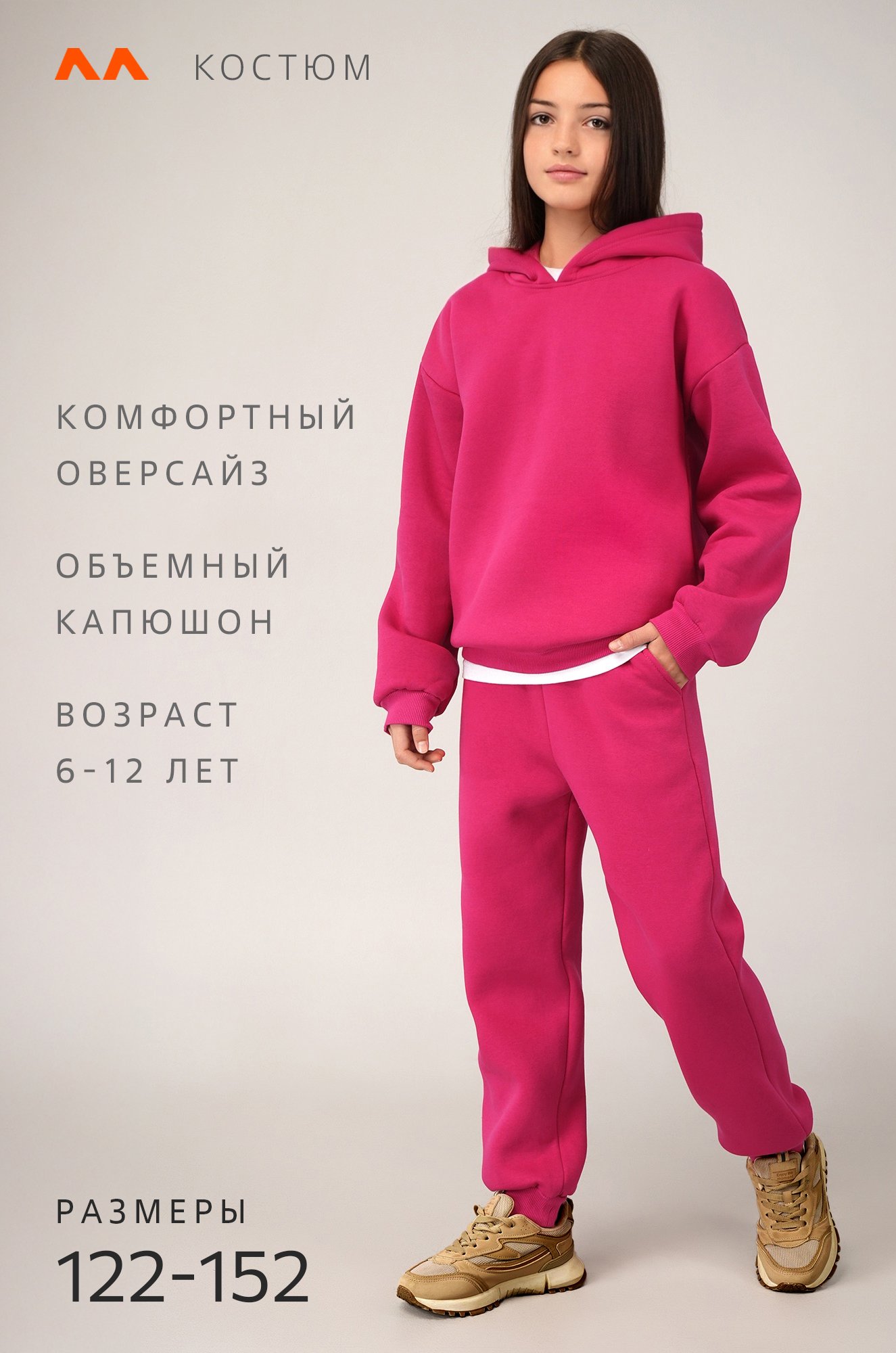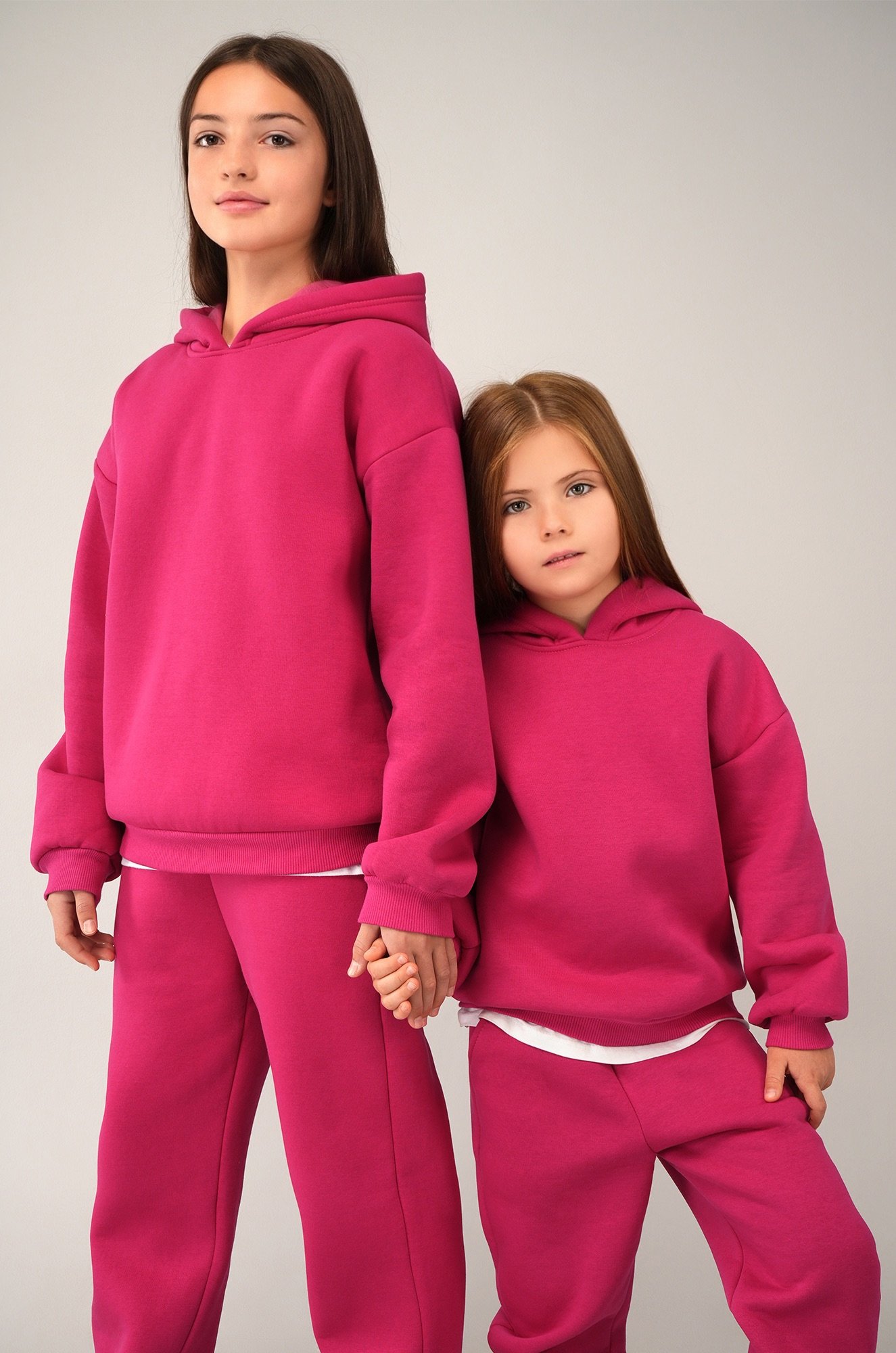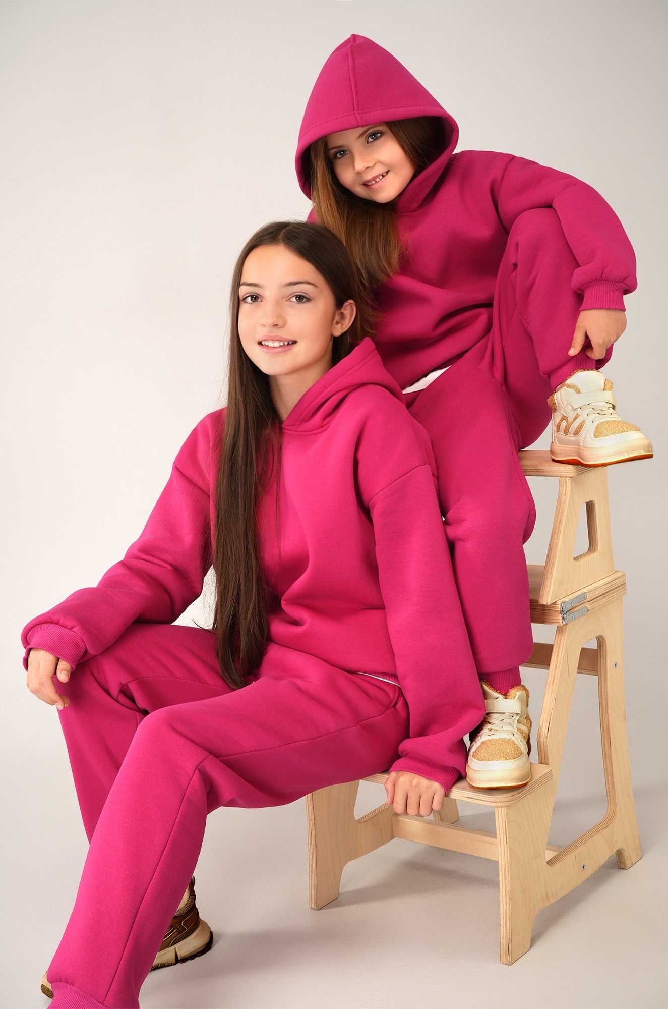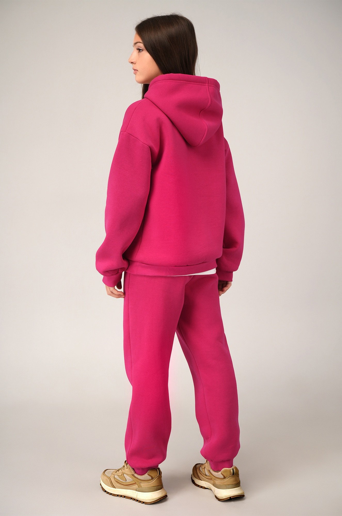 Теплый детский костюм двойка с мягким начесом состоит из удобного худи и практичных брюк джоггеров. Свобода движений и максимальный комфорт в ярко-розовом костюме для девочки гарантированы!