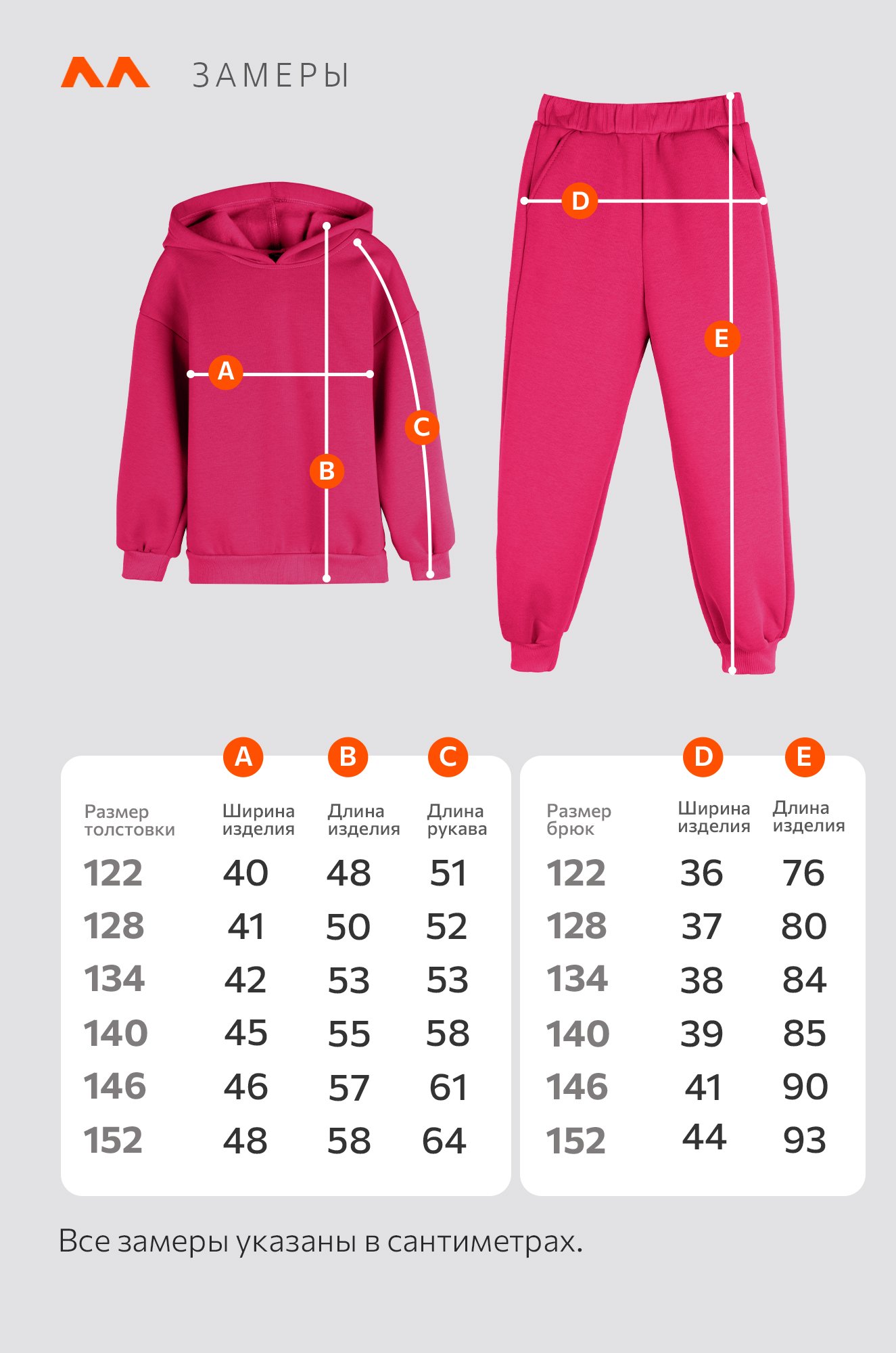 Размер 134: худи: длина:53 см; ширина:42 см; длина рукава внешняя:53 см; длина рукава внутренняя:36 см.