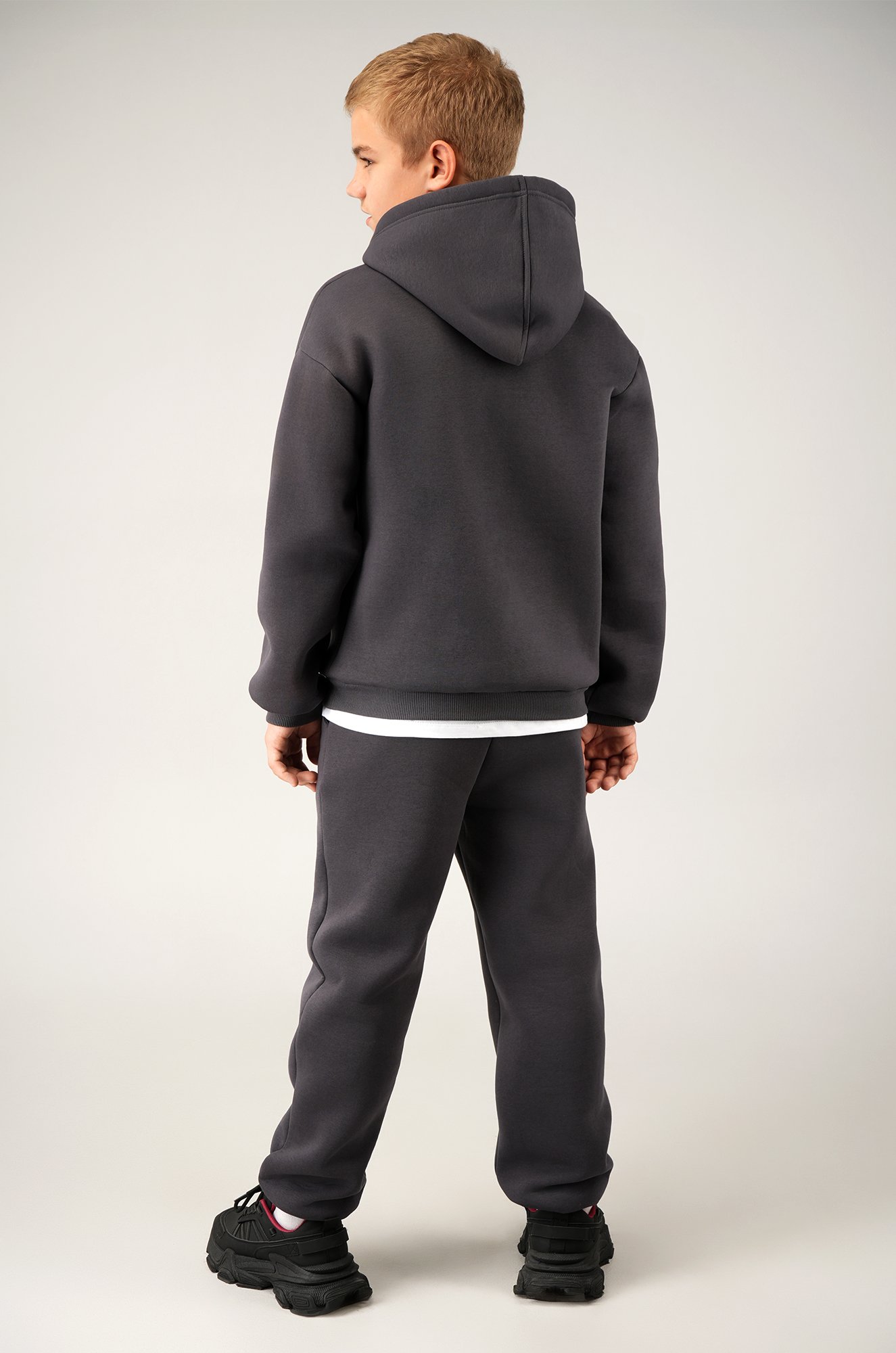 Теплый детский костюм двойка с мягким начесом состоит из удобного худи и практичных брюк джоггеров. Свобода движений и максимальный комфорт гарантированы!