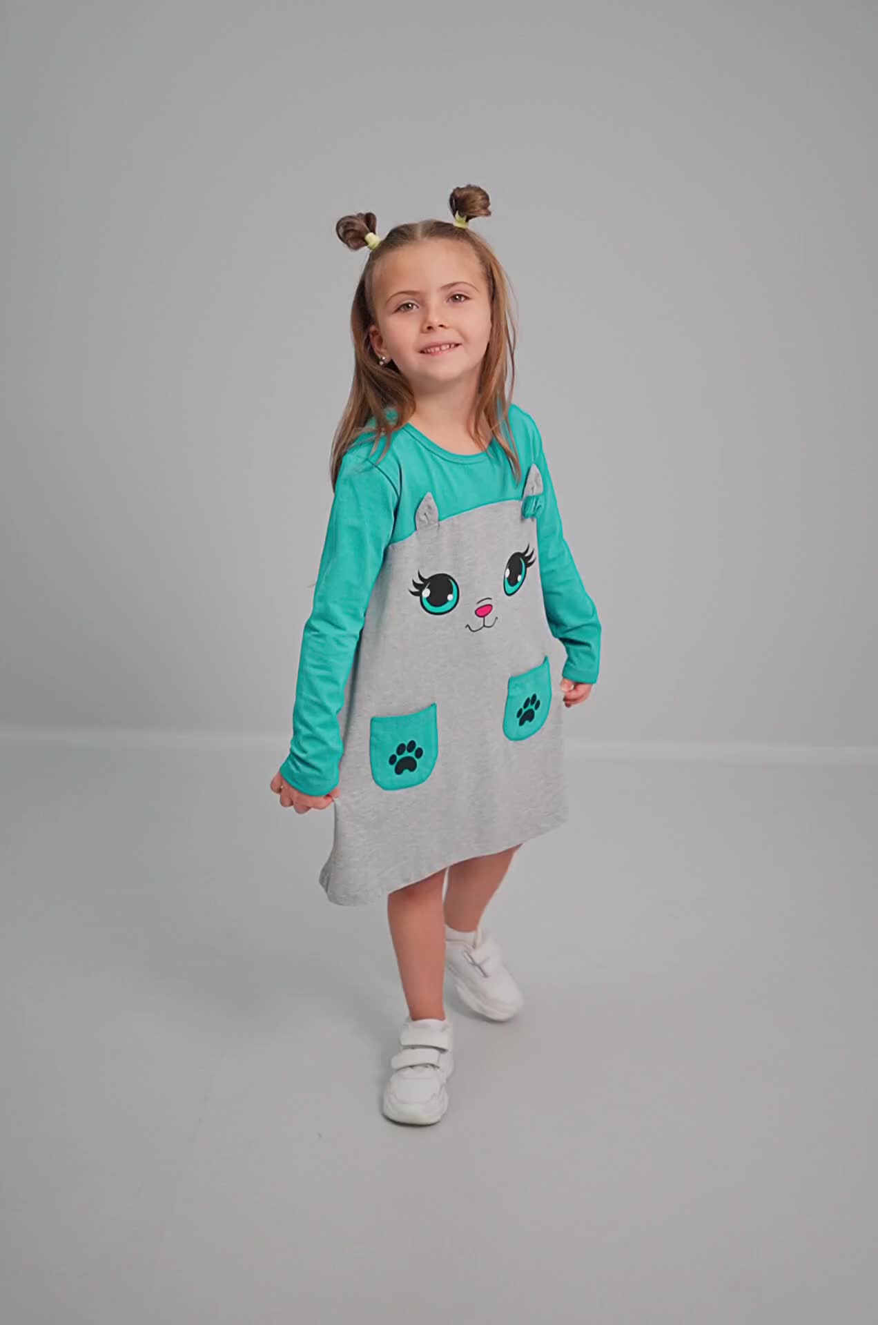 Очаровательное платьице, которое невозможно не полюбить с первого взгляда! Забавная Кошечка с ушками и бантиком вызывает улыбку, а мягкий хлопковый трикотаж делает его удобным для активных девчонок. Изумрудное детское платье создано для радости и комфорта каждый день.