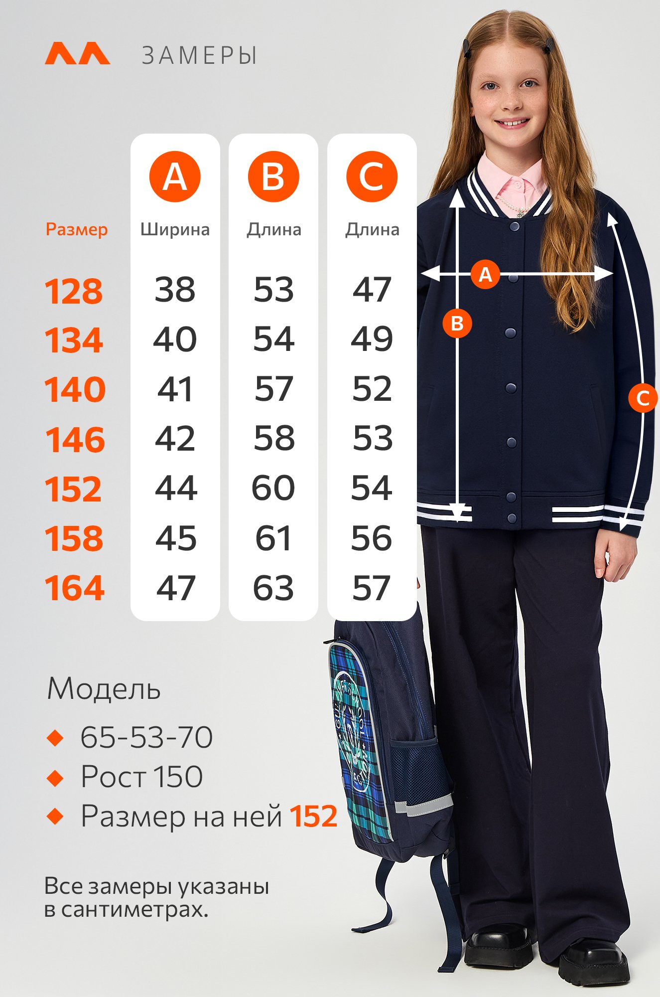Размер 152: длина:60 см; ширина:44 см; длина рукава внешняя:54 см; длина рукава внутренняя:47 см.