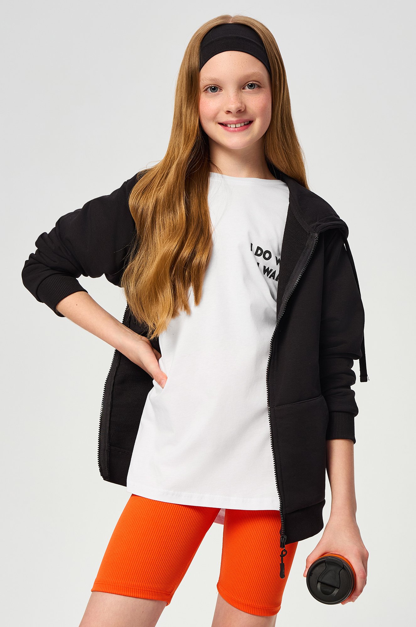 В комплекте толстовка зипка с длинными рукавами и штаны джоггеры. Эластичные манжеты не позволяют рукавам и штанинам задираться при активных движениях, уютный карман-кенгуру согревает руки в прохладную погоду, а капюшон защищает от ветра. Посадку можно отрегулировать удобным шнурком на поясе.