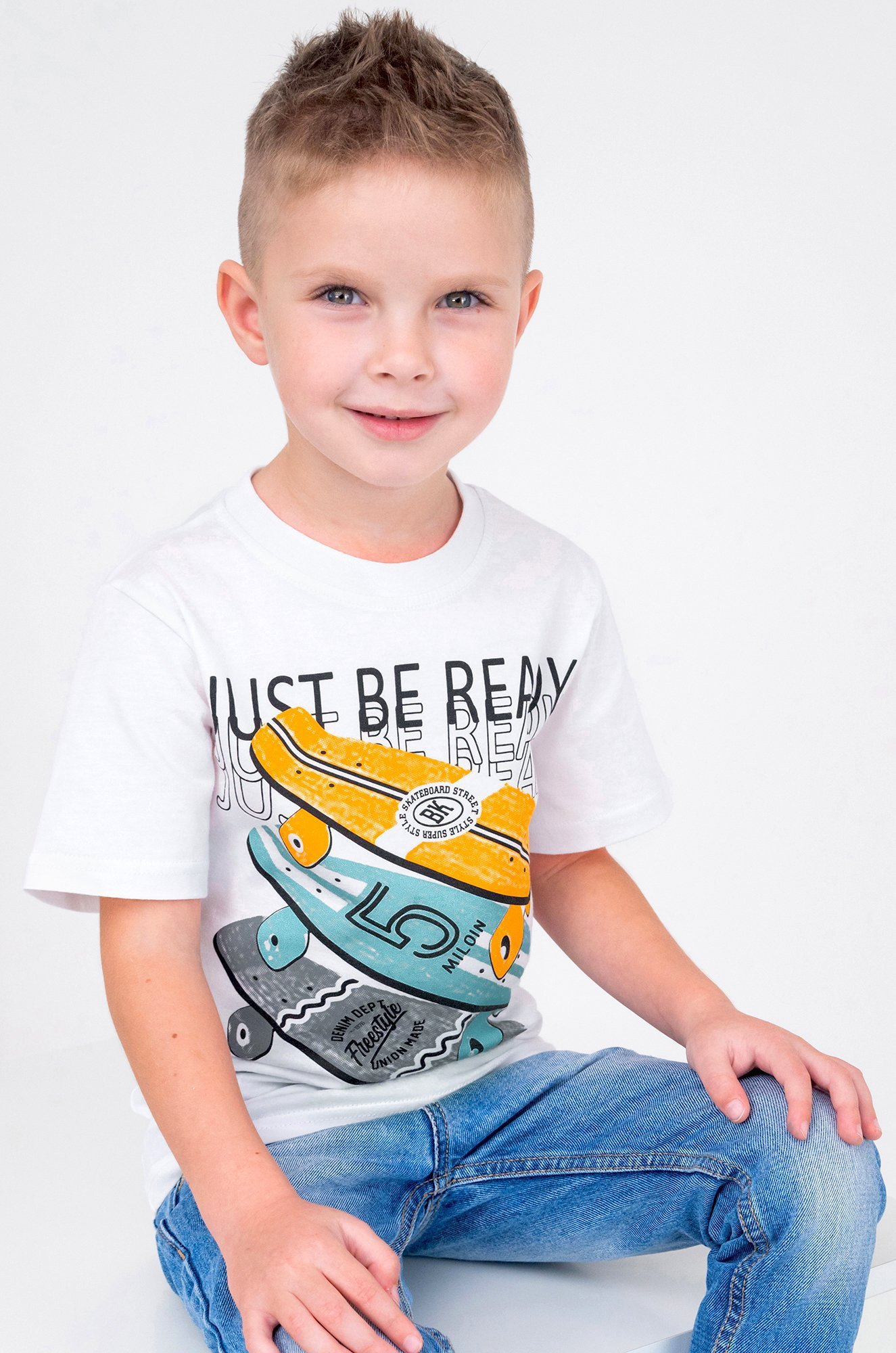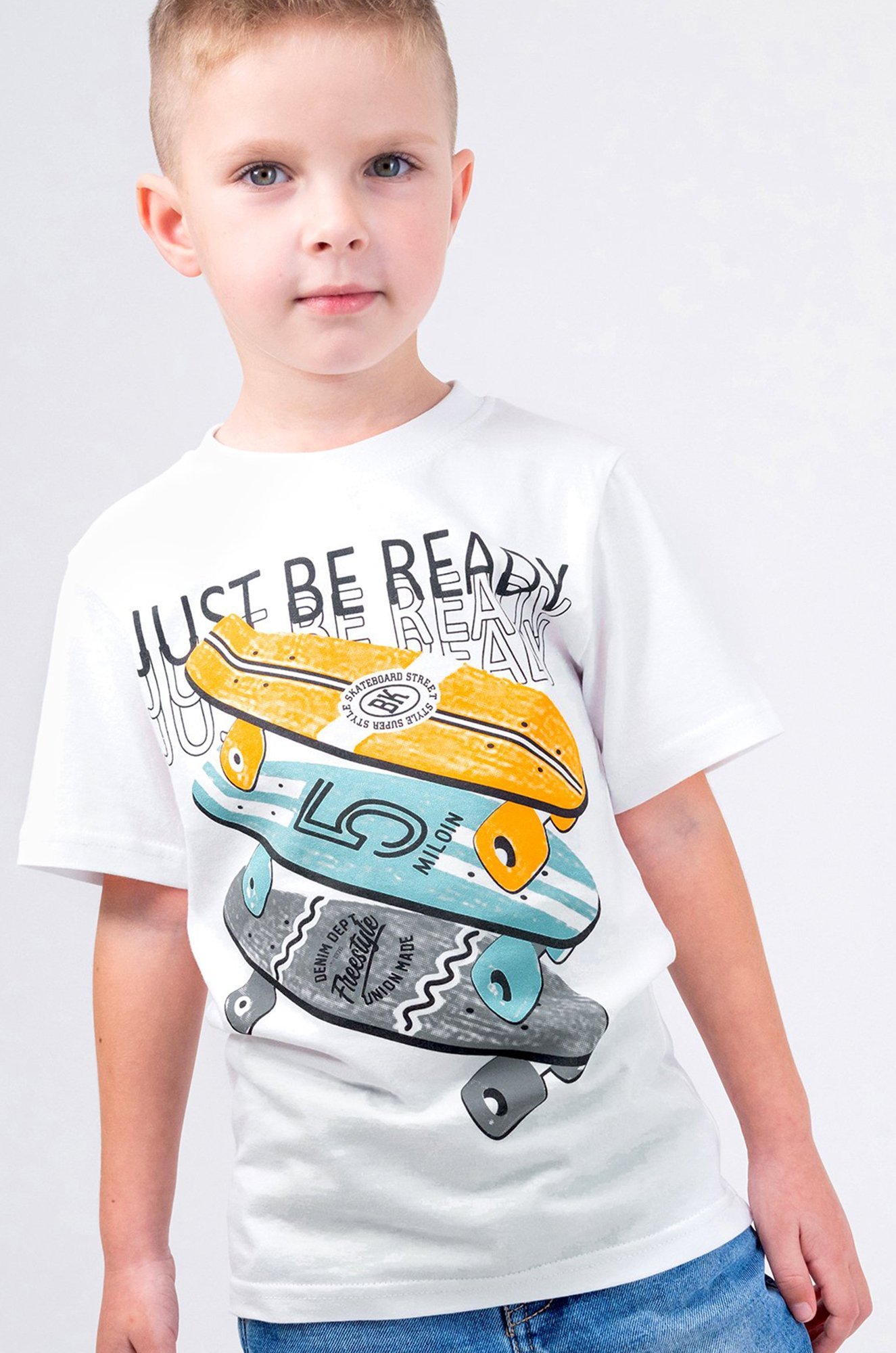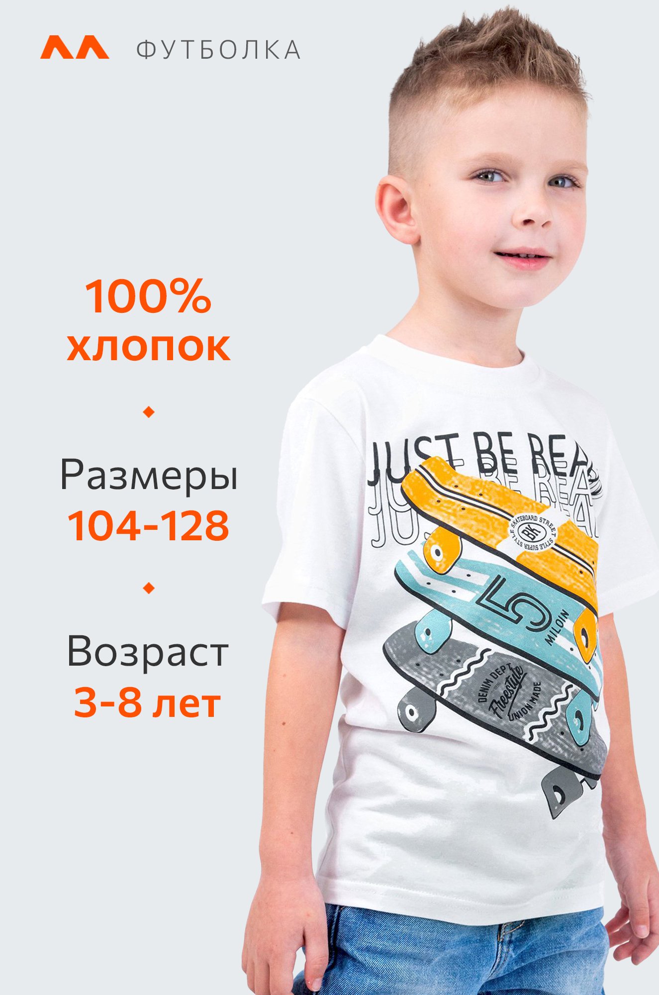 Детская футболка с принтом скейты поможет создать яркий образ вашему мальчику. Белая футболка выполнена из 100% хлопка, ткань кулирная гладь. Детская футболкам – отличный вариант для занятий спортом, прогулок, поездки на природу, похода в садик.