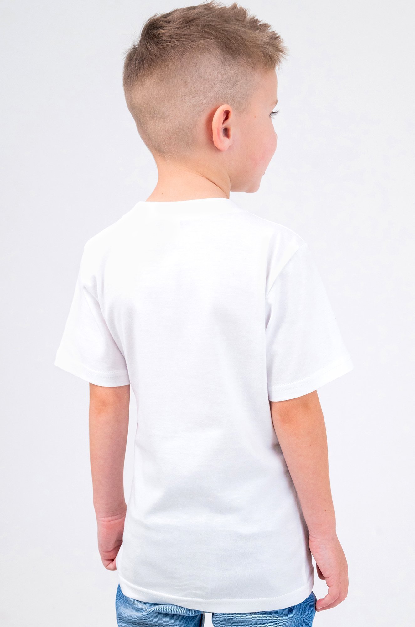 Летняя футболка для мальчика не боится частых стирок и надолго сохраняет форму и цвет. Футболка с коротким рукавом не сковывает движений благодаря свободному прямому крою и позволяет ребенку всегда оставаться активным.