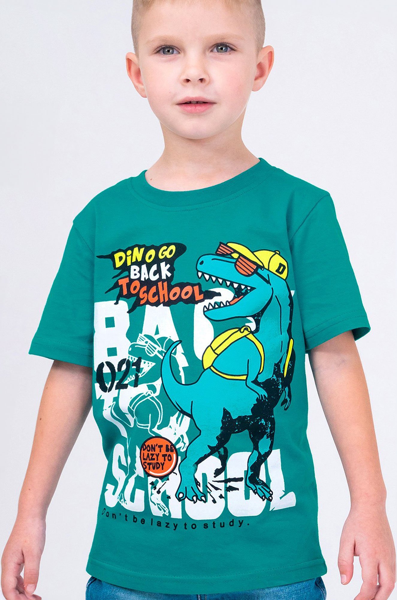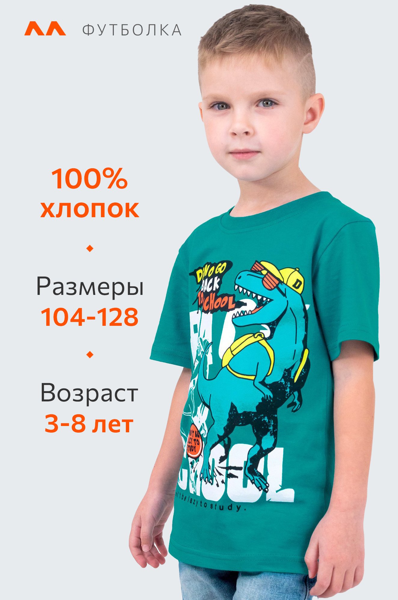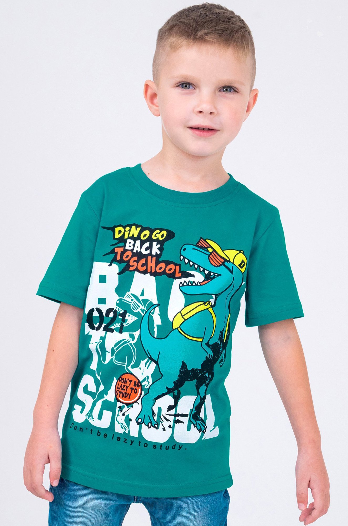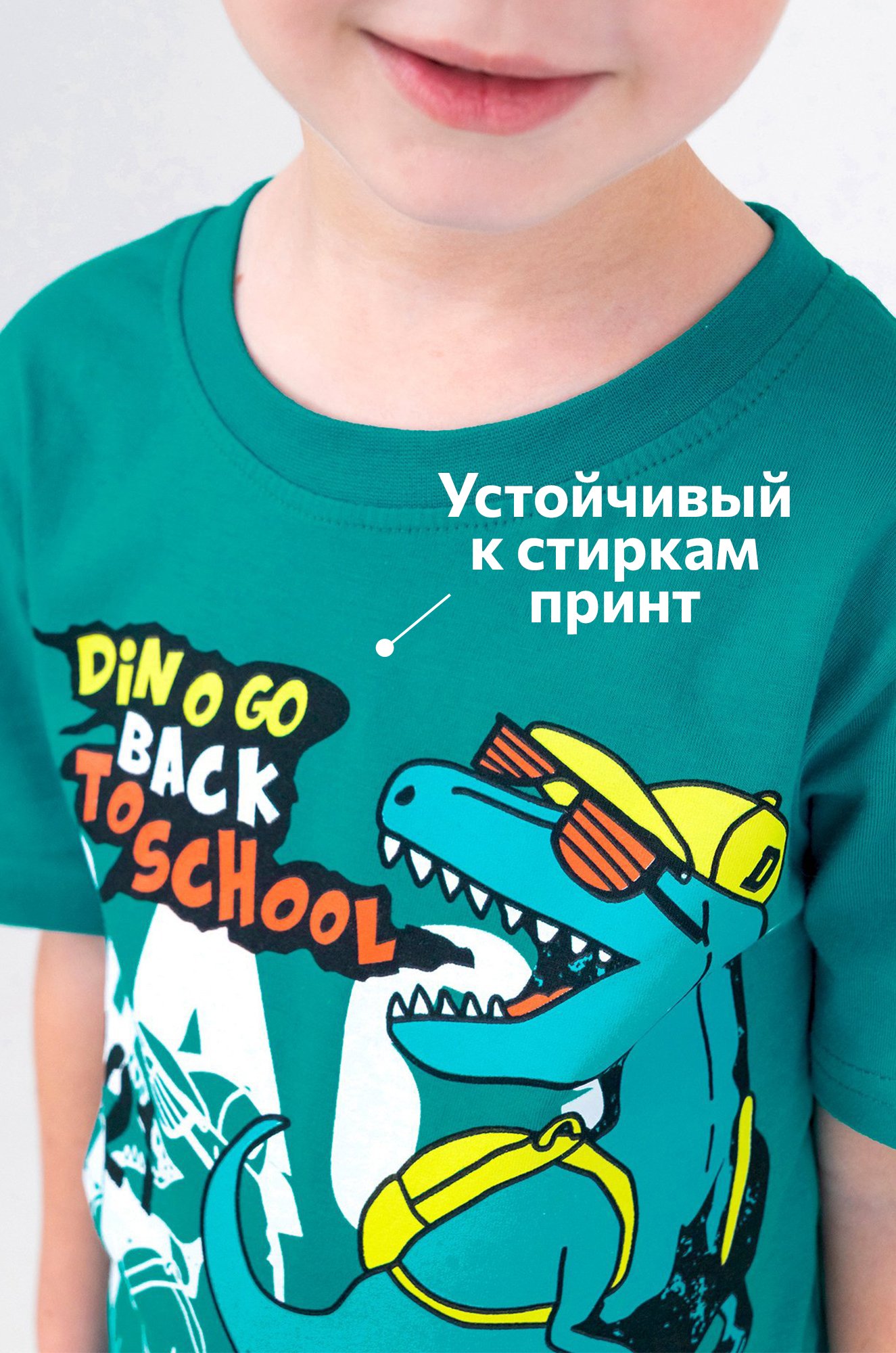 Футболка с коротким рукавом не сковывает движений благодаря свободному прямому крою и позволяет ребенку всегда оставаться активным. Благодаря удобной длине зеленую футболку из трикотажа можно носить заправленной и навыпуск.