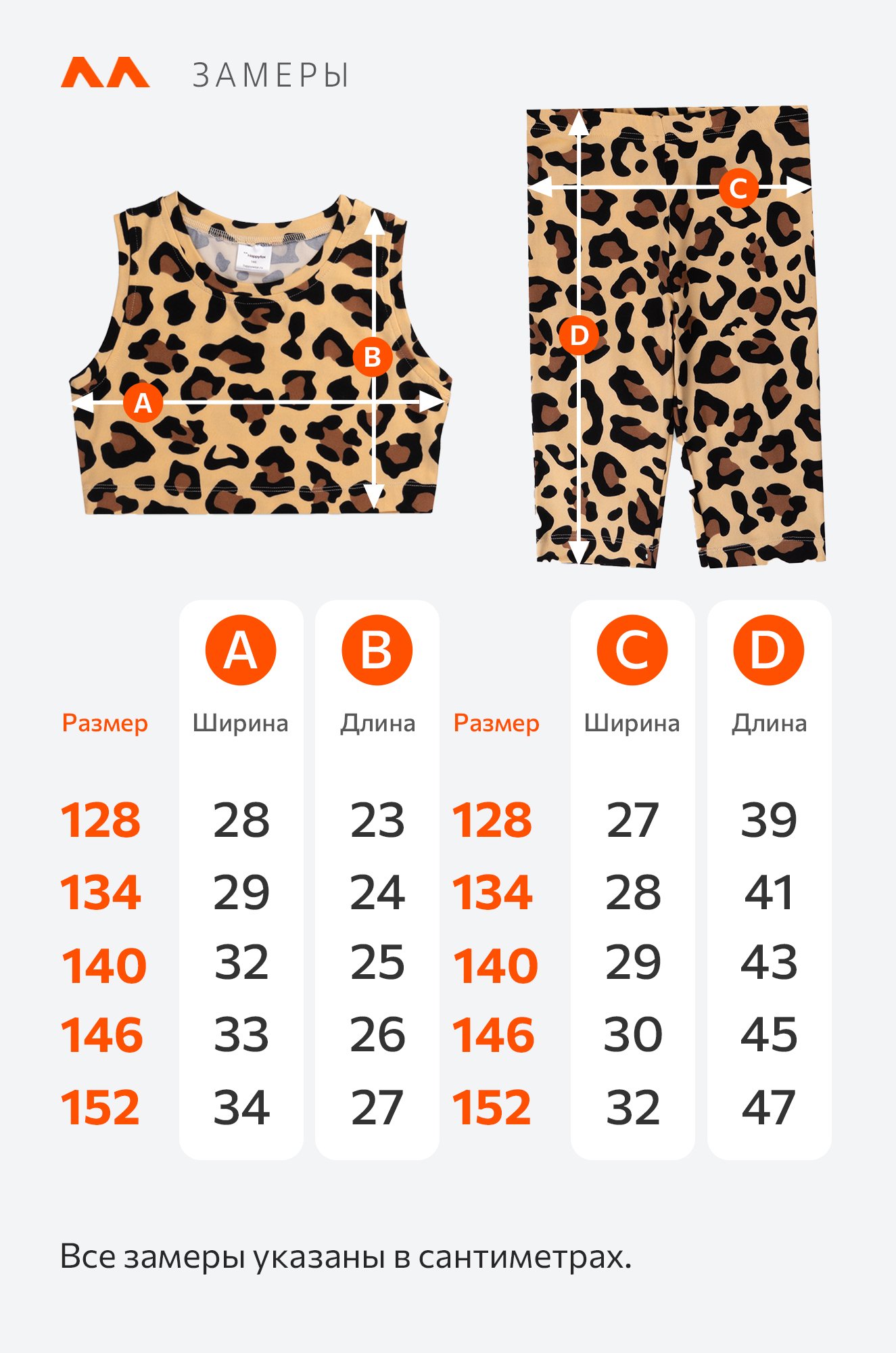 Раскрой себя по-новому этим летом! Детский летний костюм для девочек и девочек-подростков выполнен из эластичной и невероятно мягкой ткани бамбук. Леопардовые топ и бриджи для детей станут отличным решением для спорта и повседневных прогулок. Высокая посадка, мягкая резинка и плоские швы – всё для комфорта ребенка. Яркий анималистичный рисунок поднимет настроение и зарядит энергией на весь день!