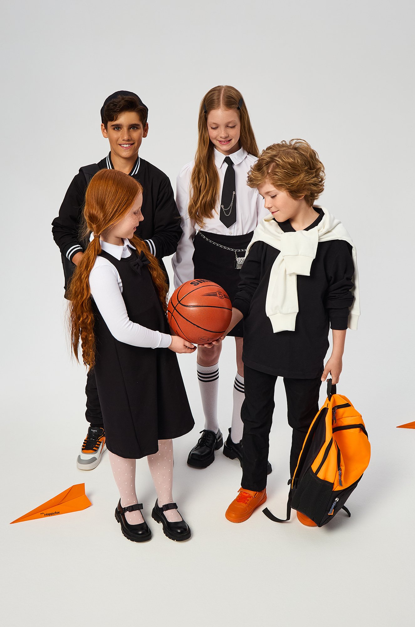 Базовая черная футболка-поло — отличное решение для школы, прогулок и повседневных образов.