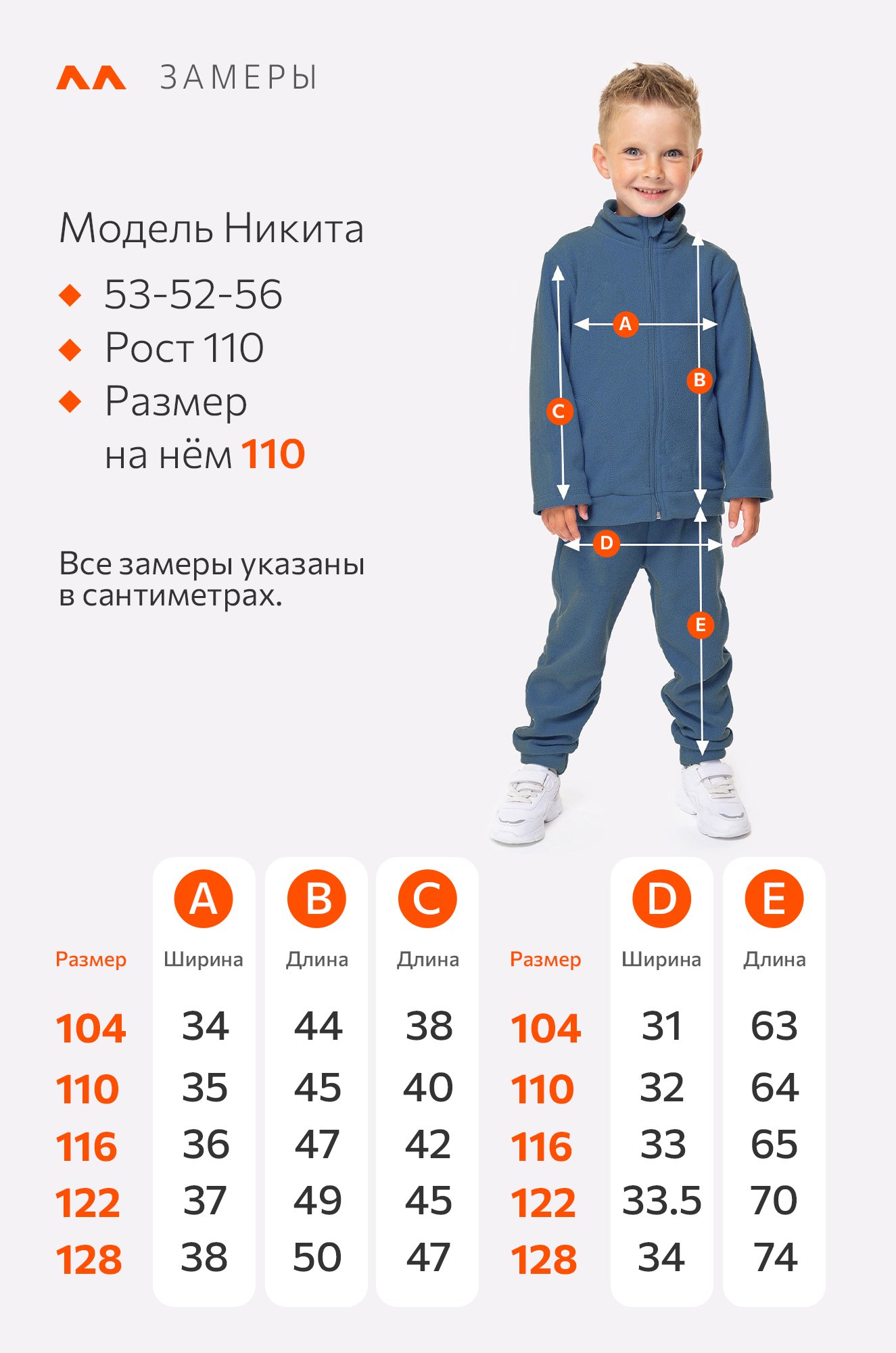 Мальчик, рост модели 110 см. На нем размер 110.