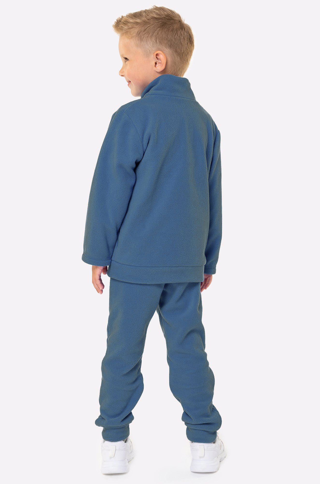 — синий костюм из флиса приятен к телу, отлично сохраняет тепло;