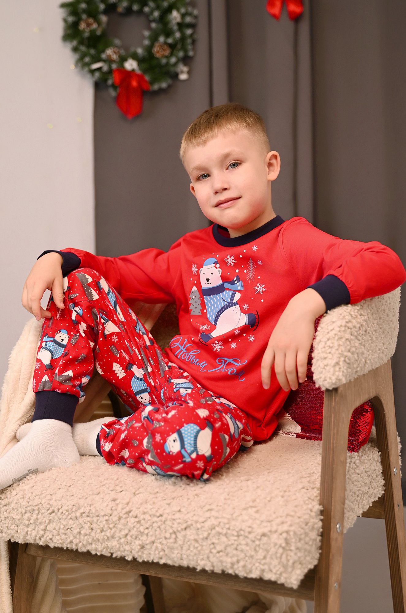 Яркая новогодняя пижама с брюками для мальчика и для девочки создаст атмосферу праздника и уюта. Весёлый принт Медведь с надписью подарит радость и ожидание волшебства каждому ребенку. Детская пижама станет отличным подарком для детей и подростков на Новый год и Рождество.
