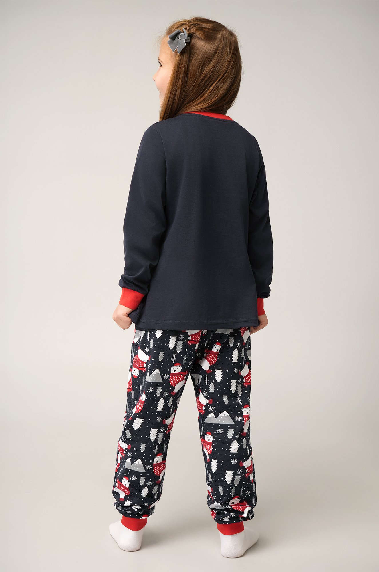 Уютная домашняя пижамка со штанами пригодится для дома и домашней фотосессии. Хлопковый трикотаж мягко обнимает во время сна, позволяя двигаться свободно, а яркий принт делает её любимой частью новогодних вечеров.