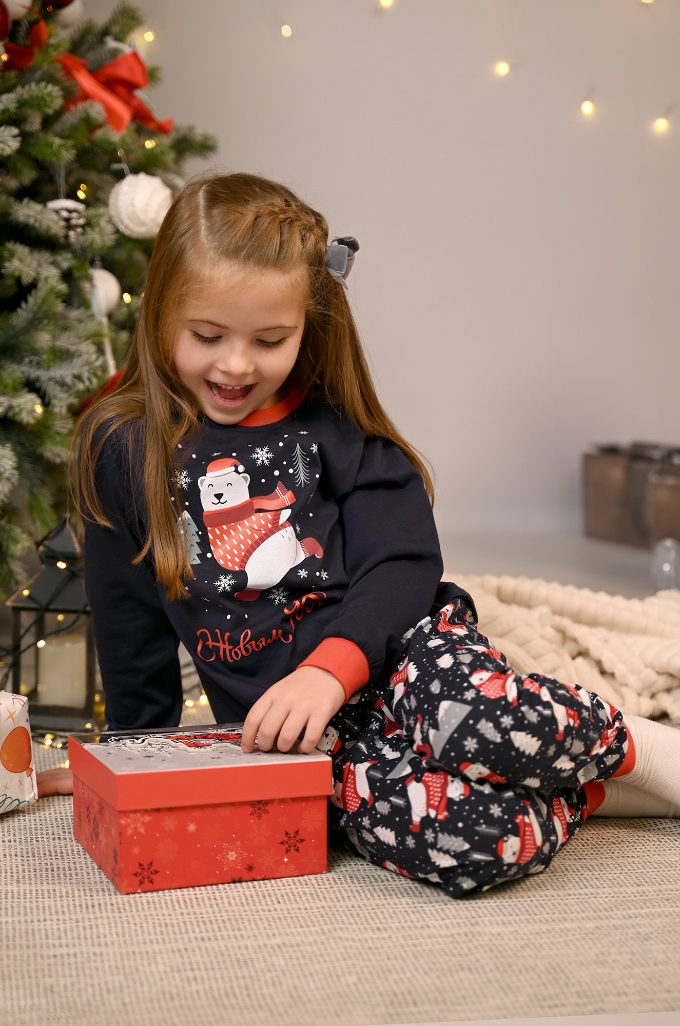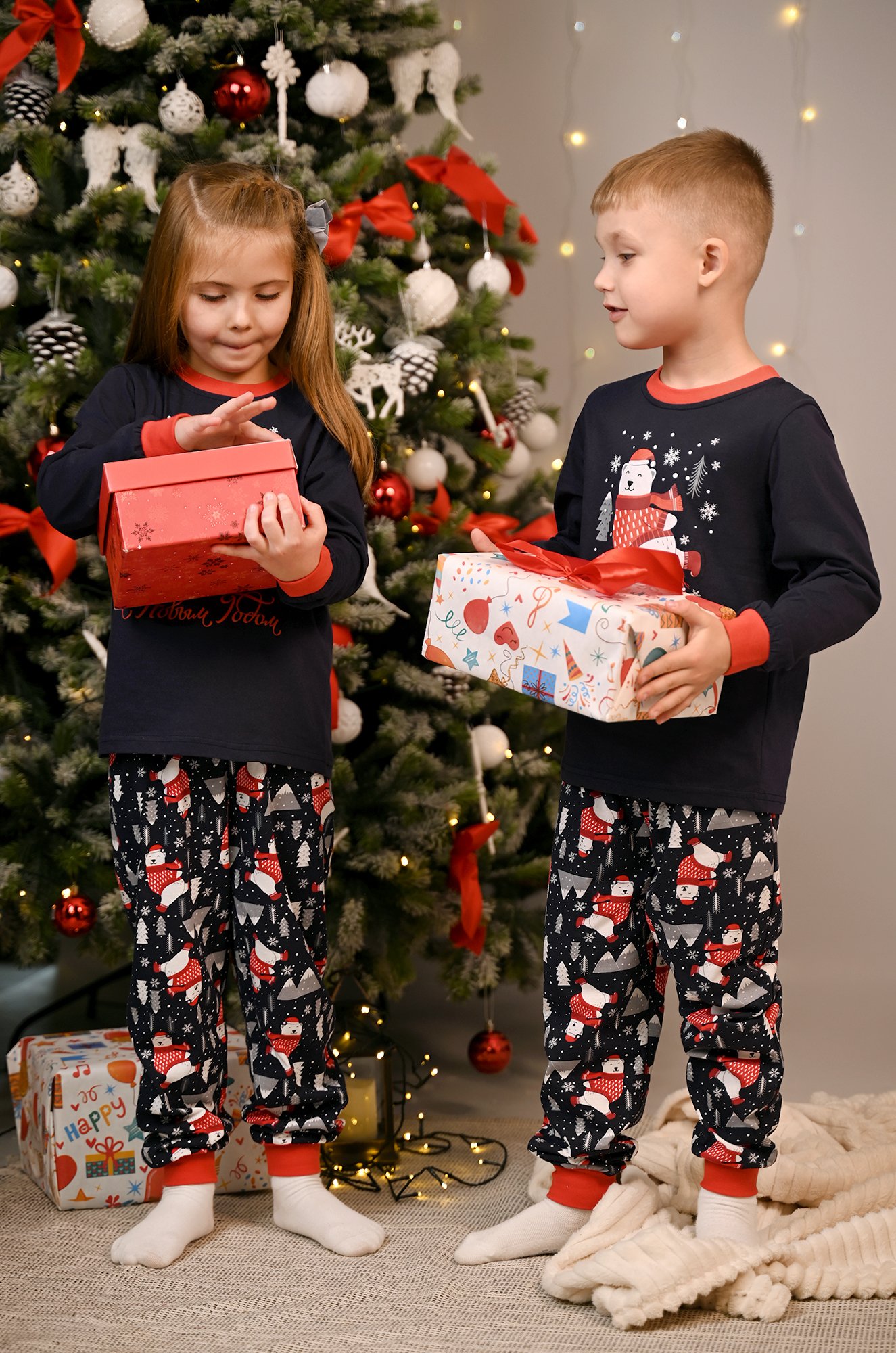Яркая новогодняя пижама с брюками для мальчика и для девочки создаст атмосферу праздника и уюта. Весёлый принт Медведь с надписью подарит радость и ожидание волшебства каждому ребенку. Детская пижама станет отличным подарком для детей и подростков на Новый год и Рождество.