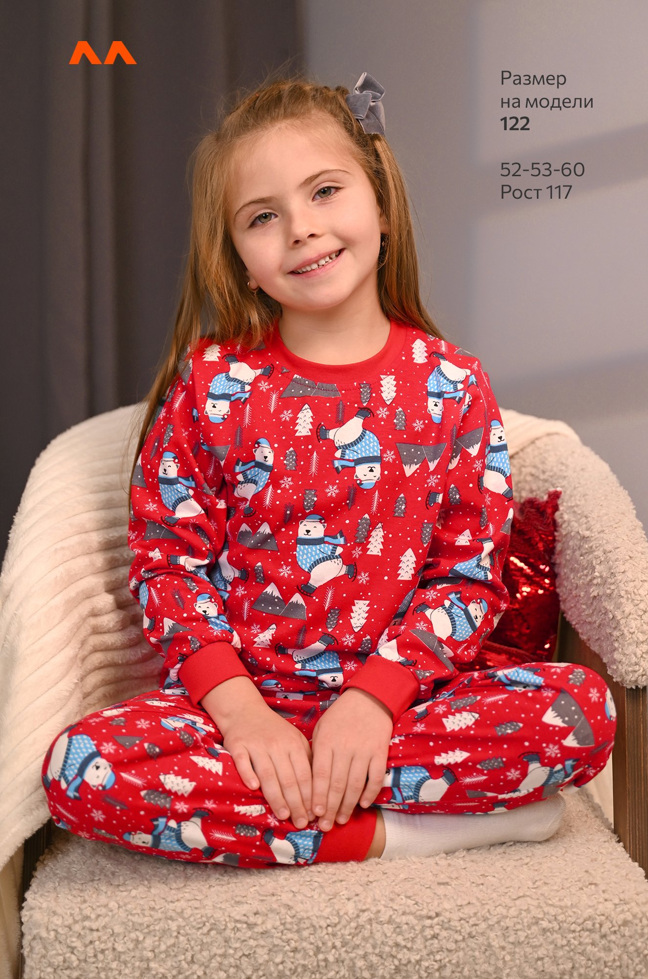 Уютная домашняя пижамка со штанами пригодится для дома и фотосессии дома. Хлопковый трикотаж мягко обнимает во время сна, позволяя двигаться свободно, а яркий принт делает её любимой частью новогодних вечеров.