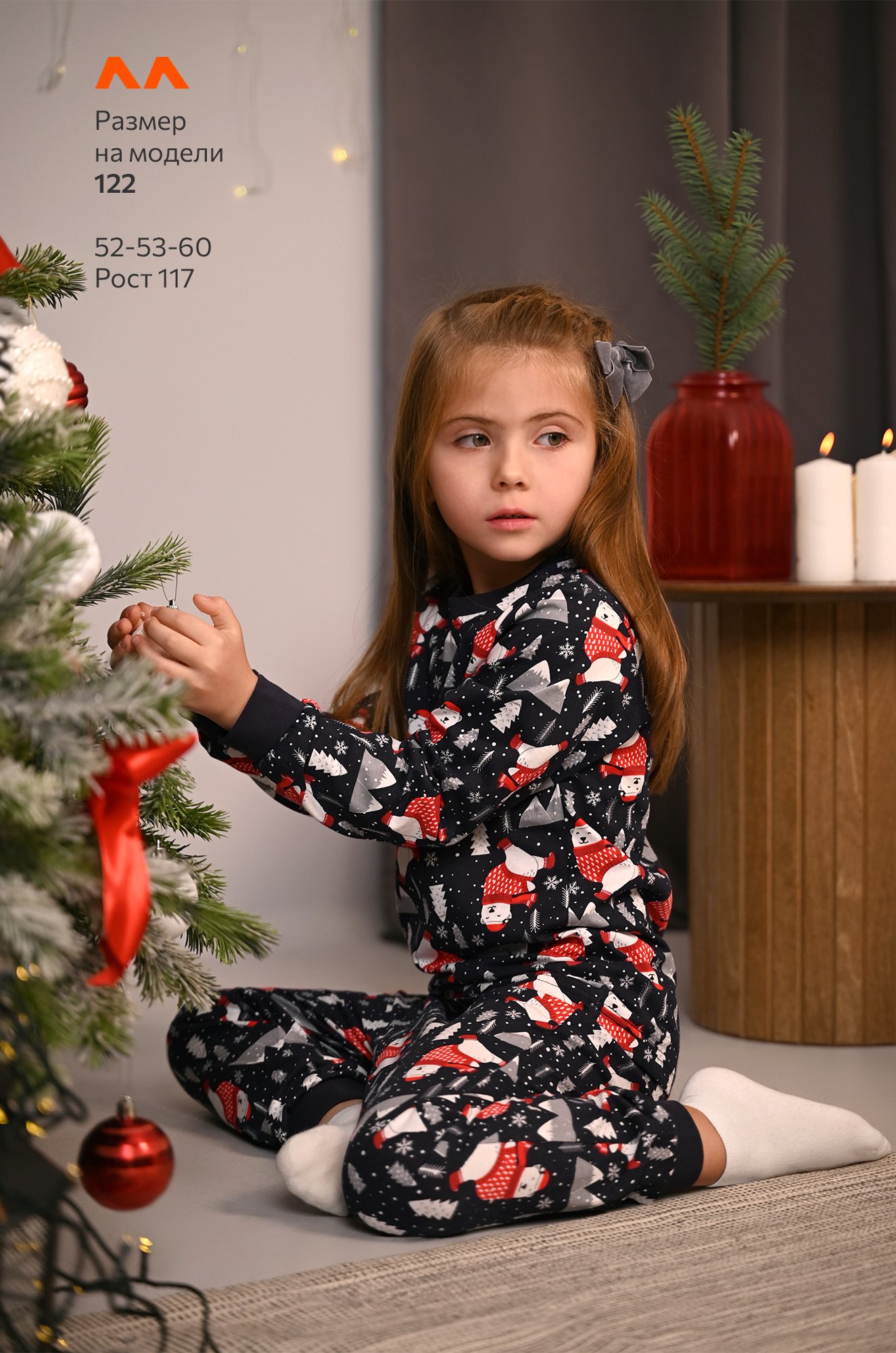 Уютная домашняя пижамка со штанами пригодится для дома и фотосессии дома. Хлопковый трикотаж мягко обнимает во время сна, позволяя двигаться свободно, а яркий принт делает её любимой частью новогодних вечеров.