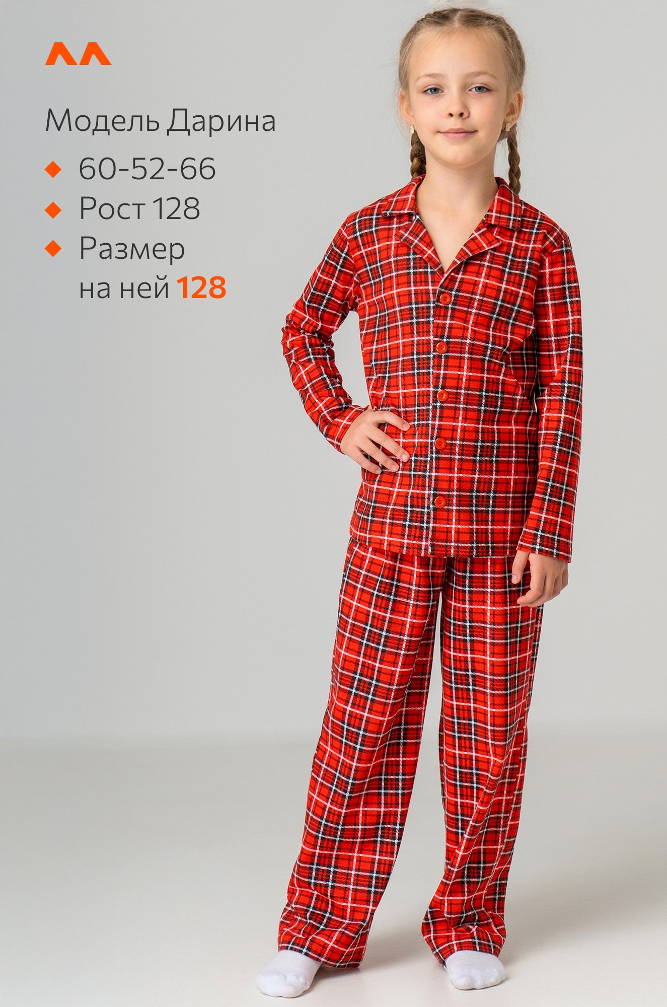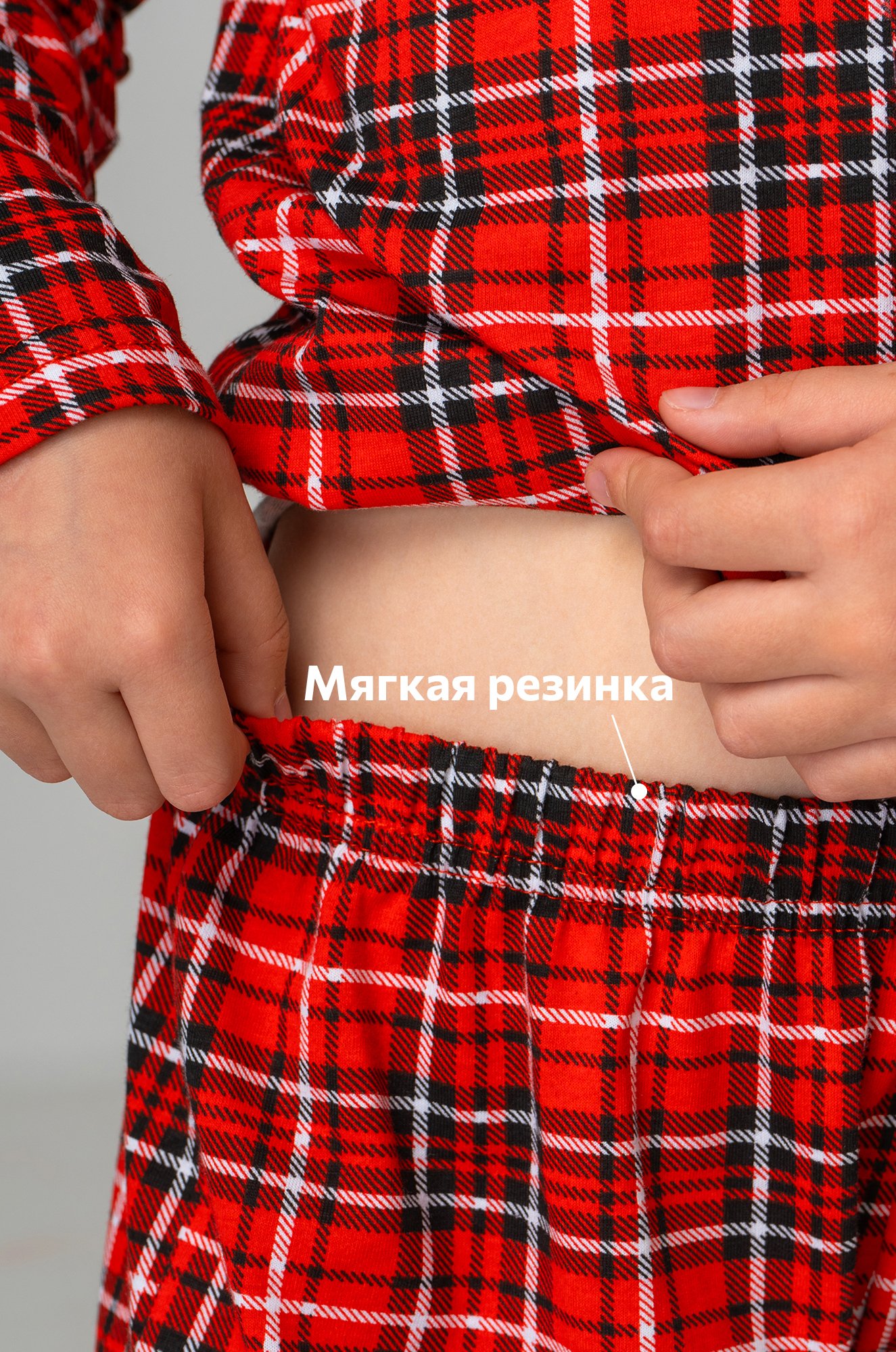 Новогодняя детская пижама с брюками выполнена из мягкого и нежного хлопкового трикотажа кулирная гладь (145 г/м2). Домашний комплект двойка подходит как для мальчиков, так и для девочек. Уютная пижама в клетку станет отличным подарком на Новый год и Рождество.