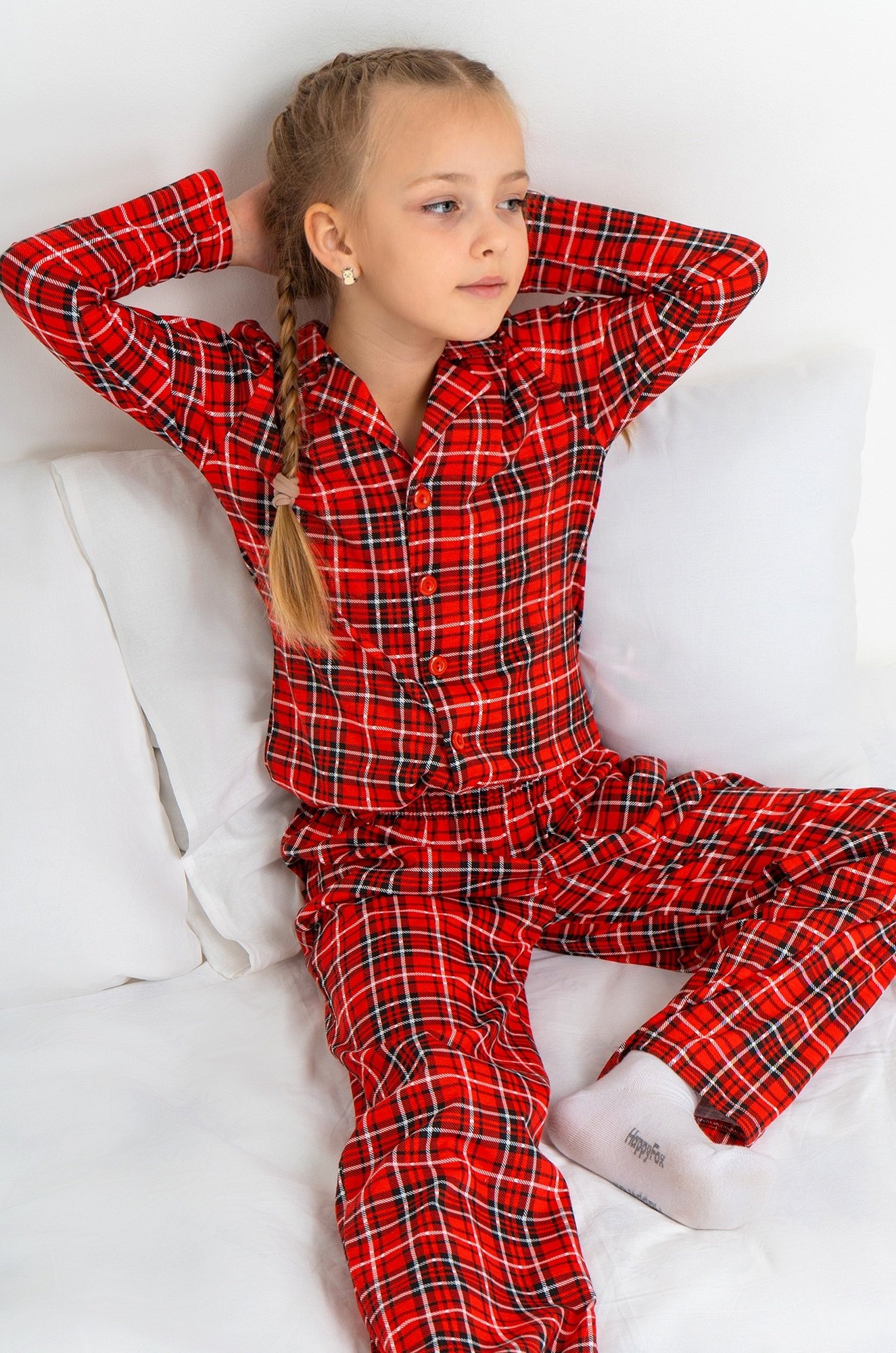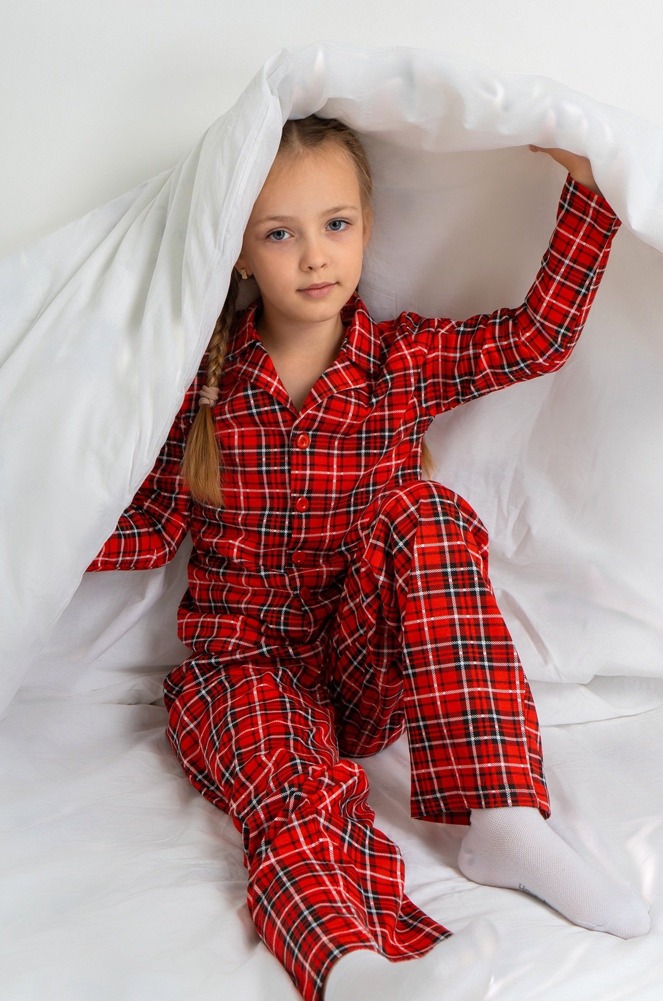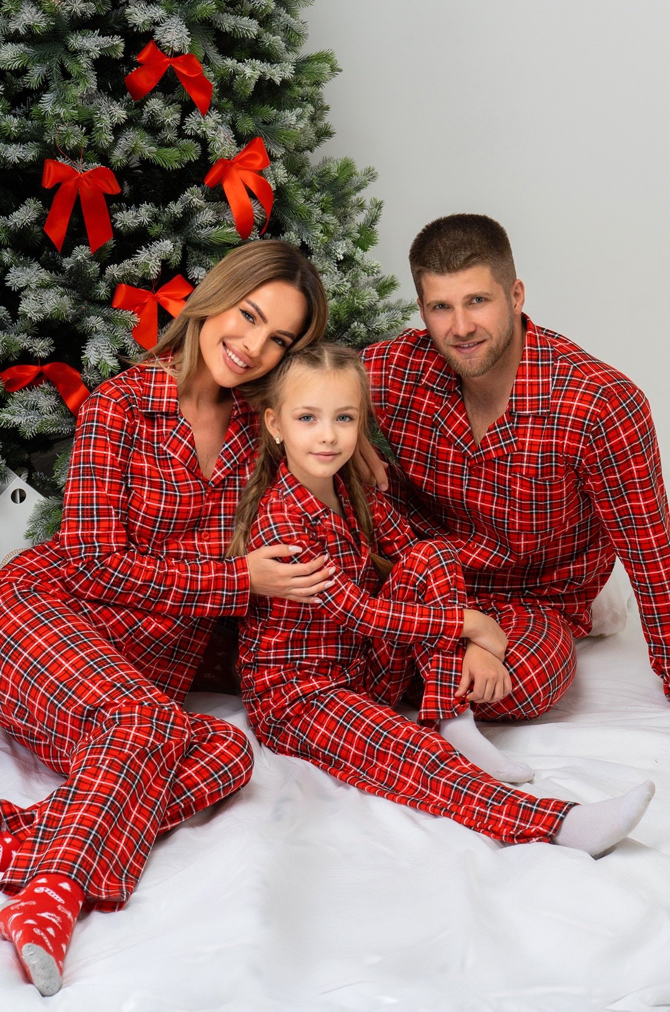 — красная пижама подходит для детей и подростков, идеальна для образов в стиле фэмили лук;