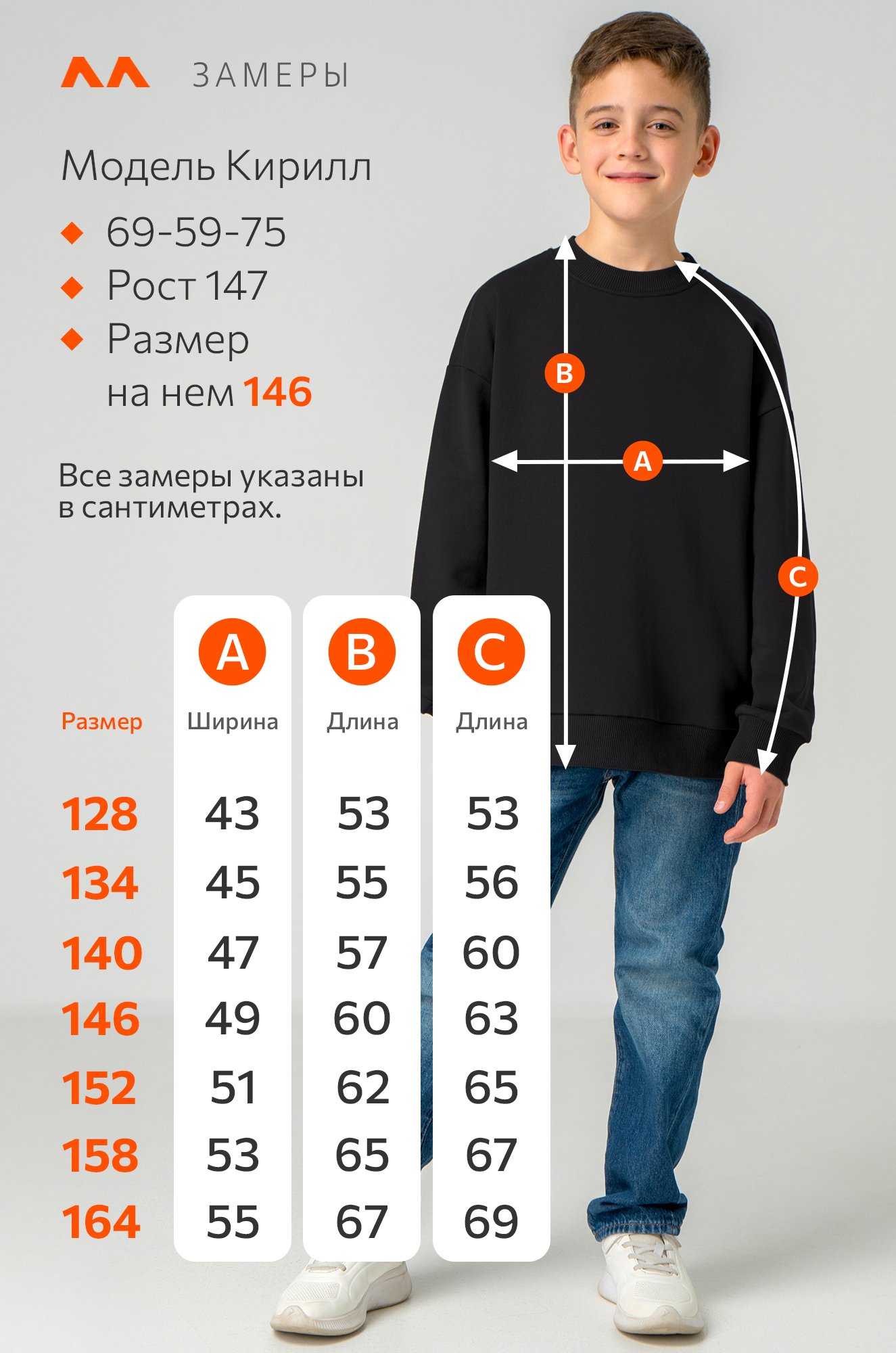 Размер 128: длина:53 см; ширина:43 см; длина рукава внешняя:53 см; длина рукава внутренняя:36 см.
