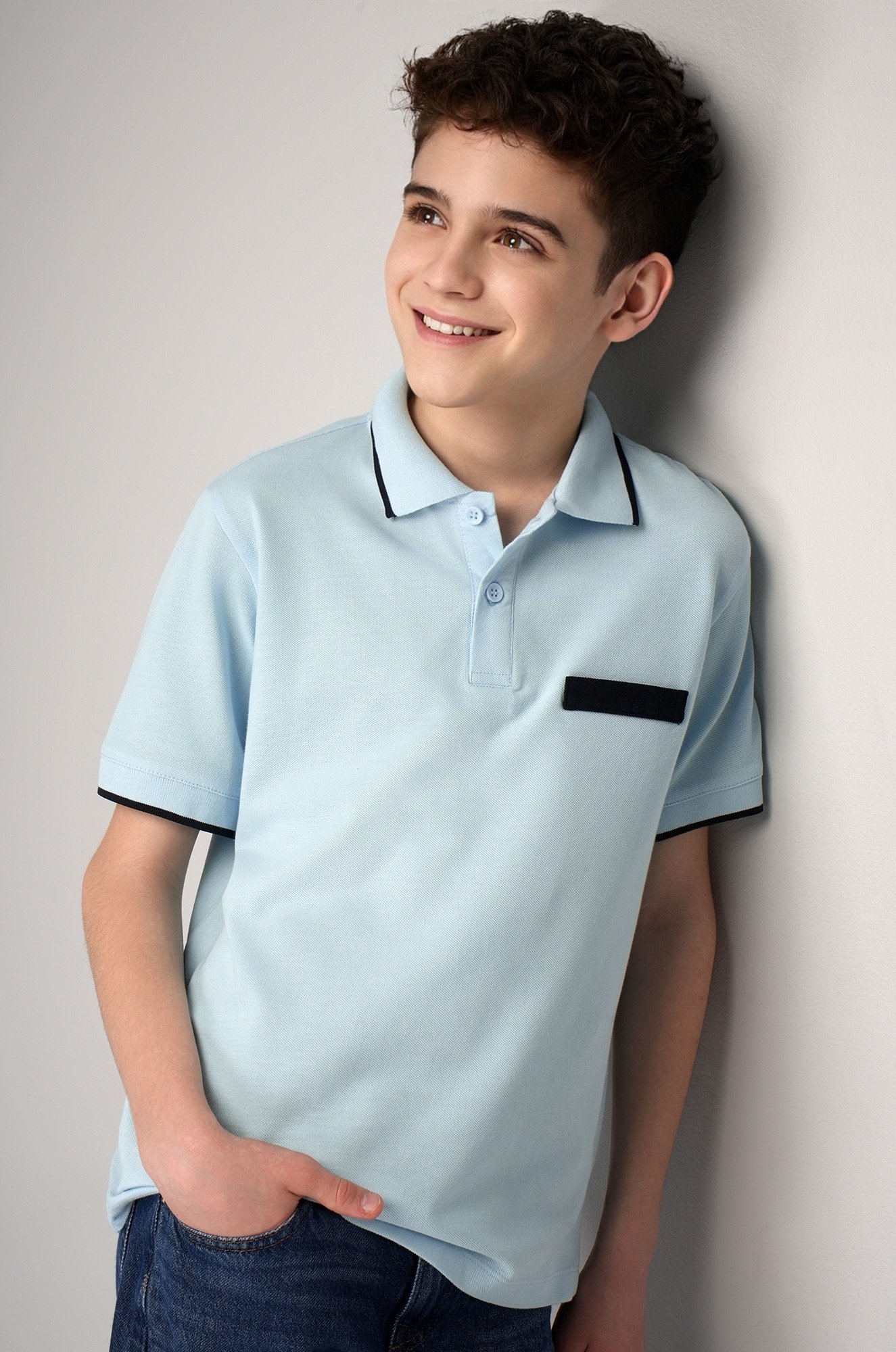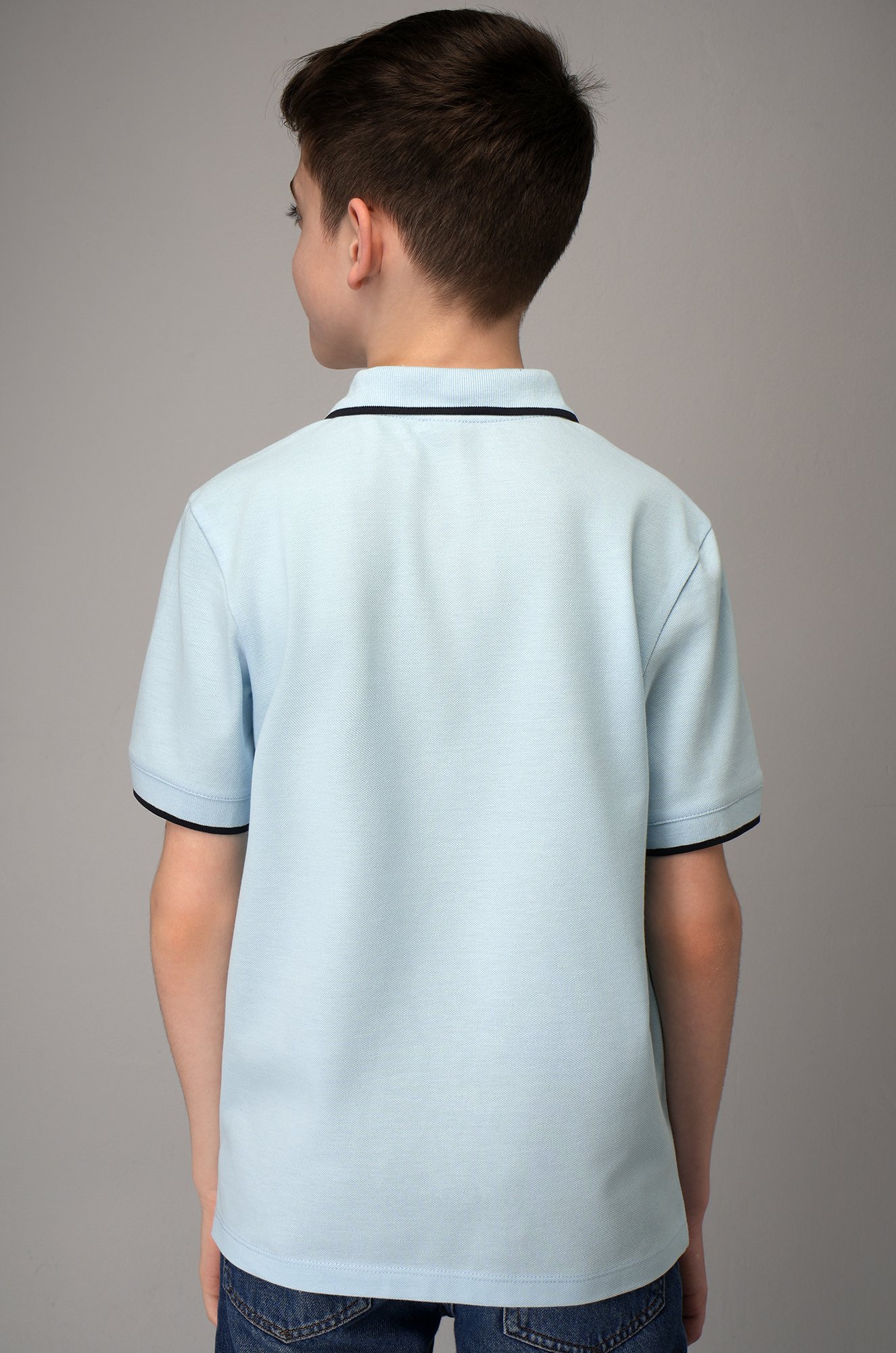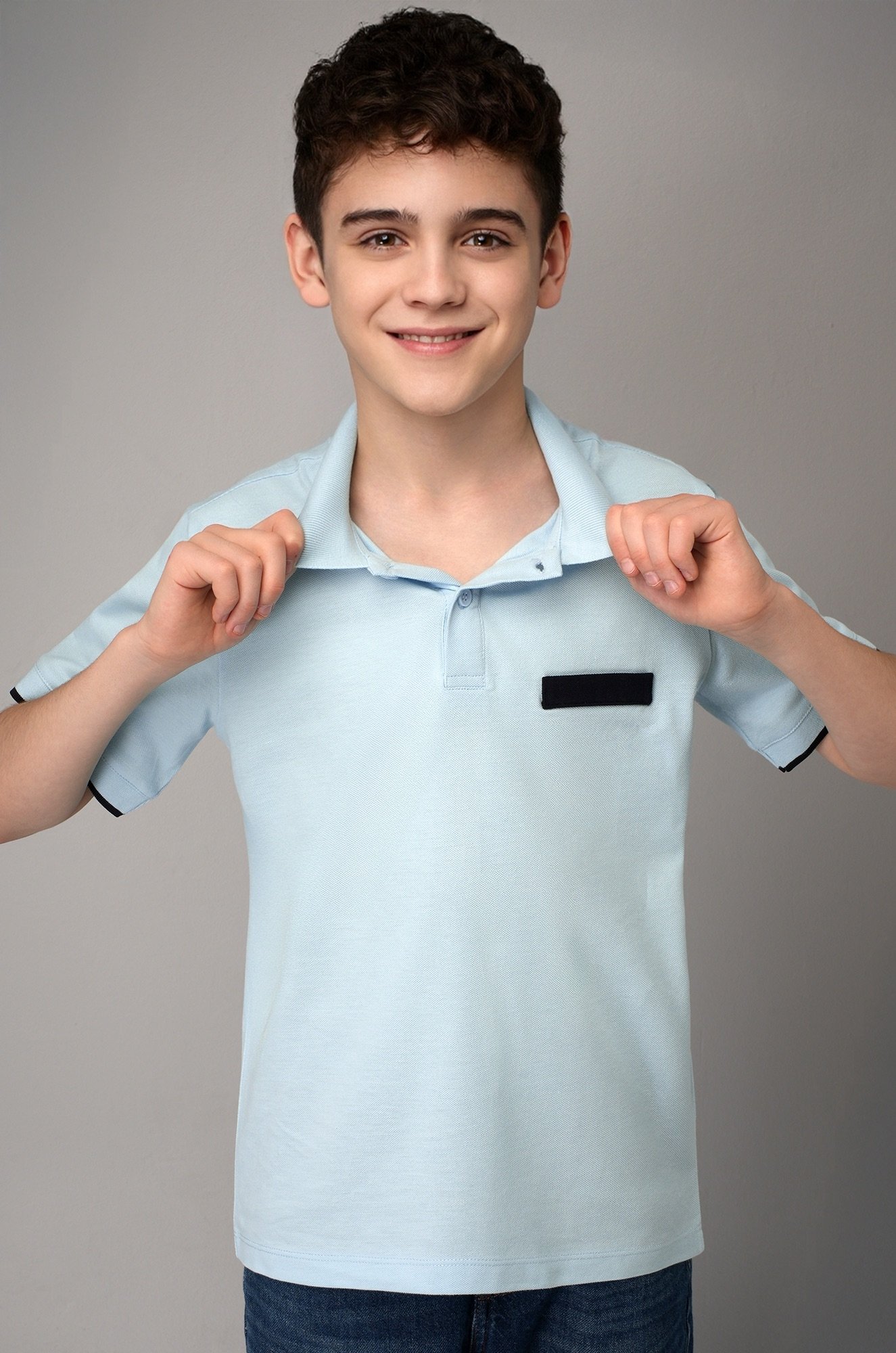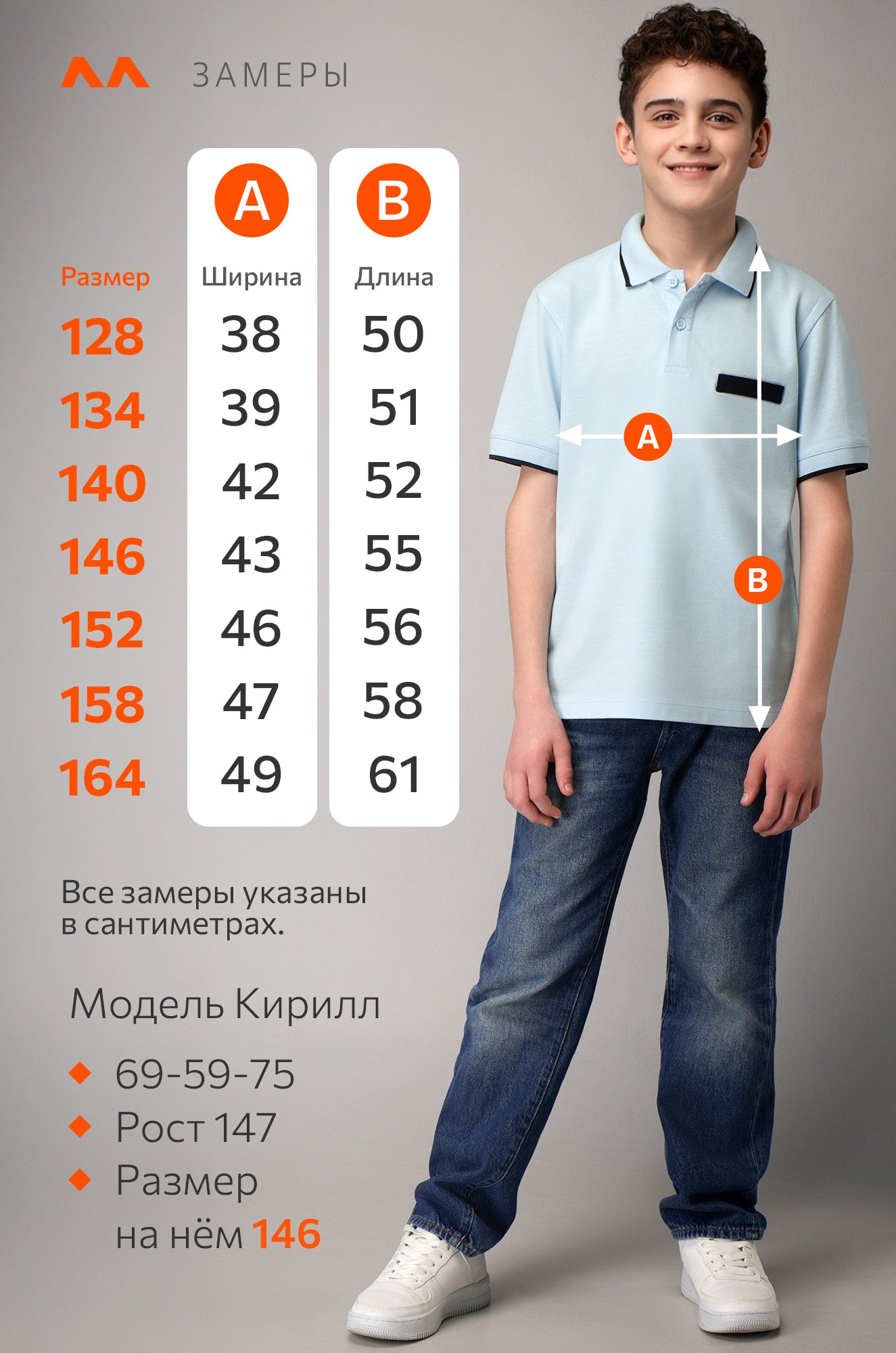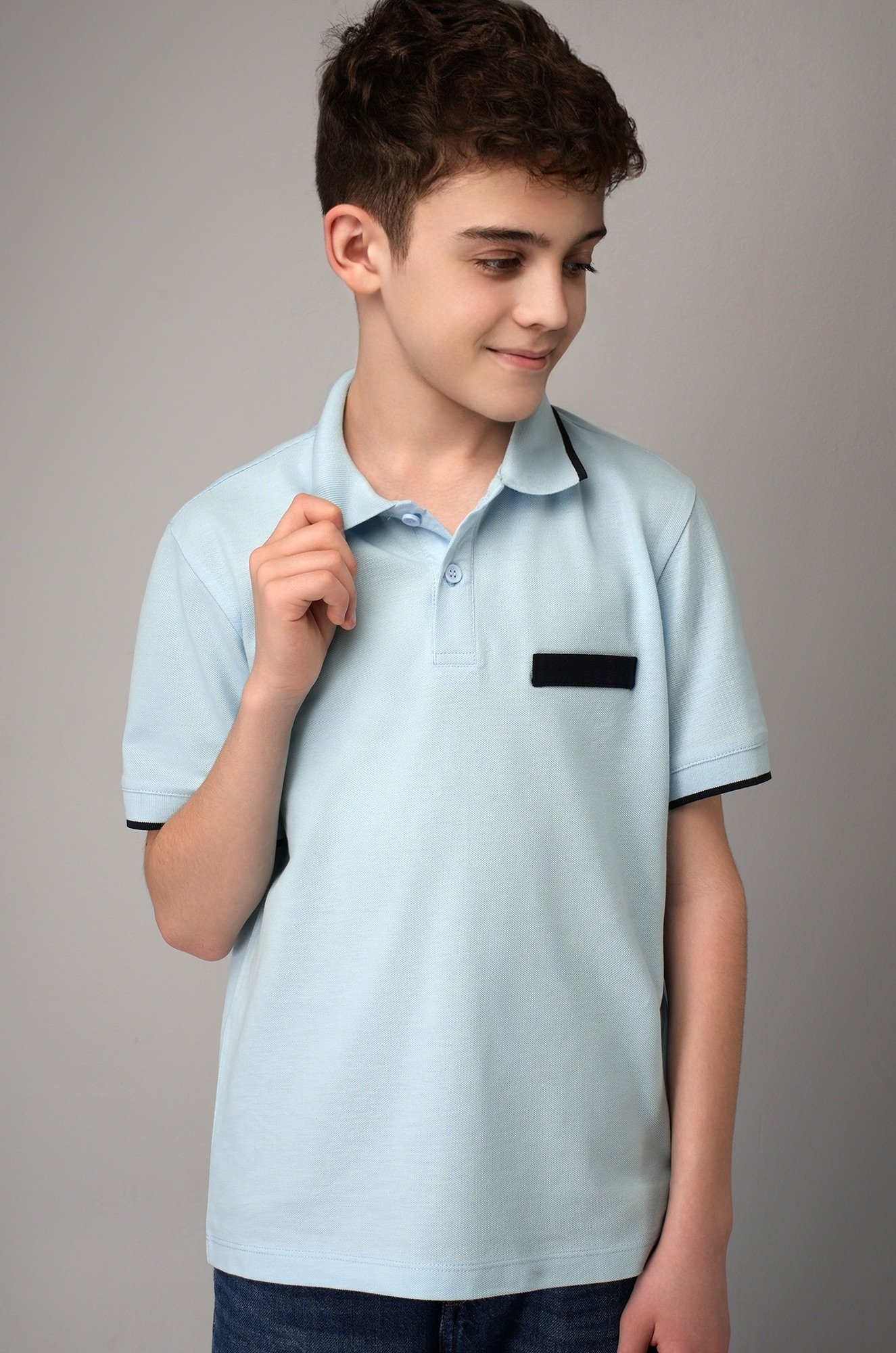 Голубая футболка-поло для мальчика – это беспроигрышный вариант для школы и прогулок. Лаконичный дизайн с контрастными вставками на воротнике и рукавах добавляет стильности, а карман-обманка делает образ выразительным.