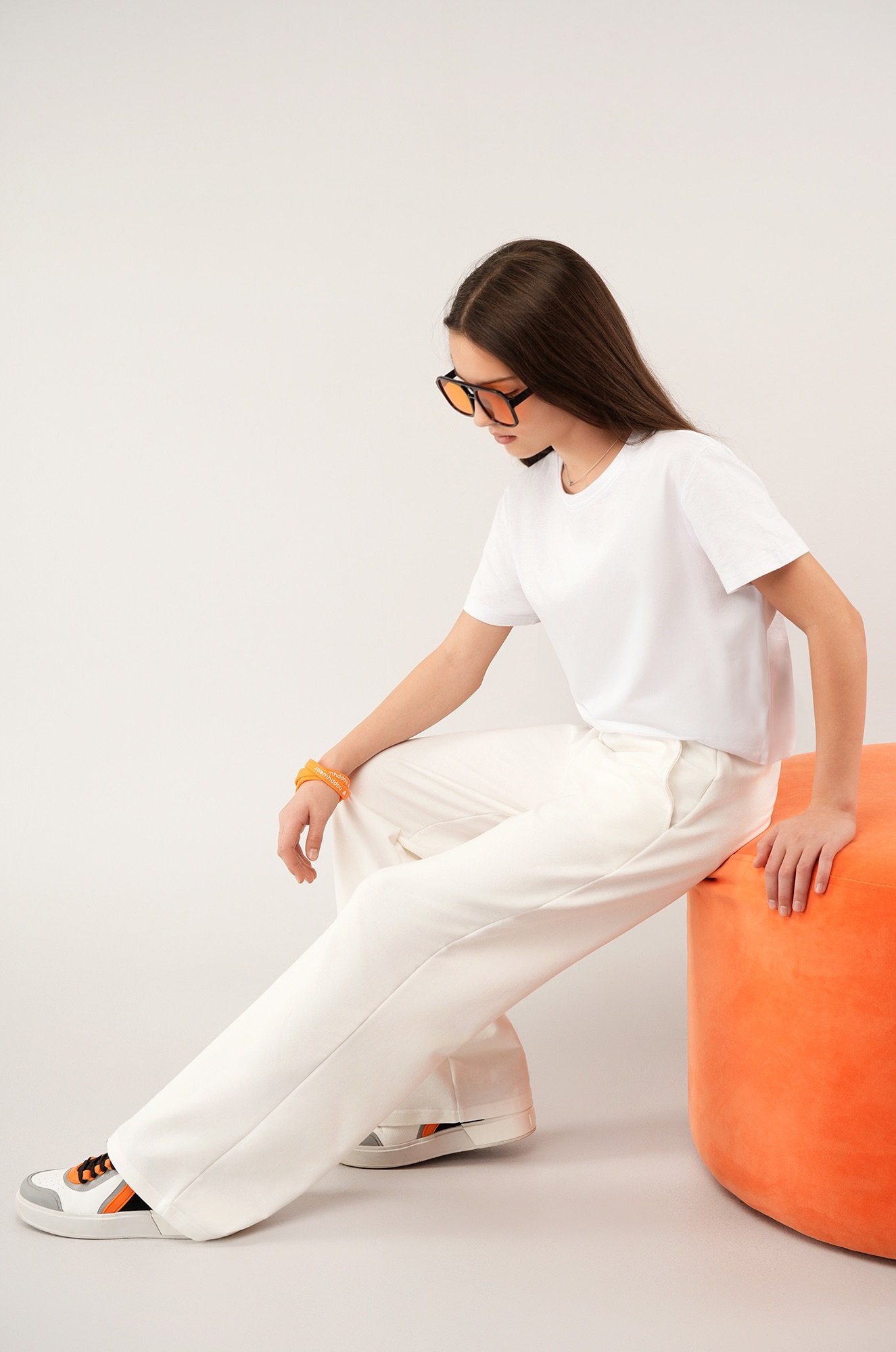Стильные белые брюки для девочки подростка добавят образу элегантности и свободы. Мягкий хлопковый трикотаж дарит комфорт и позволяет свободно двигаться.