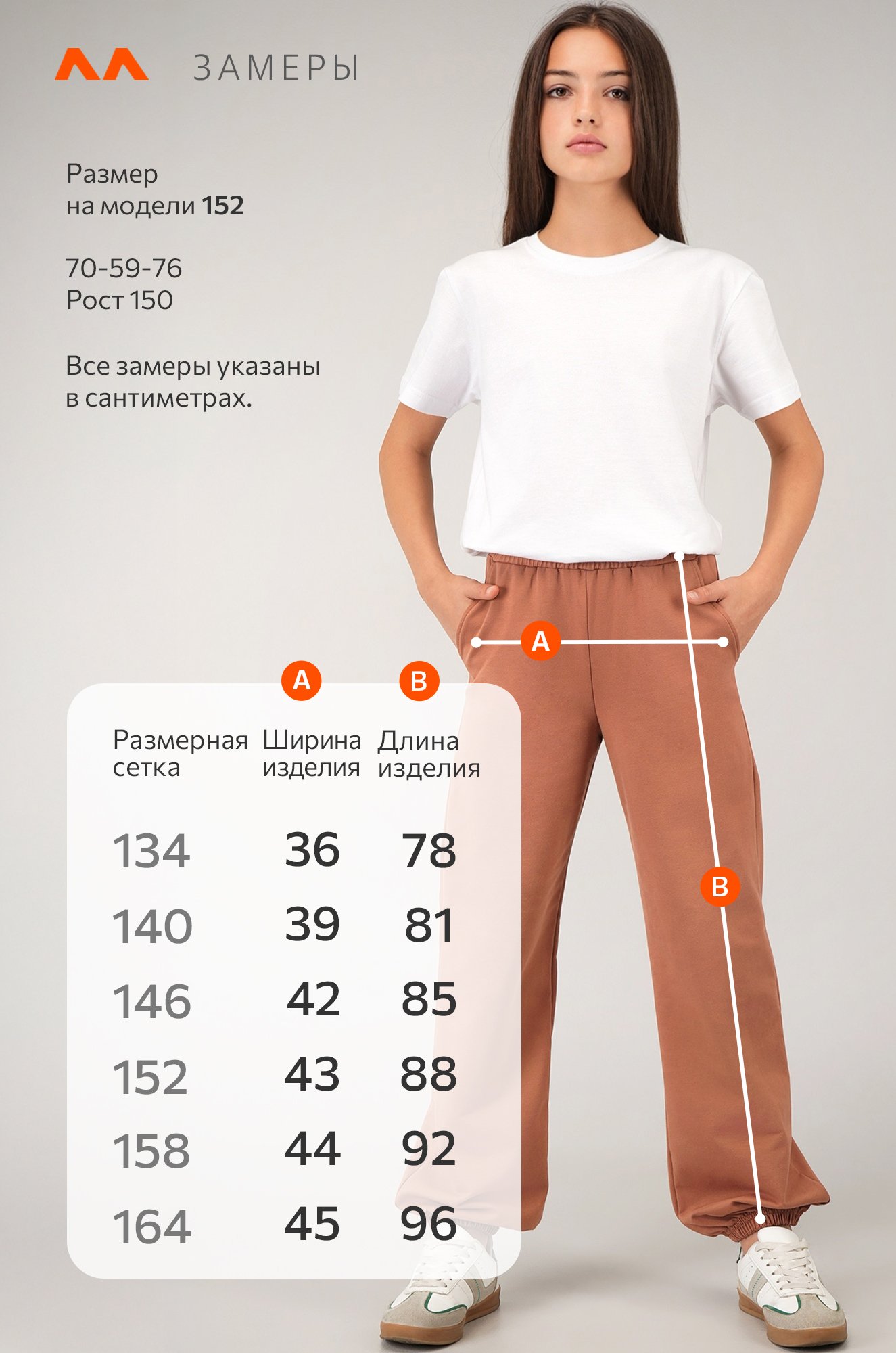 Размер 152: длина по внешнему шву:88 см; длина по внутреннему шву:63 см; ширина по бёдрам:43 см.