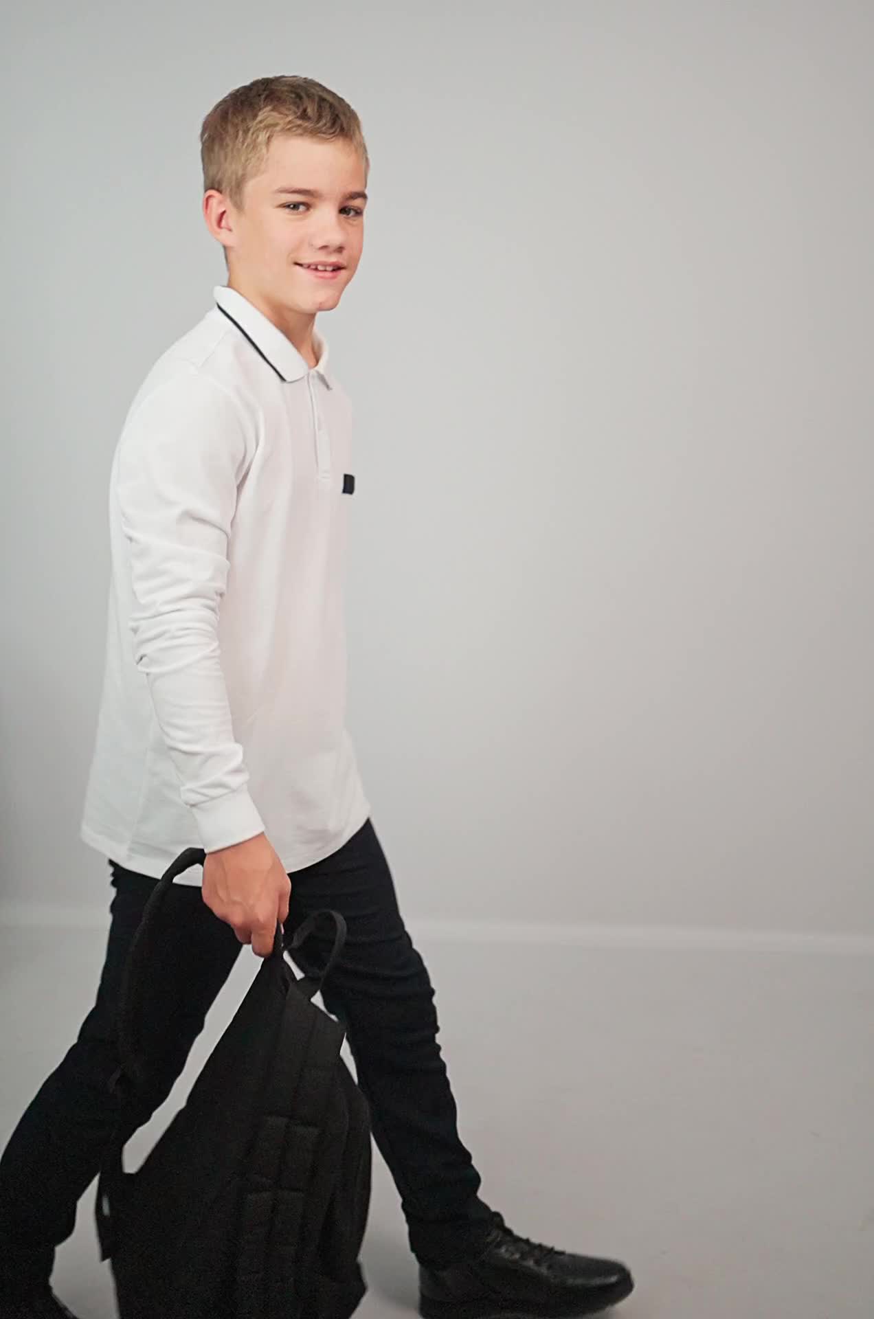 Прямой крой, вязаный воротник и застежка на пуговицы создают аккуратный силуэт. Хлопковая подростковая рубашка-поло легко подойдет как детский лонгслив и станет идеальным повседневным вариантом для многослойных образов школьника.
