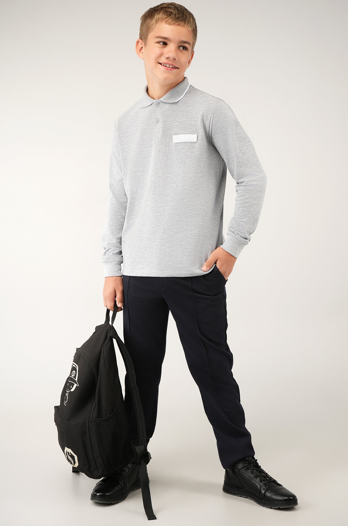 Светло-серая рубашка поло для мальчика от бренда Happyfox — стильный и практичный выбор на каждый день! Трикотажная хлопковая ткань дарит комфорт и свободу движений. Базовая классика подойдет для школы, школьных и внешкольных мероприятий.