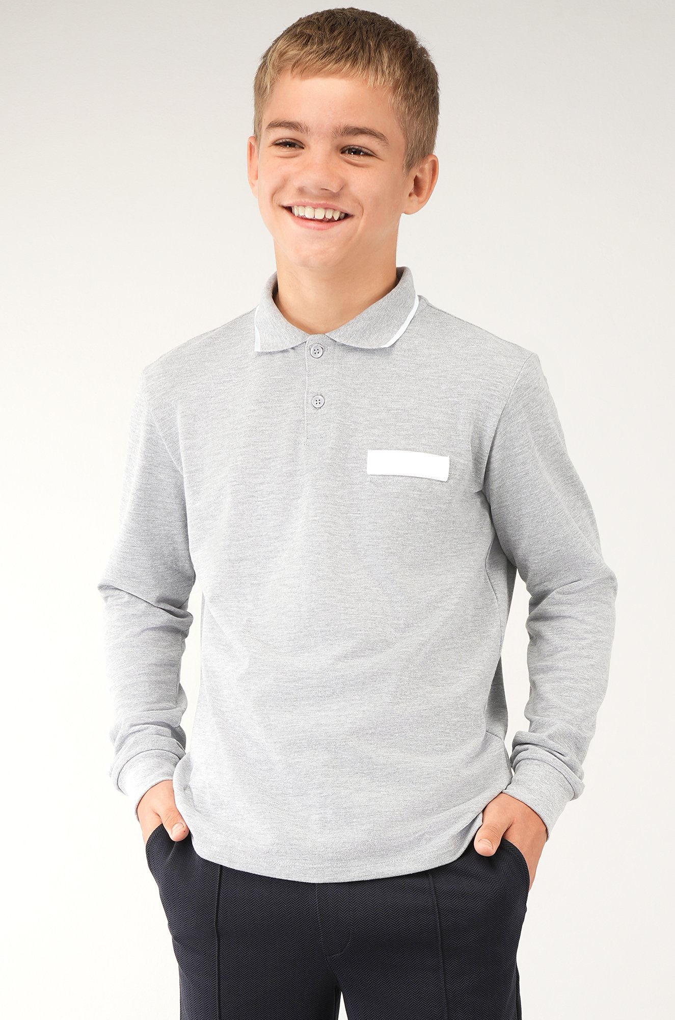 Прямой крой, вязаный воротник и застежка на пуговицы создают аккуратный силуэт. Хлопковая подростковая рубашка-поло легко подойдет как детский лонгслив и станет идеальным повседневным вариантом для многослойных образов школьника.