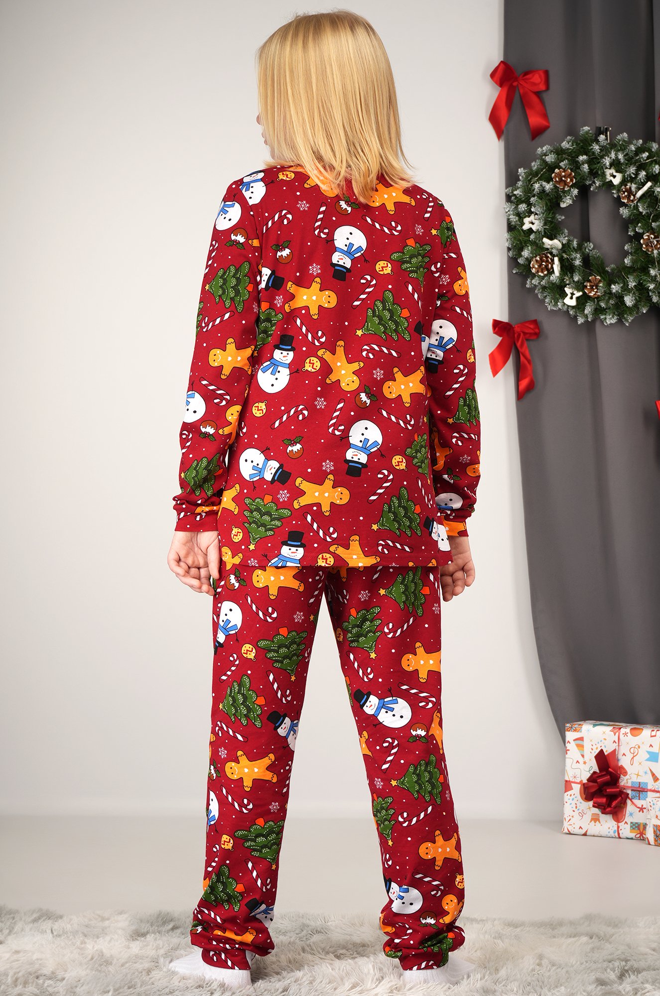 В набор входит лонгслив и штаны, которые идеально подойдут для сна и отдыха дома. Хлопковая пижамка подарит уют ребенку и станет отличным вариантом для рождественской фотосессии в стиле фэмили лук (family look).