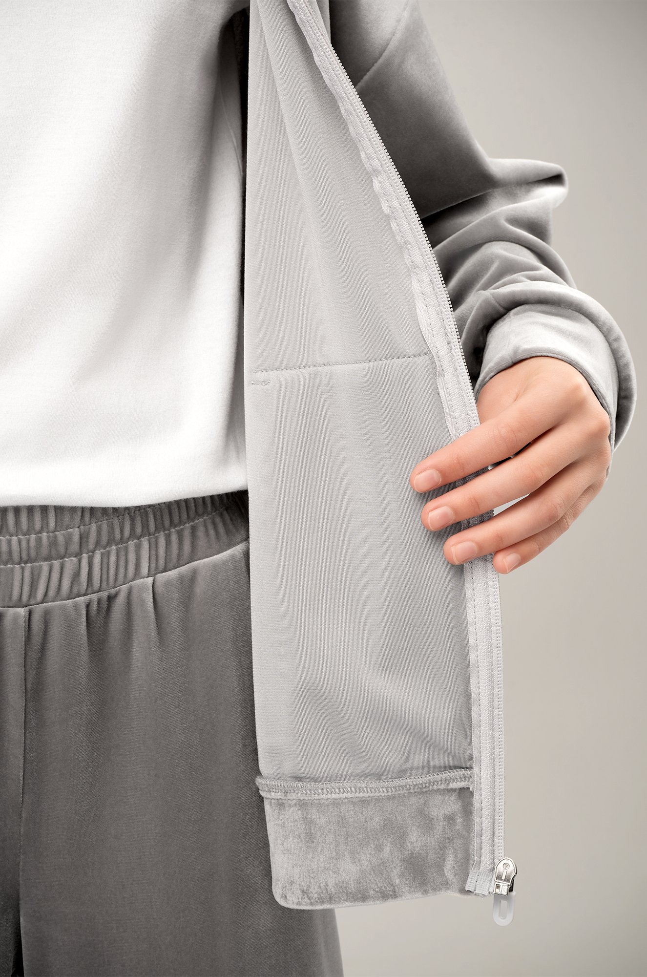 — плотная, но дышащая структура велюра (250 г/м2) сохраняет тепло и мягкость;