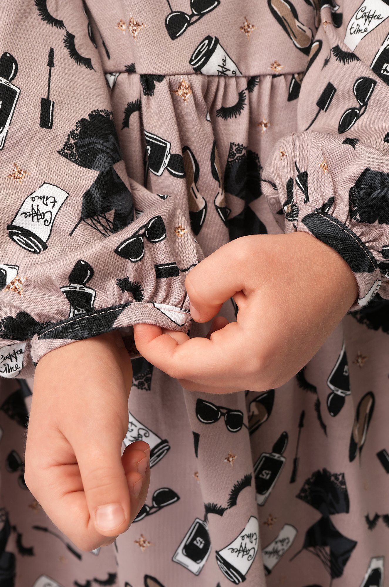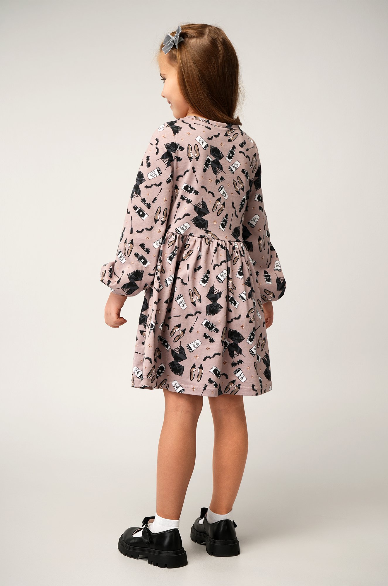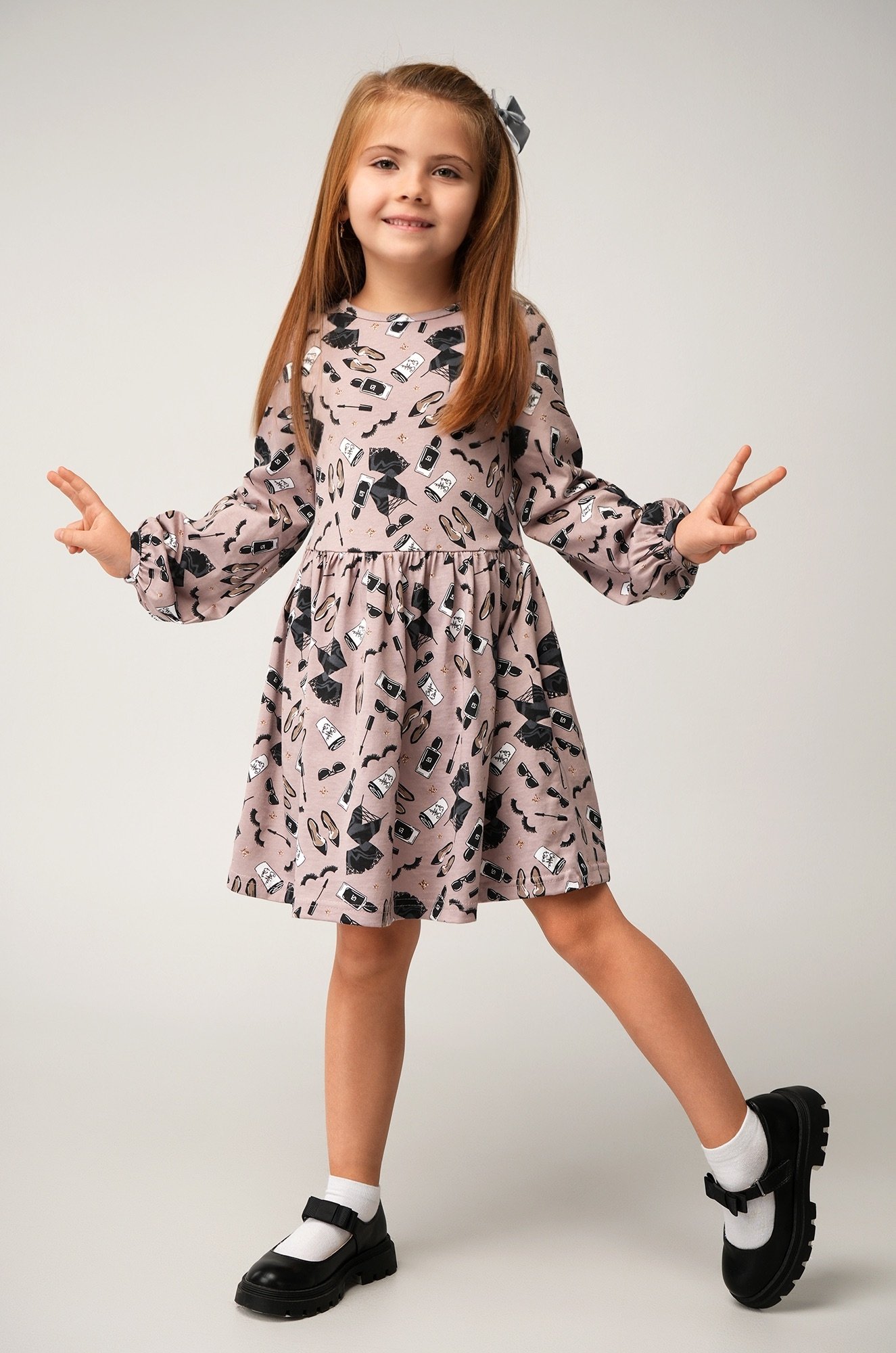 Детское платье для девочки из мягкого трикотажа кулирная гладь (145 г/м2) — идеальный выбор для осени. Стильный принт придаёт образу настроение праздника.