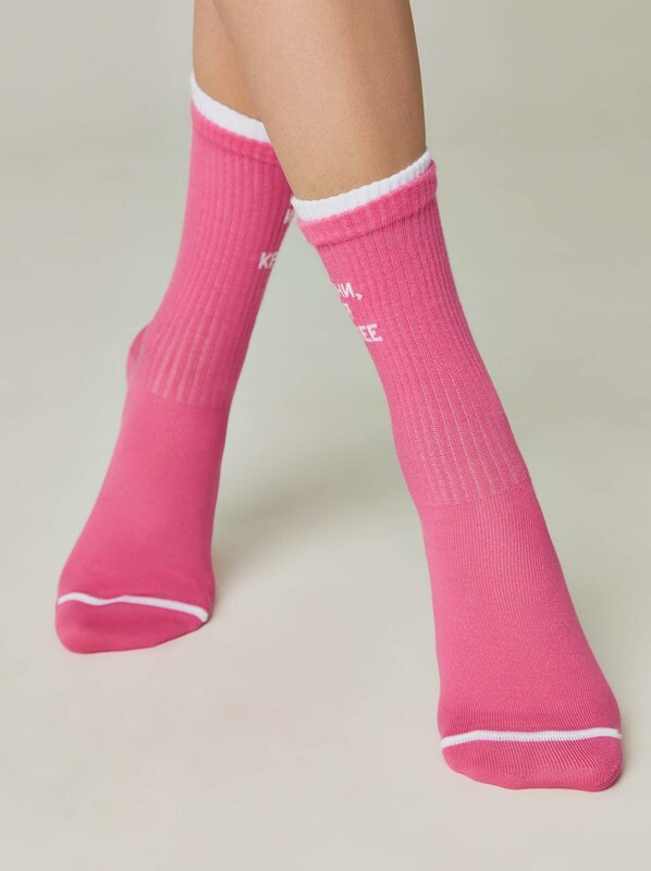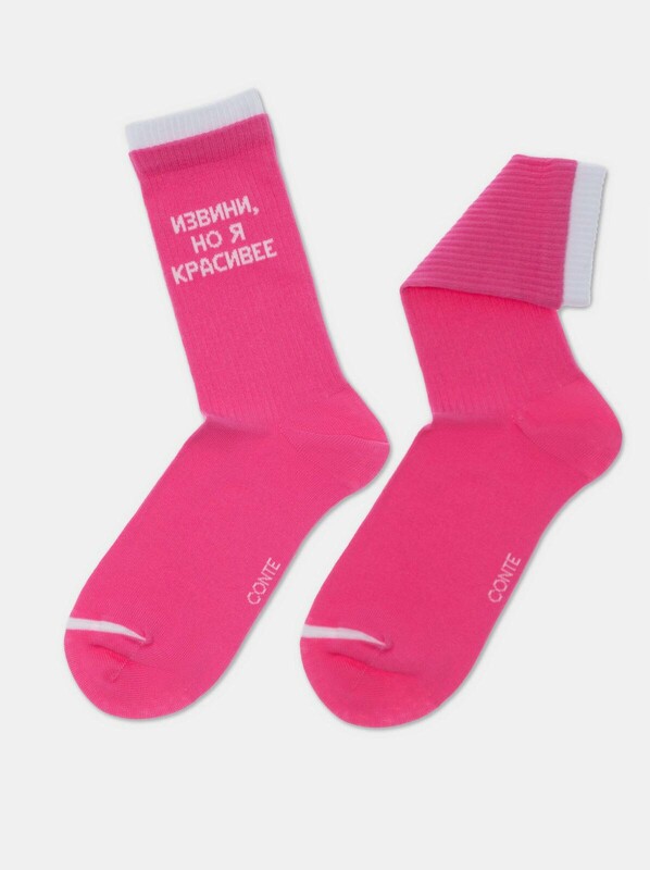 Носки женские CONTE Удлиненные носки из хлопка в рубчик с надписью «Извини»
