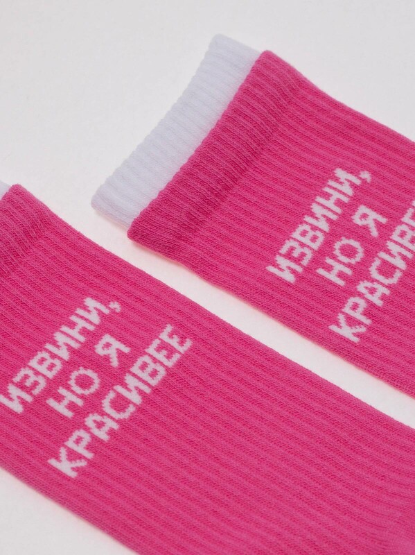 "Удлиненные носки мягкого хлопка в рубчик с надписью «Извини, но я красивее» станут креативным дополнением повседневного, спортивного или домашнего гардероба. Носки удобно облегают ногу, не сползают, дарят абсолютный комфорт и легкость. Устойчивы к многочисленным стиркам." bumbac 62%, poliamida 35%, elastan 3%