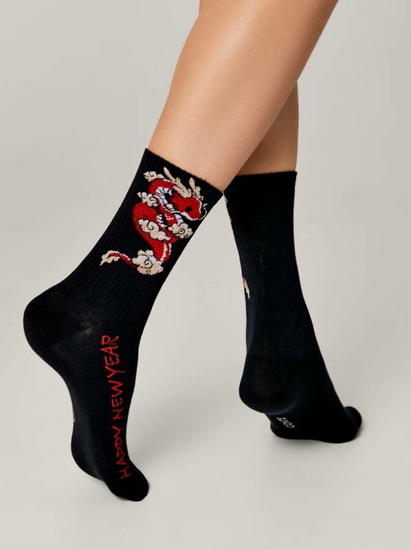 Удлиненные новогодние носки с люрексом «Xmas dragon»Дополняйте новогодние фотосессии яркими деталями или используйте «Xmas dragon» в качестве стильного дополнения вашего образа.
