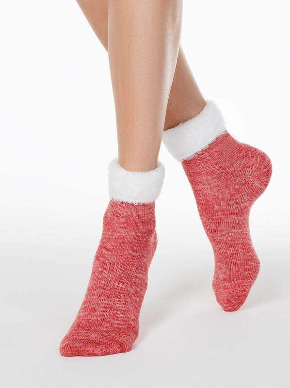 Теплые женские носки выполнены из приятной на ощупь меланжевой пряжи. А пушистый и невероятно мягкий белый отворот подарит вам чувство домашнего уюта, где бы вы ни находились. полиамид 70%, пан 21%, полиэстер 8%, эластан 1%
