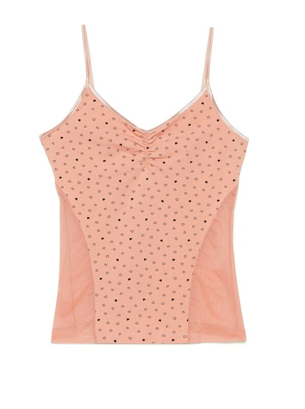 Облегающий топ TRU-LA-LA – это гармоничное сочетание комфортного хлопкового полотна премиального качества и полупрозрачной сетки. · прилегающий силуэт;· безупречная посадка по фигуре;· эластичные бретели;· вставки из прозрачного полотна «сетка»;· хлопковое полотно премиального качества;· игривый рисунок «сердечки»;· сохранение цвета и формы после многочисленных стирок.