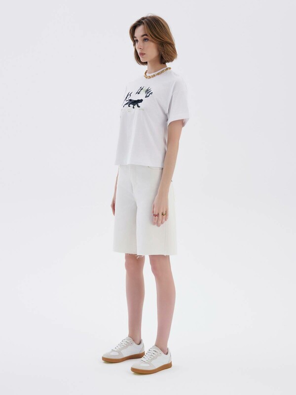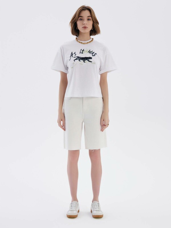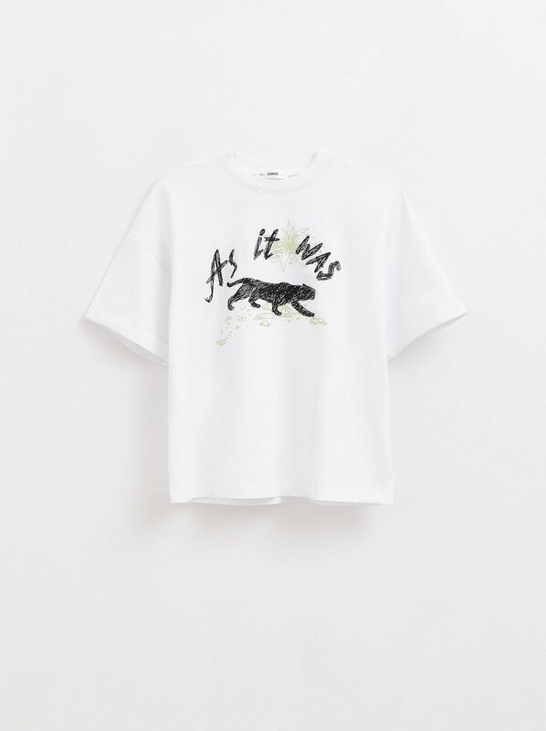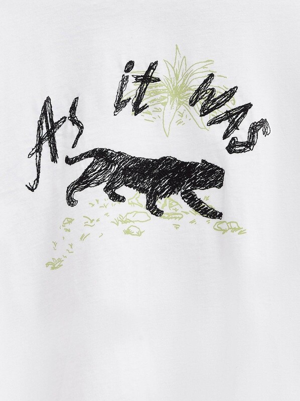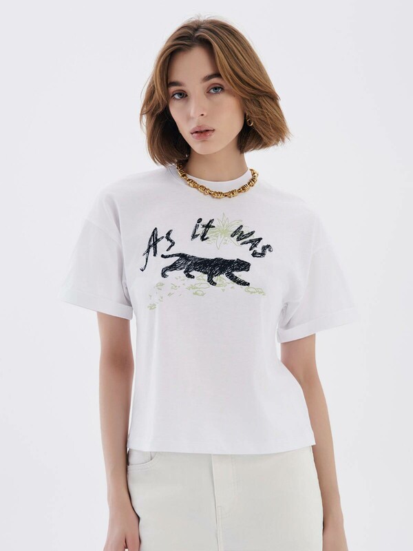 Футболка из хлопка станет основой для множества расслабленных базовых образов, а стильный рисунок добавит вашему повседневному гардеробу больше индивидуальности.